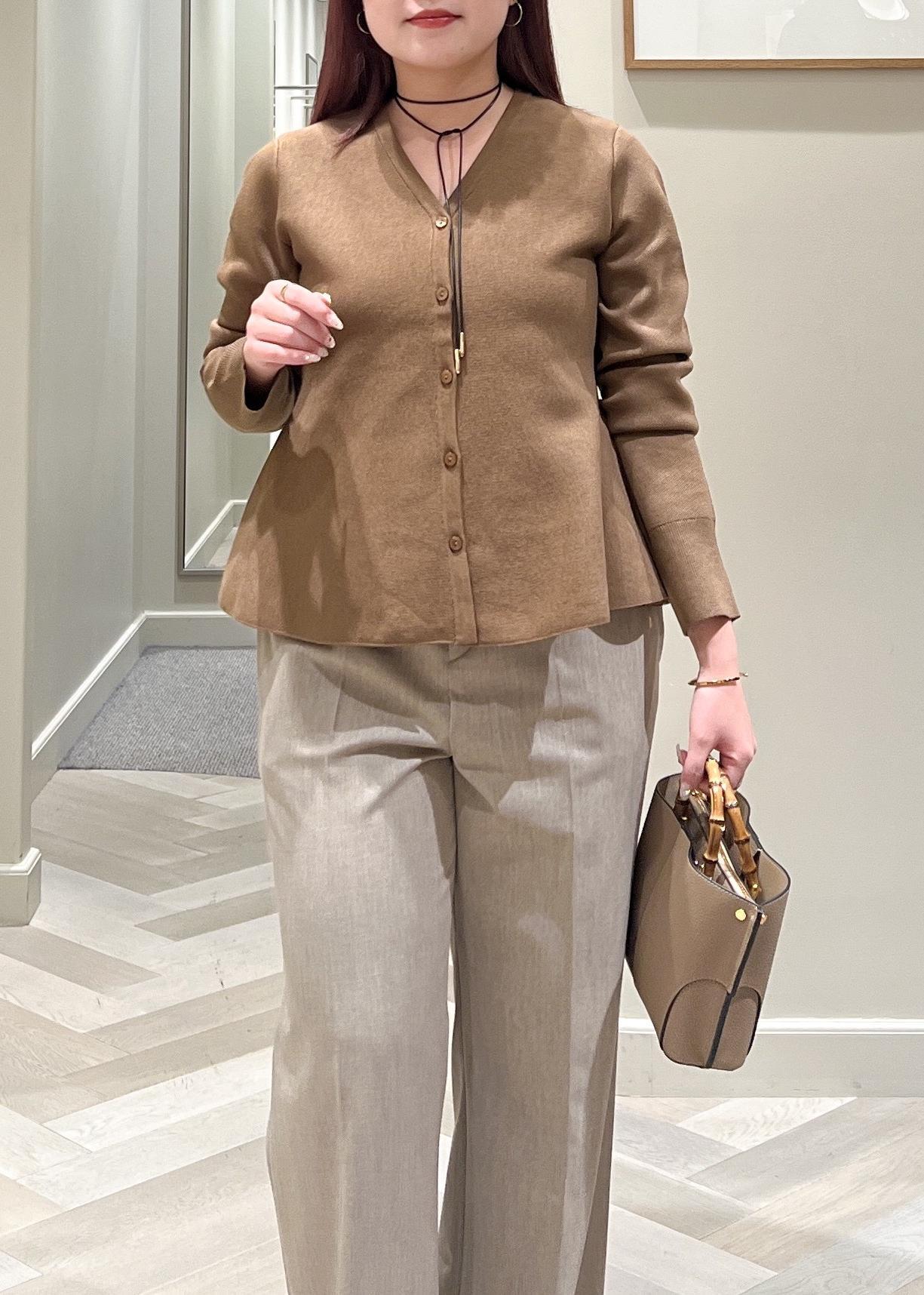 ROPÉウール混ニットペプラムカーディガン/イージーケア・セットアップ対応ブラウン / F¥27,500レビュー伸縮性あり、バストはぴったりめです。