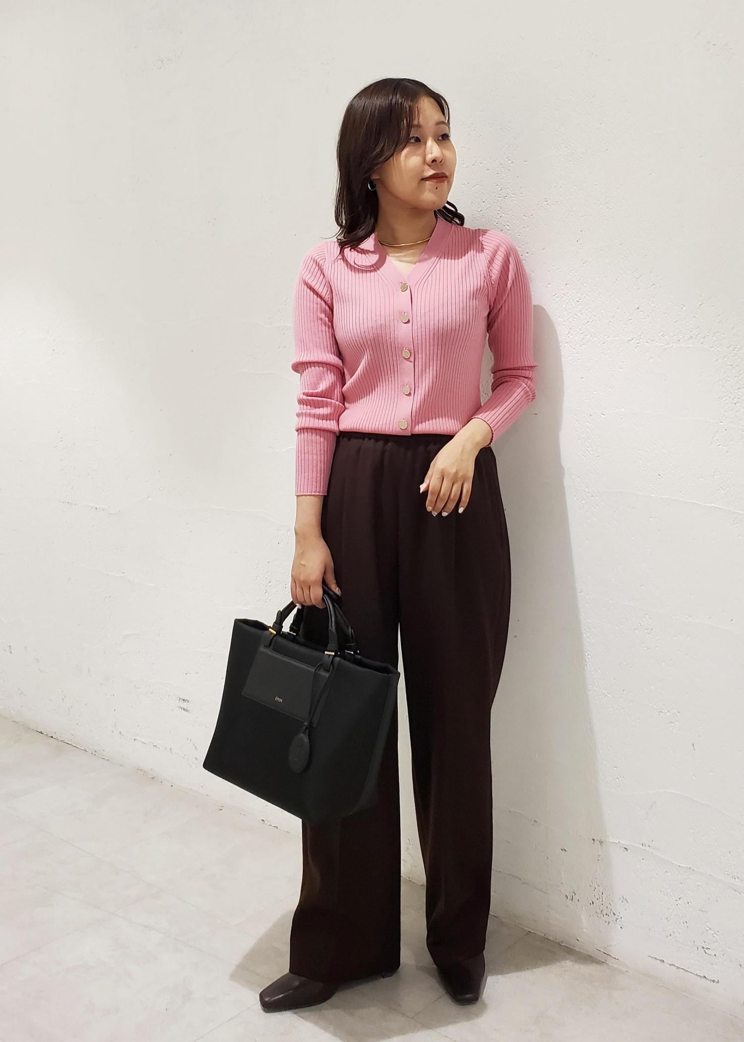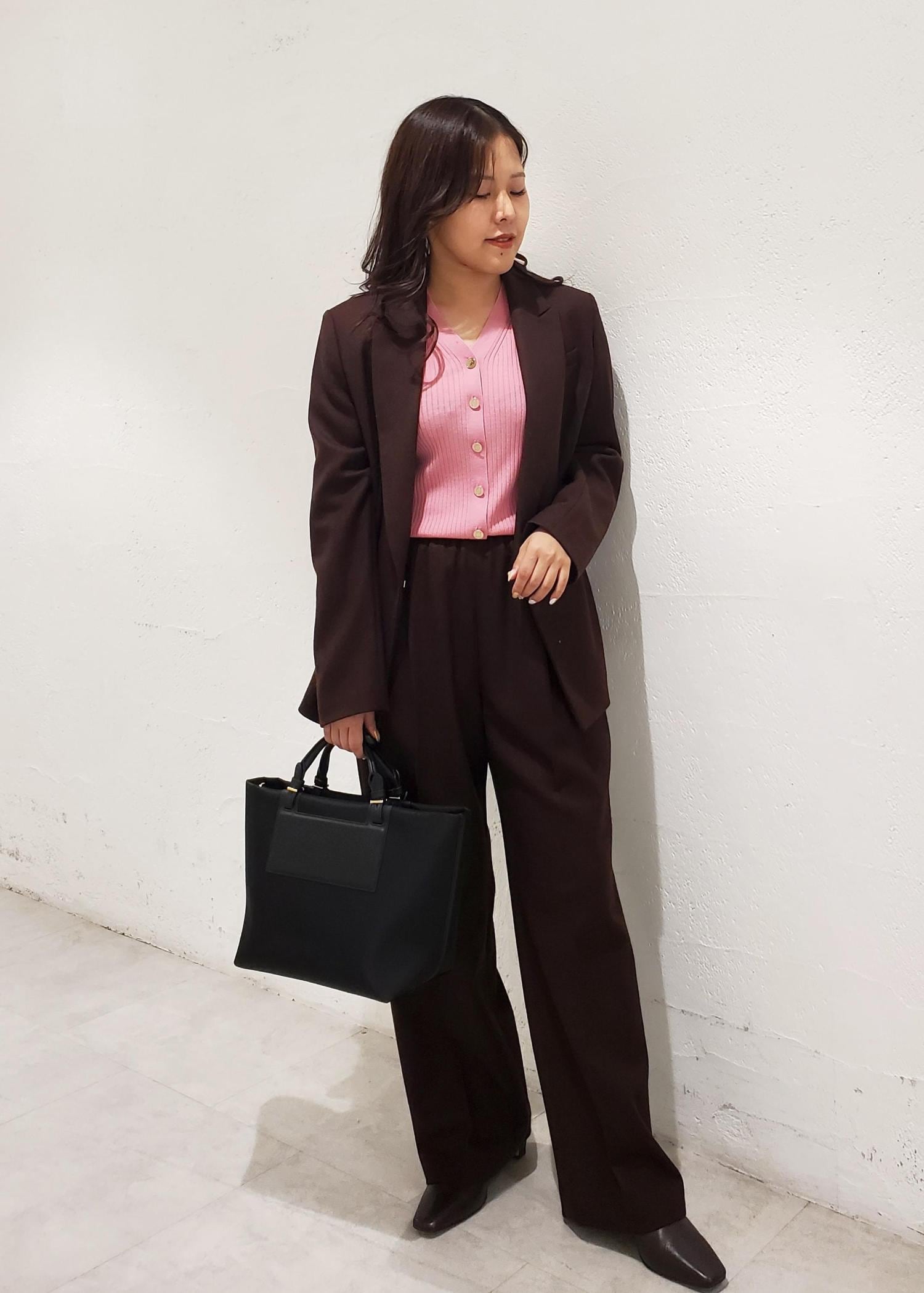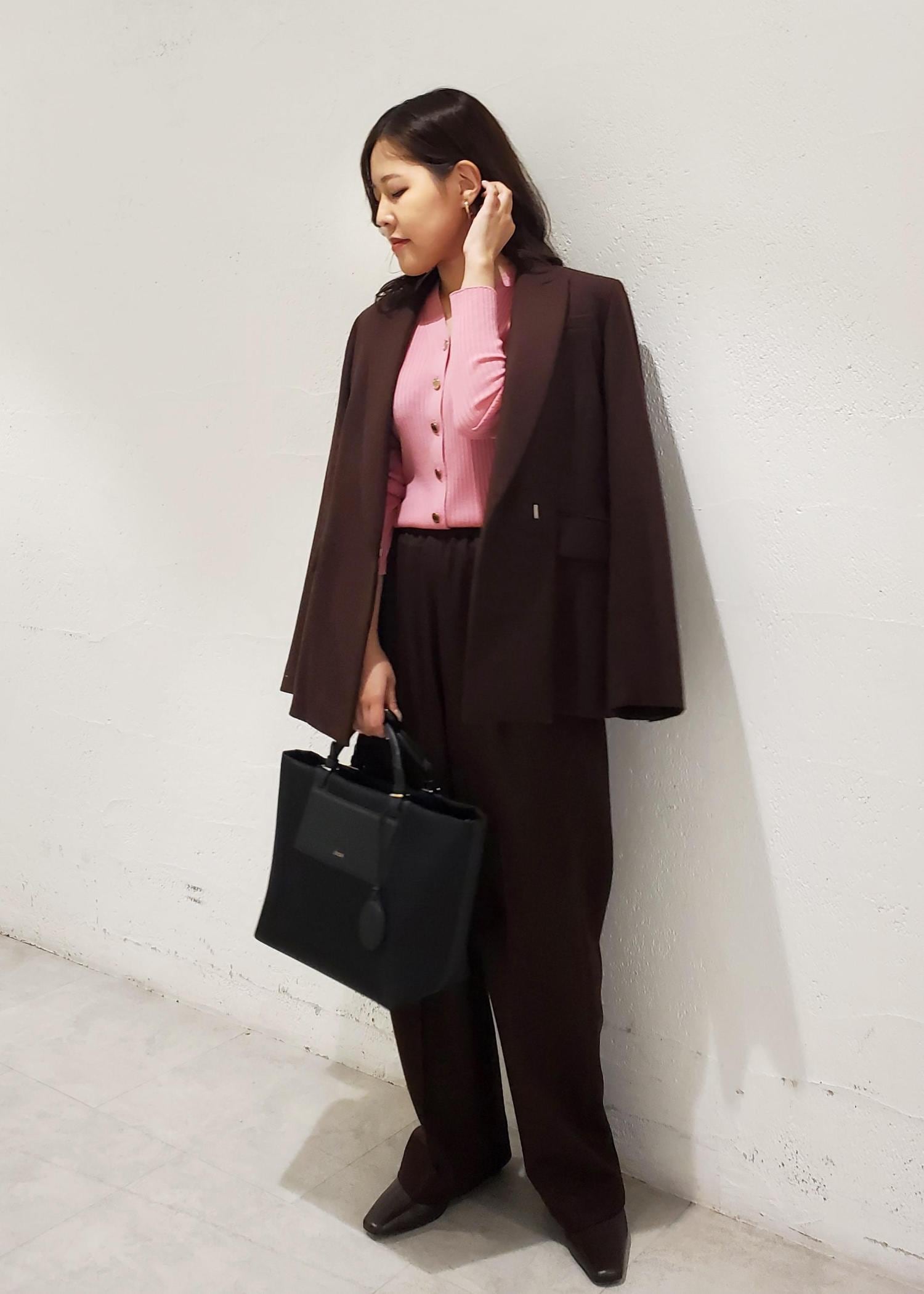 ブラウン×ピンクの配色で抜け感のあるオフィスstyle。