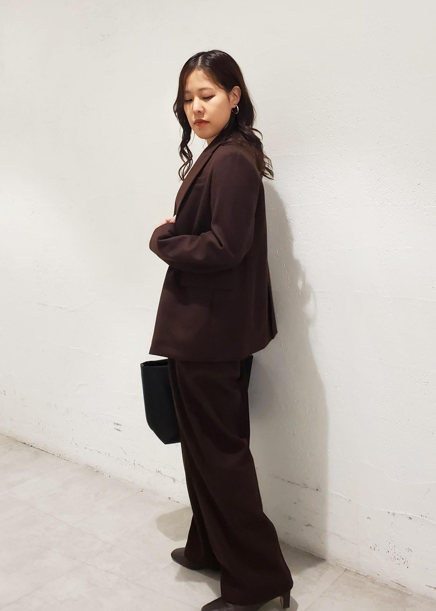 ROPÉウールフランネルセミダブルジャケット/セットアップ対応ダークブラウン / 36¥44,000レビュー少しゆったりとしたシルエットで中にニットを着られるくらいの余裕があります。