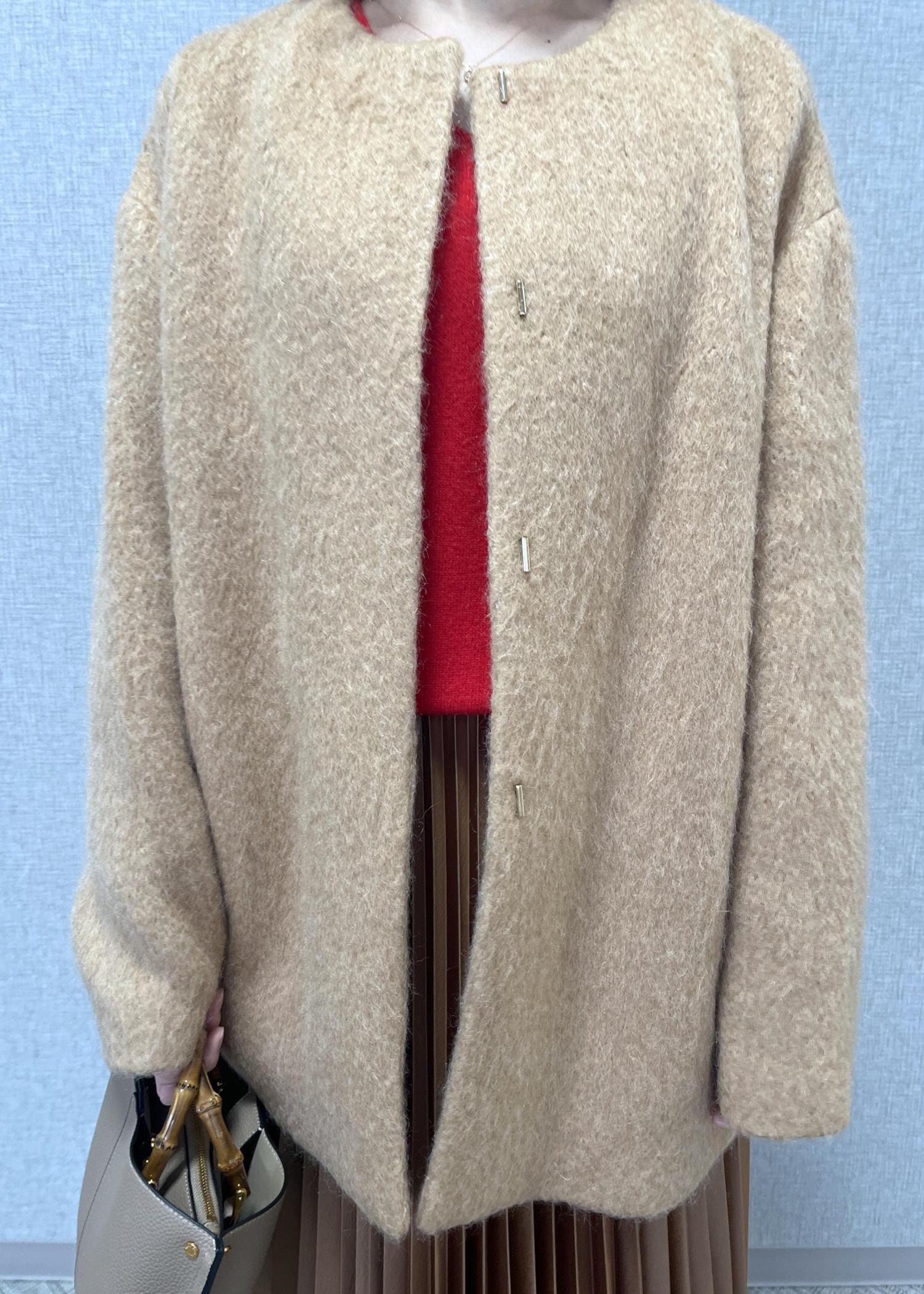 ROPÉウールモヘヤノーカラーミドル丈コートベージュ / F¥68,200レビューモフモフな素材で、モヘアの毛が飛ぶ感じはありませんでした。