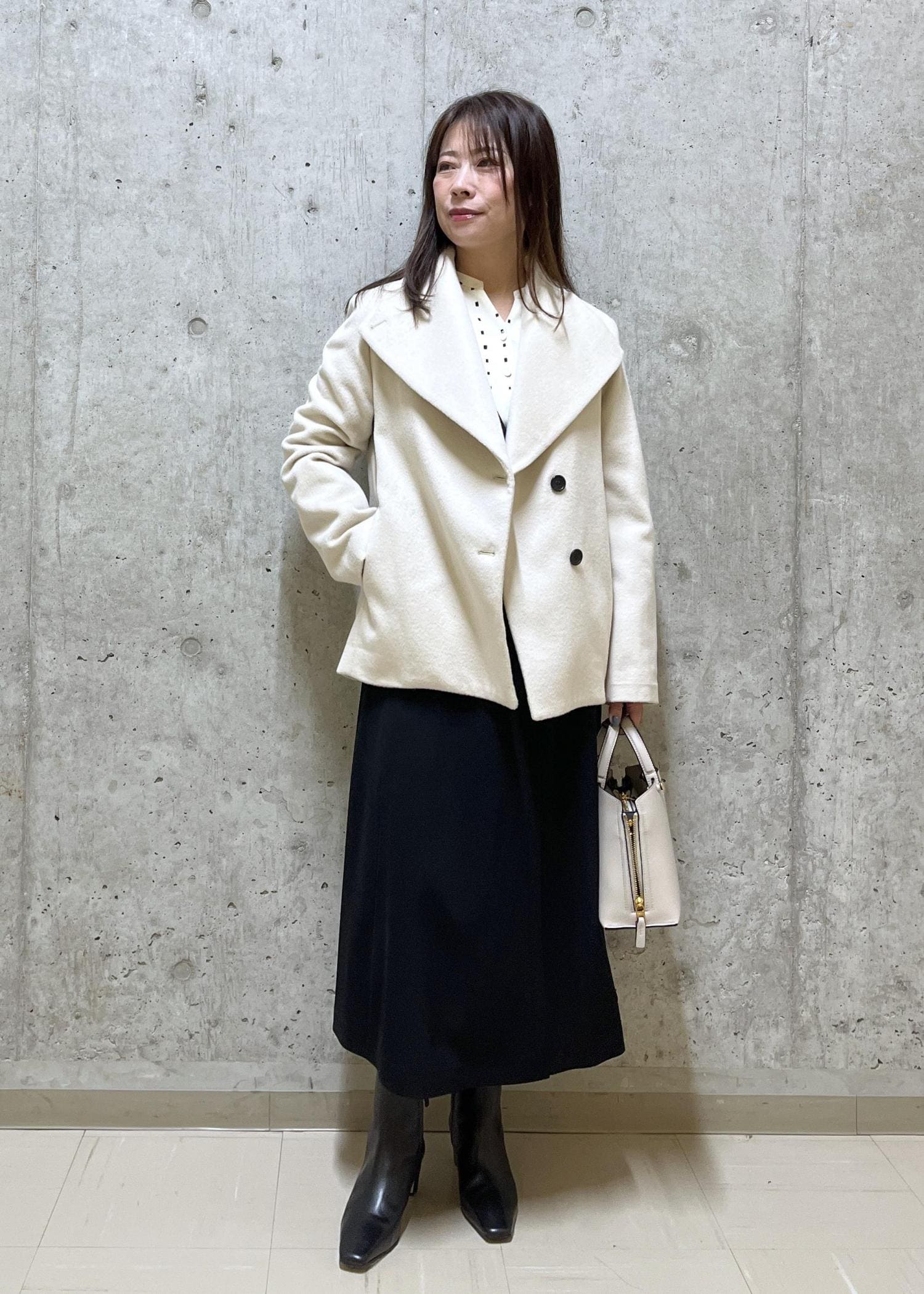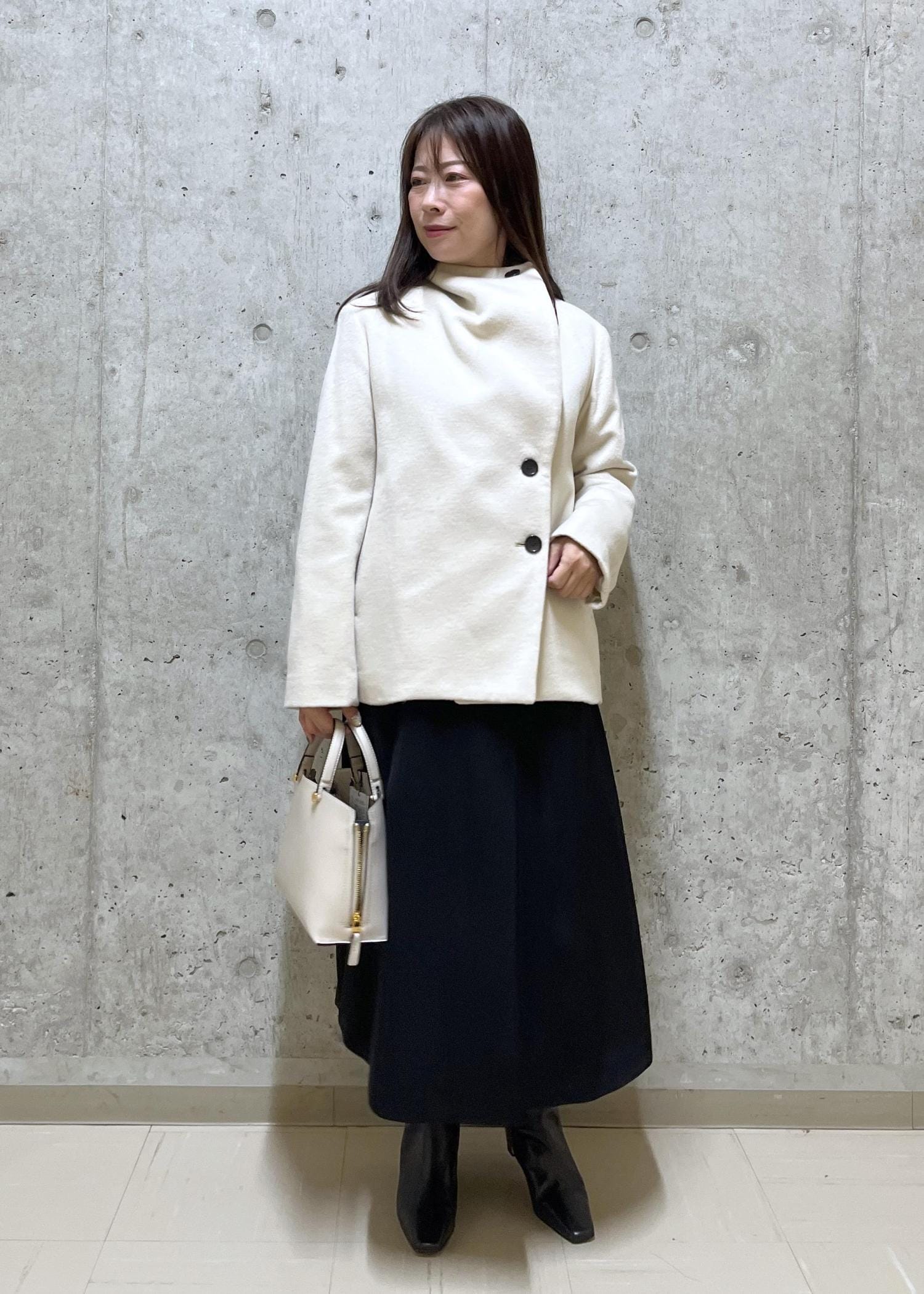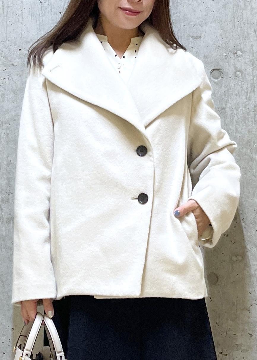 NEW!ROPÉプレミアムカシミヤ ショートコート【25AW】オフホワイト / 36¥53,900レビューヒップが隠れる程の丈で、低身長の方にオススメのアウターです。