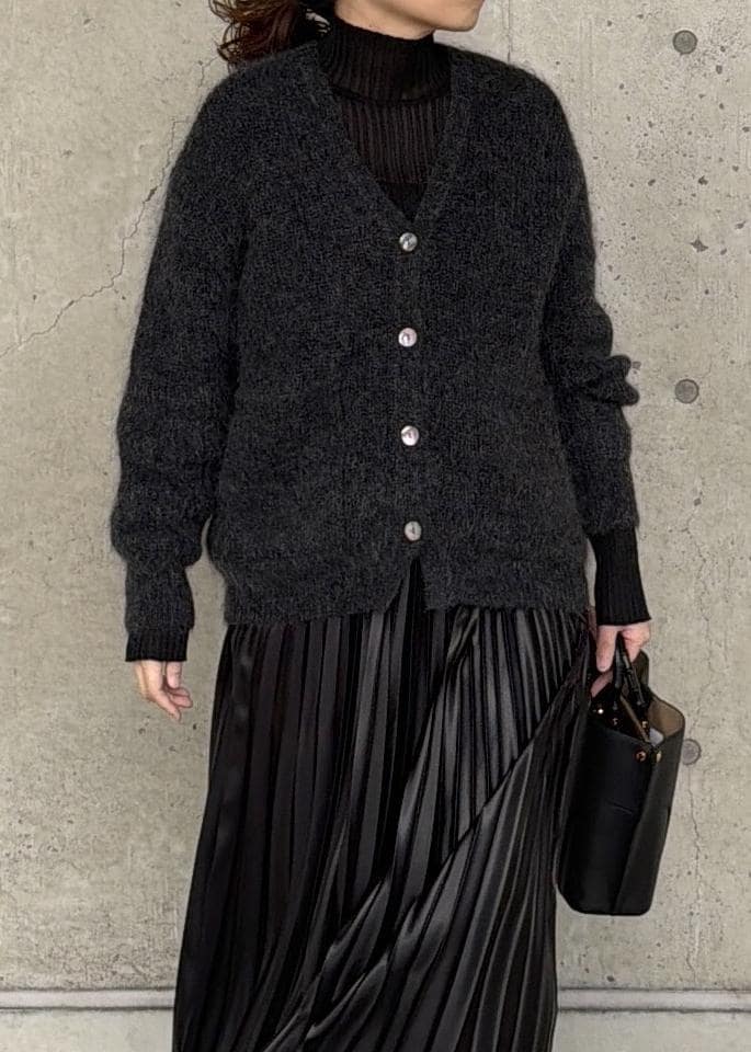 ROPÉスーパーキッドモヘヤVネックカーディガン/イージーケアチャコール / F¥41,800レビュー身長161㎝で普段38サイズを着用しています。