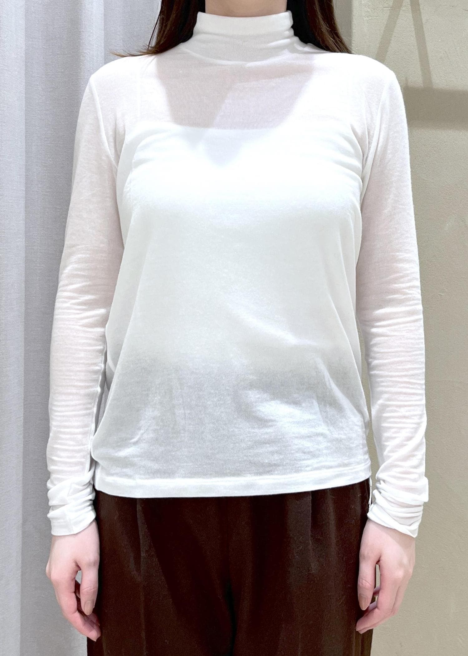 ROPÉカシミヤシルクブレンドインナータートルネック/イージーケアホワイト / F¥15,400レビュー【着丈】