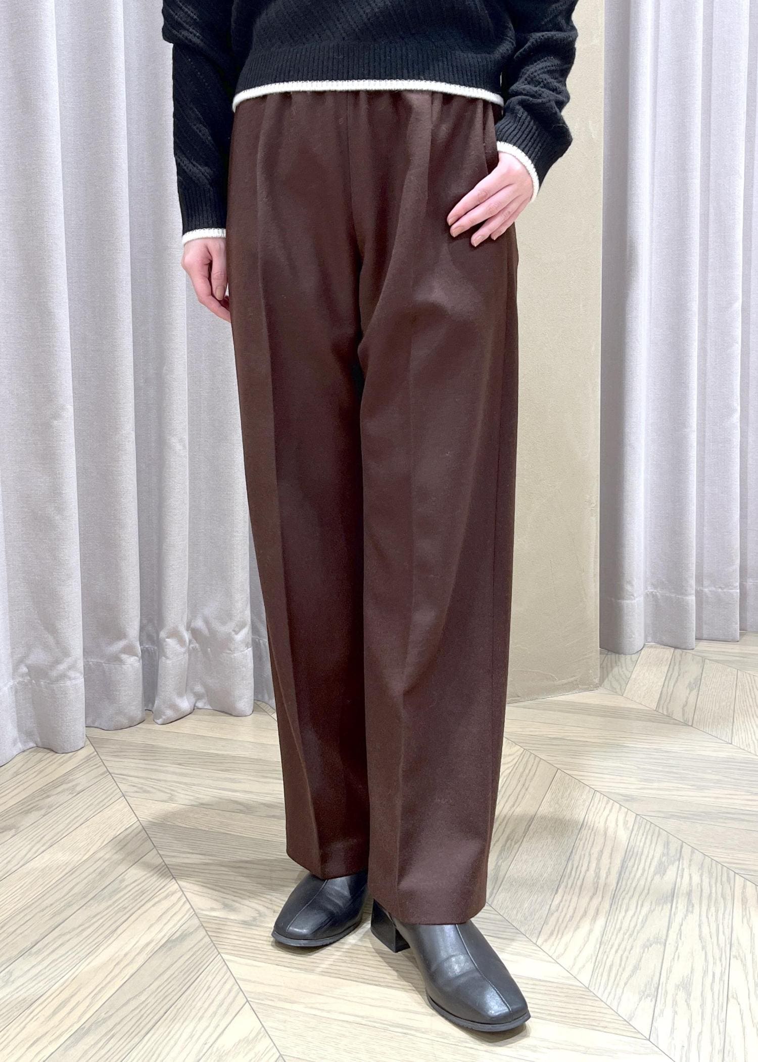 ROPÉウールフランネルタックイージーパンツ/イージーケア・セットアップ対応ダークブラウン / 36¥25,300レビュー【着丈】