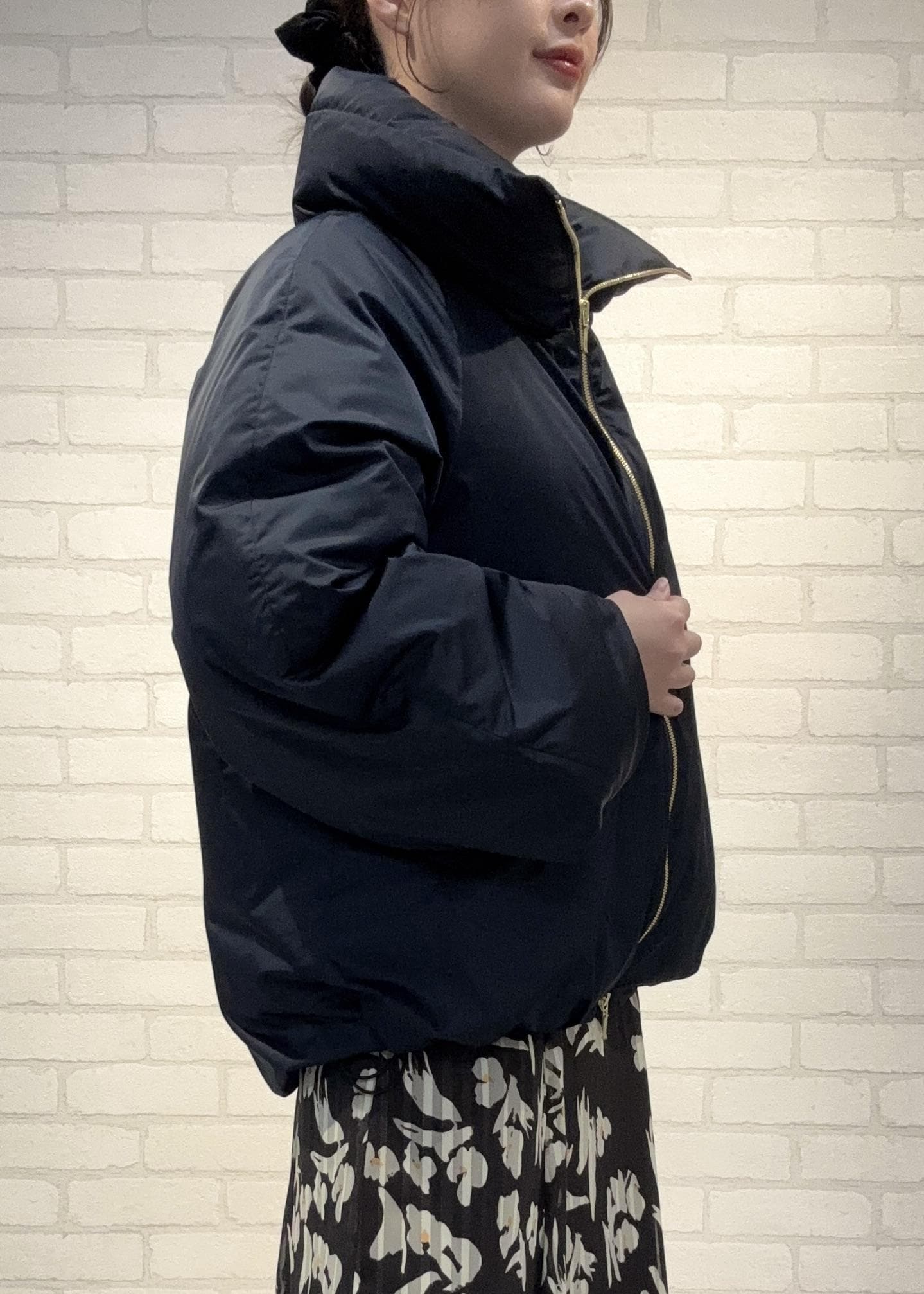 NEW!ROPÉハイネックジップショート丈ダウンコート/イージーケア・撥水ネイビー / F¥53,900レビュー160㎝Fサイズを着用しました。