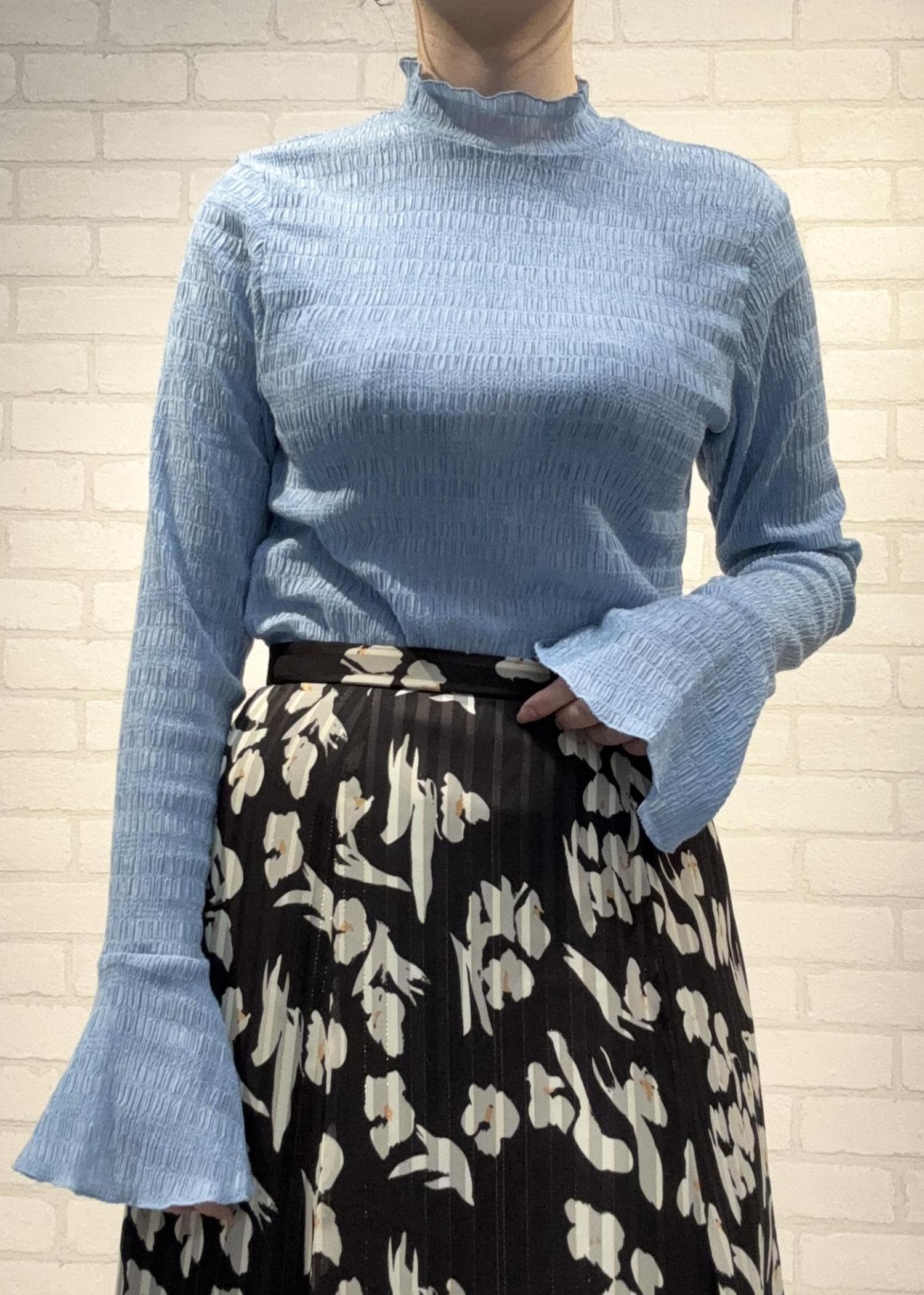 ROPÉボタニカルダイフレアスリーブハイネックカットソー/イージーケア・アンサンブル対応サックス / F¥15,400レビュー160㎝Fサイズを着用しました。