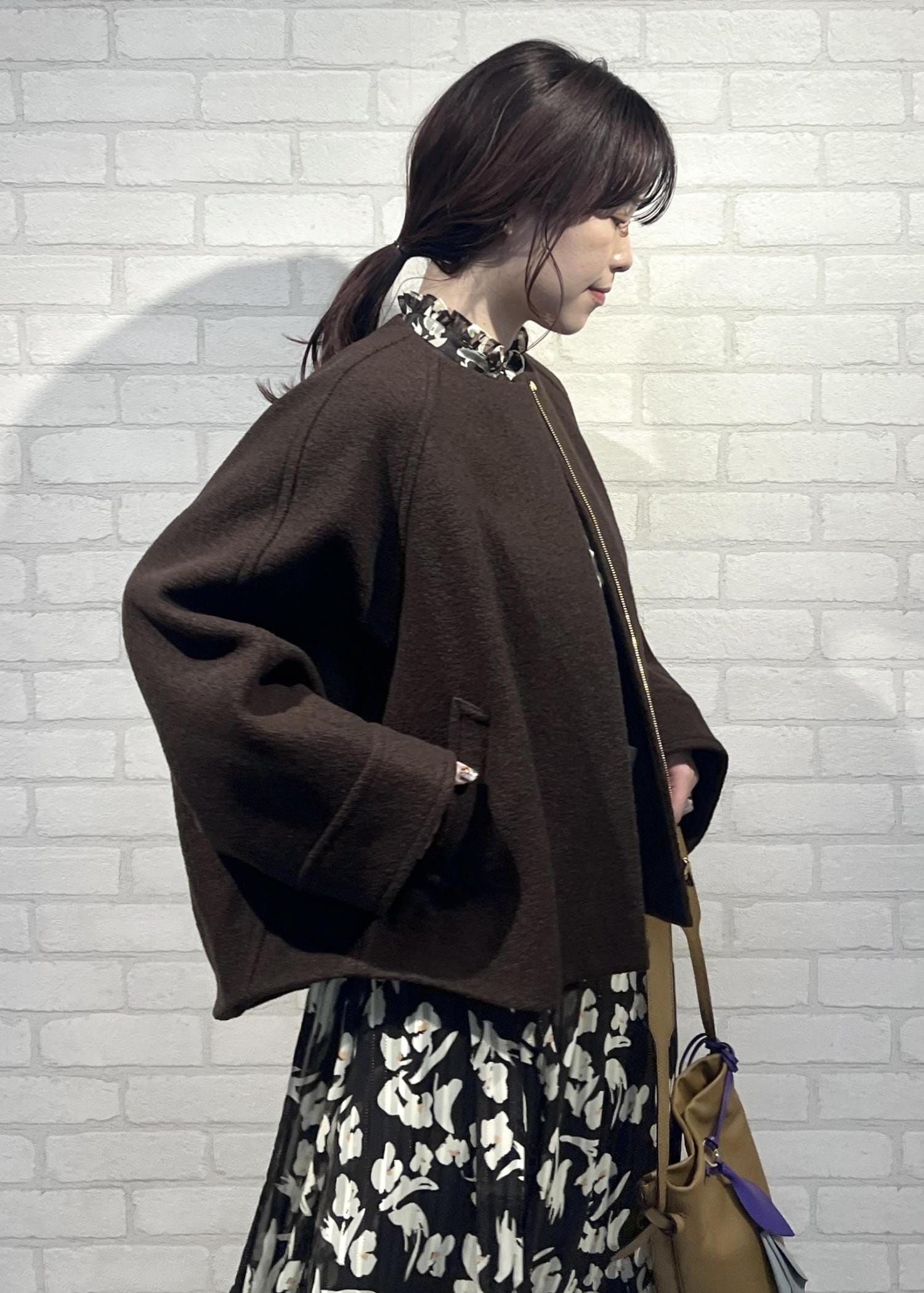 ROPÉ圧縮ウールコクーンショート丈コート/Bellandi(ベランディ)ダークブラウン / 38¥58,300レビュー着丈はお腹周りとお尻がしっかりと隠れる丈感。前後で差があり、スカートでもバランスが取りやすいです◎