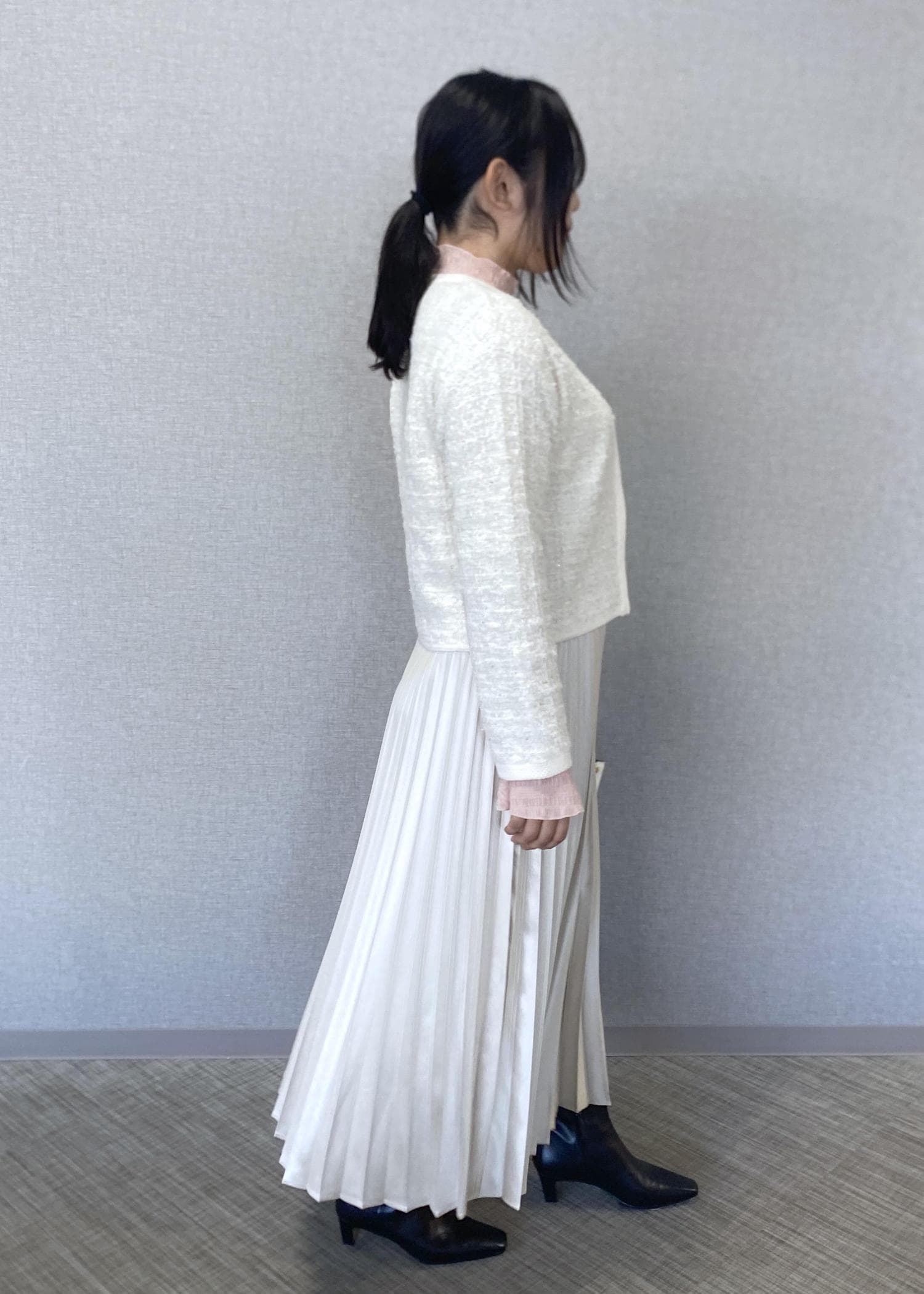 薄手のインナーやブラウスと合わせて着ると可愛いです。