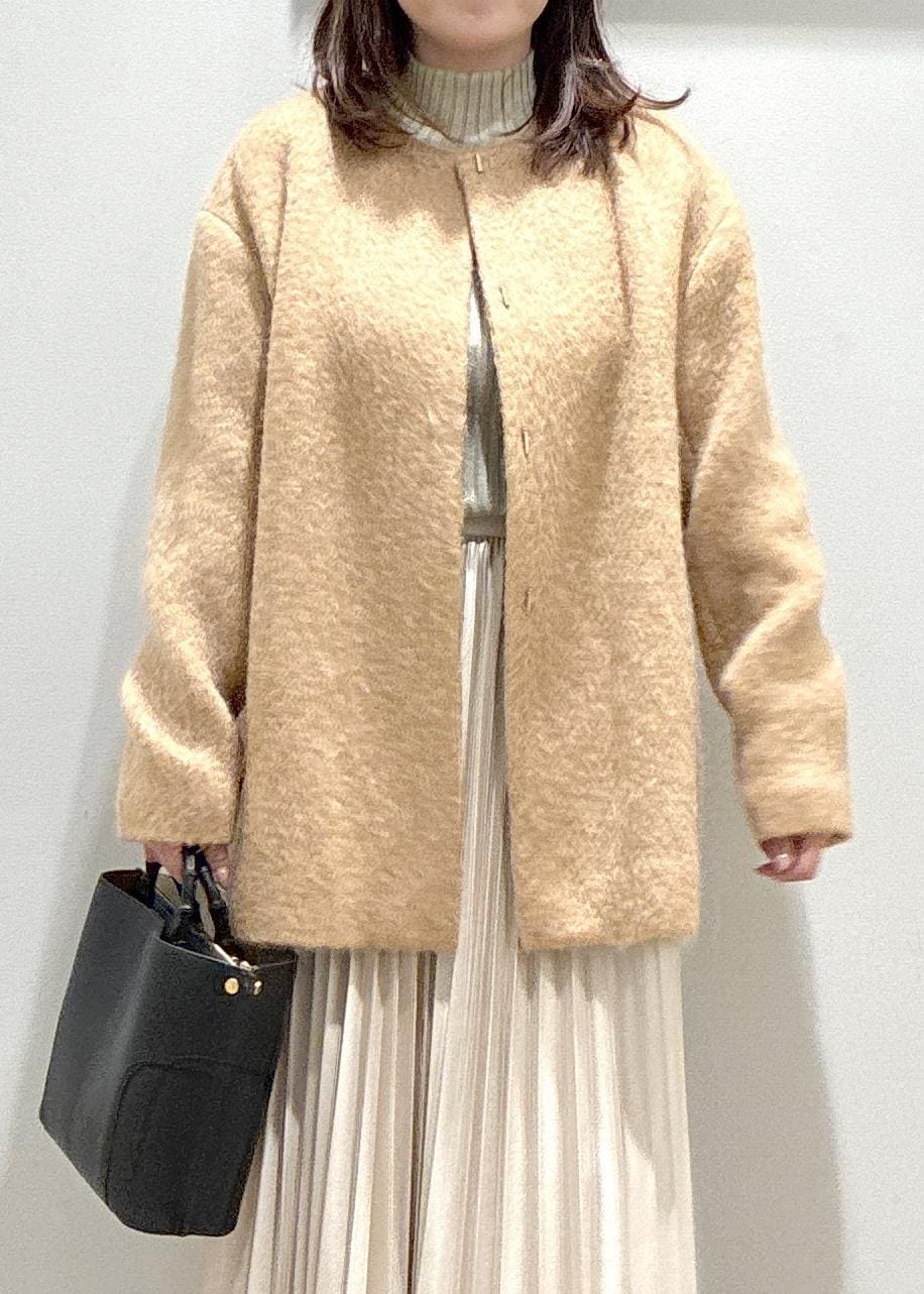 ROPÉウールモヘヤノーカラーミドル丈コートベージュ / F¥68,200レビュー158cmフリーサイズ着用。