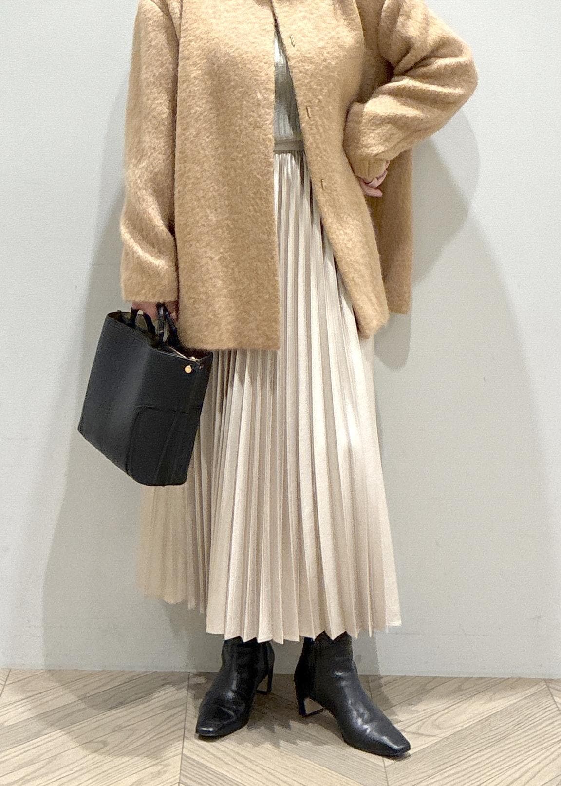 ROPÉシャイニープリーツスカート/イージーケアベージュ / F¥26,400レビュー158cmフリーサイズ着用。