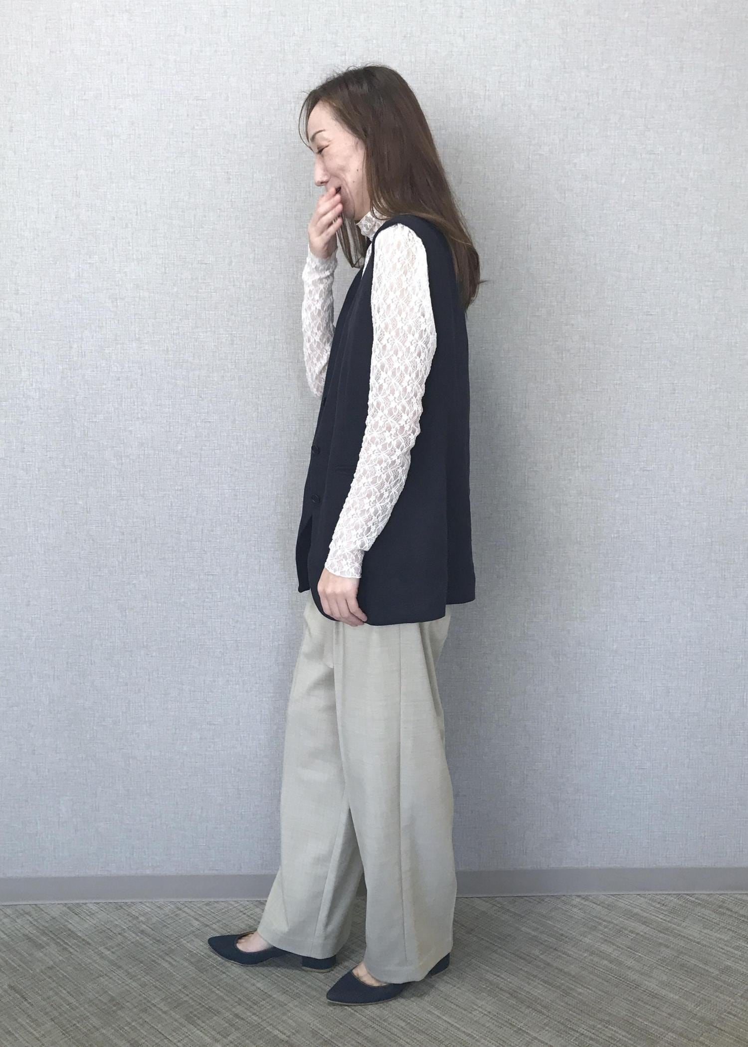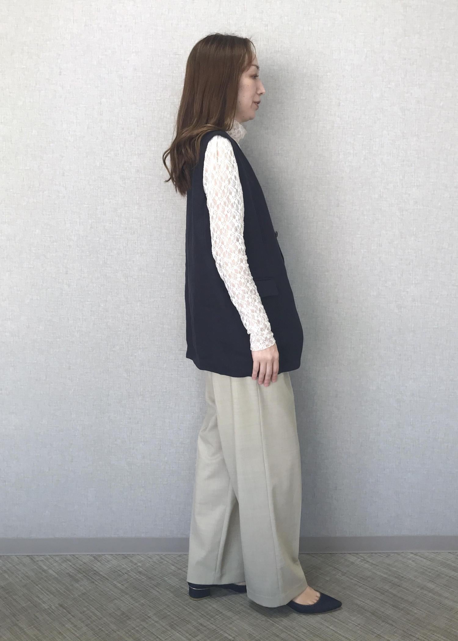 キレイ見えアイテムでパンツスタイルが足りない方へ。程よいワイド感がお仕事のアクティブな日にも着用しやすく、レース素材やパステルカラーなど華やかなスタイルにも柔らかいベージュカラーが馴染みます。