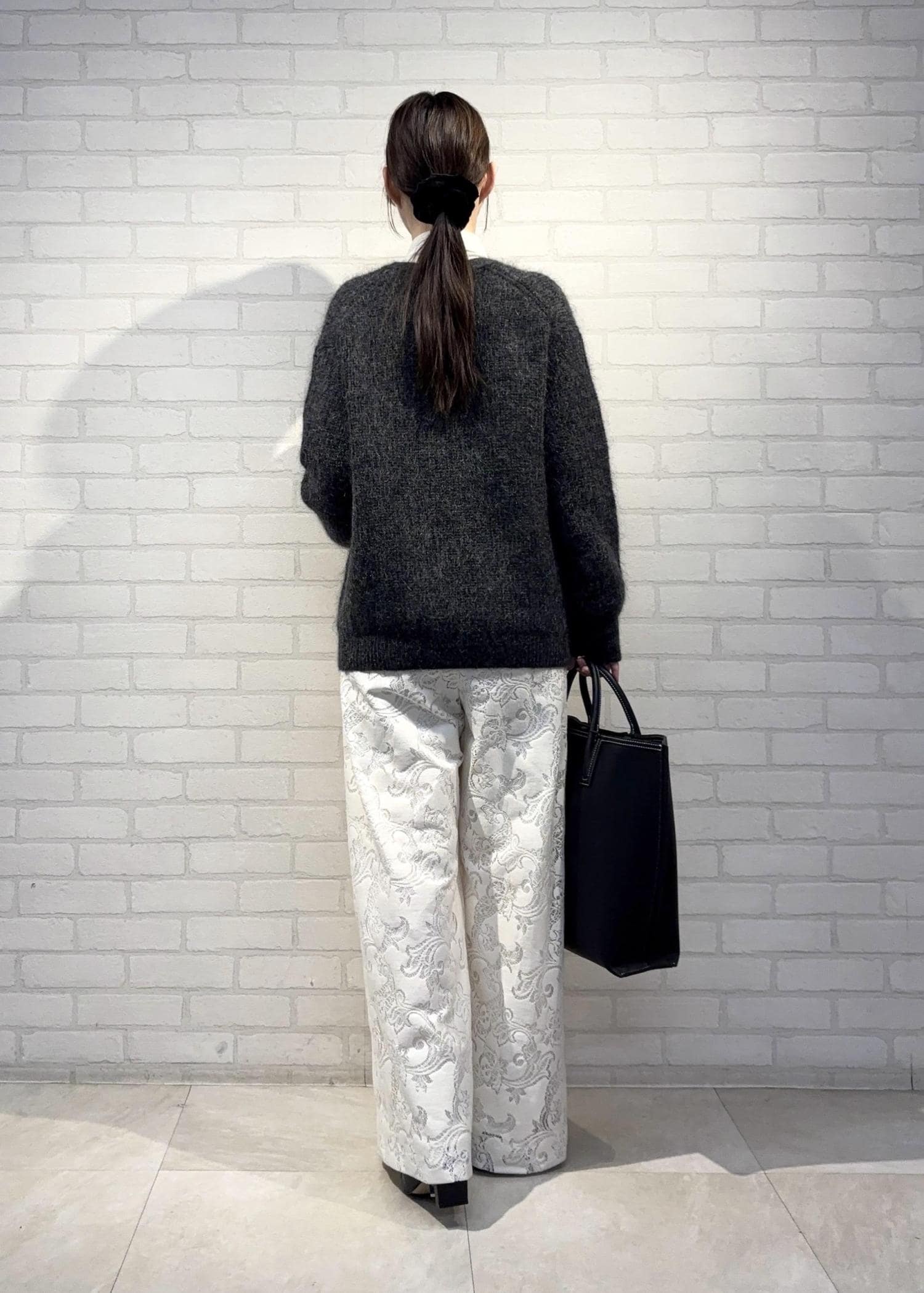 フロント部分にはポケットが左右に付いておりモヘアのチクチク感無く、日常使いしやすい一着です。 -