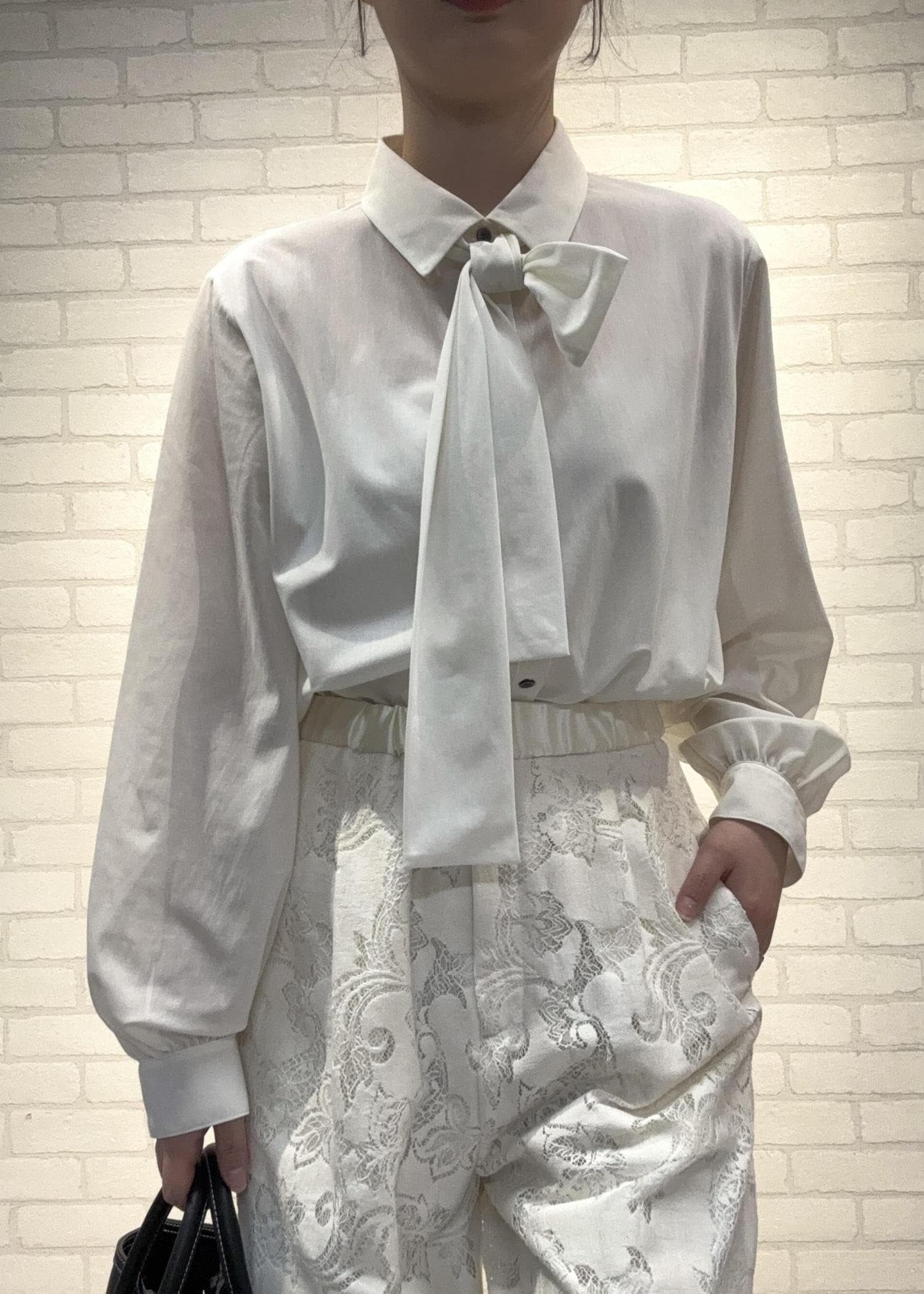 ROPÉシアートリコットボウタイシャツブラウス/イージーケアホワイト / F¥19,800レビュー160㎝Fサイズを着用しました。