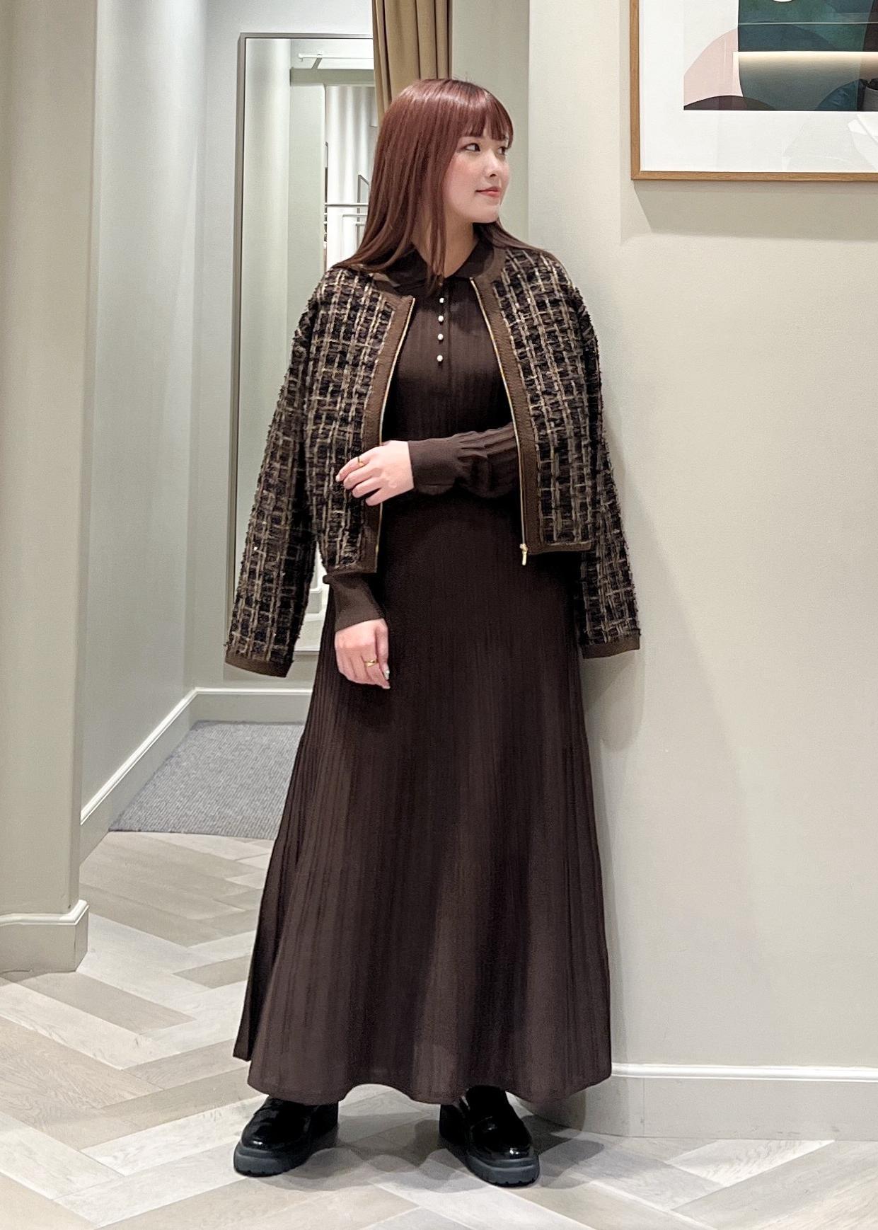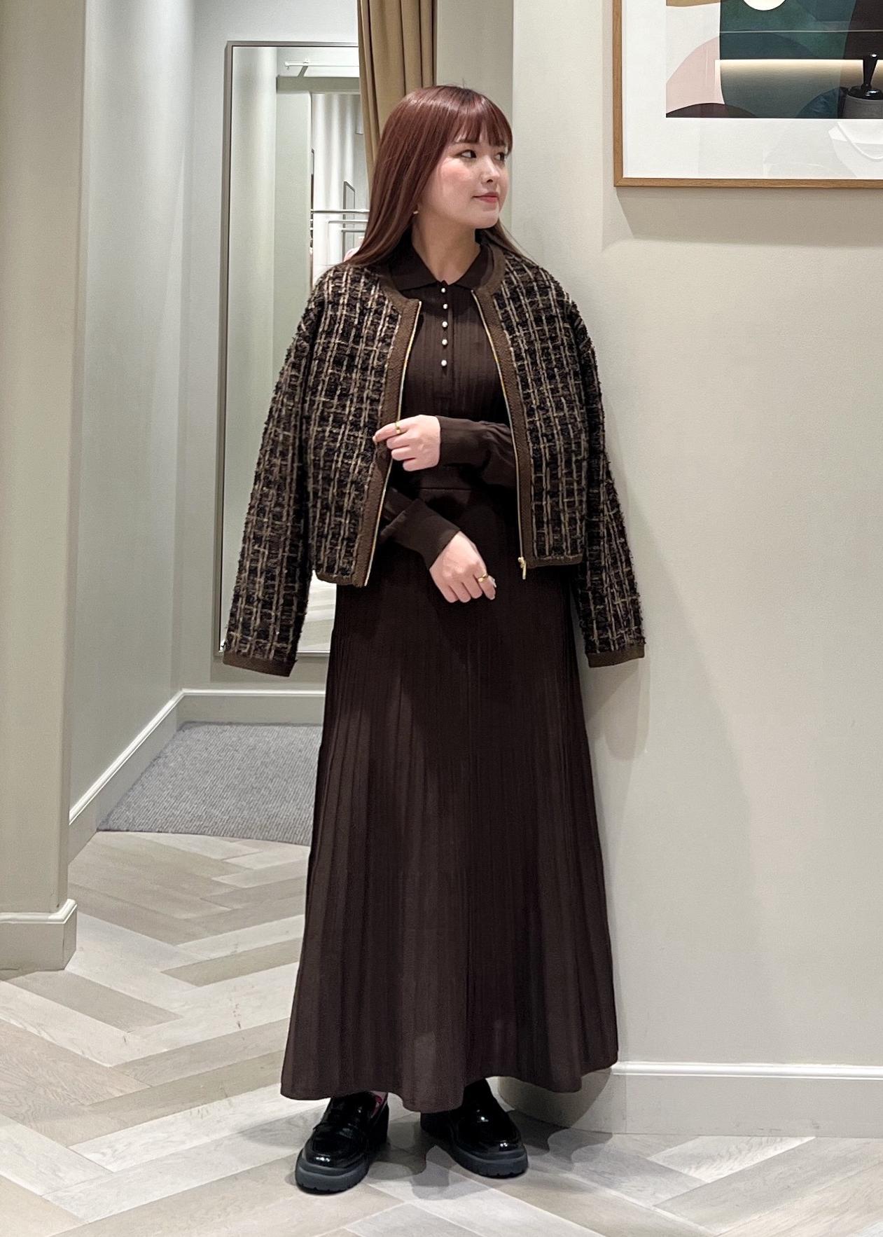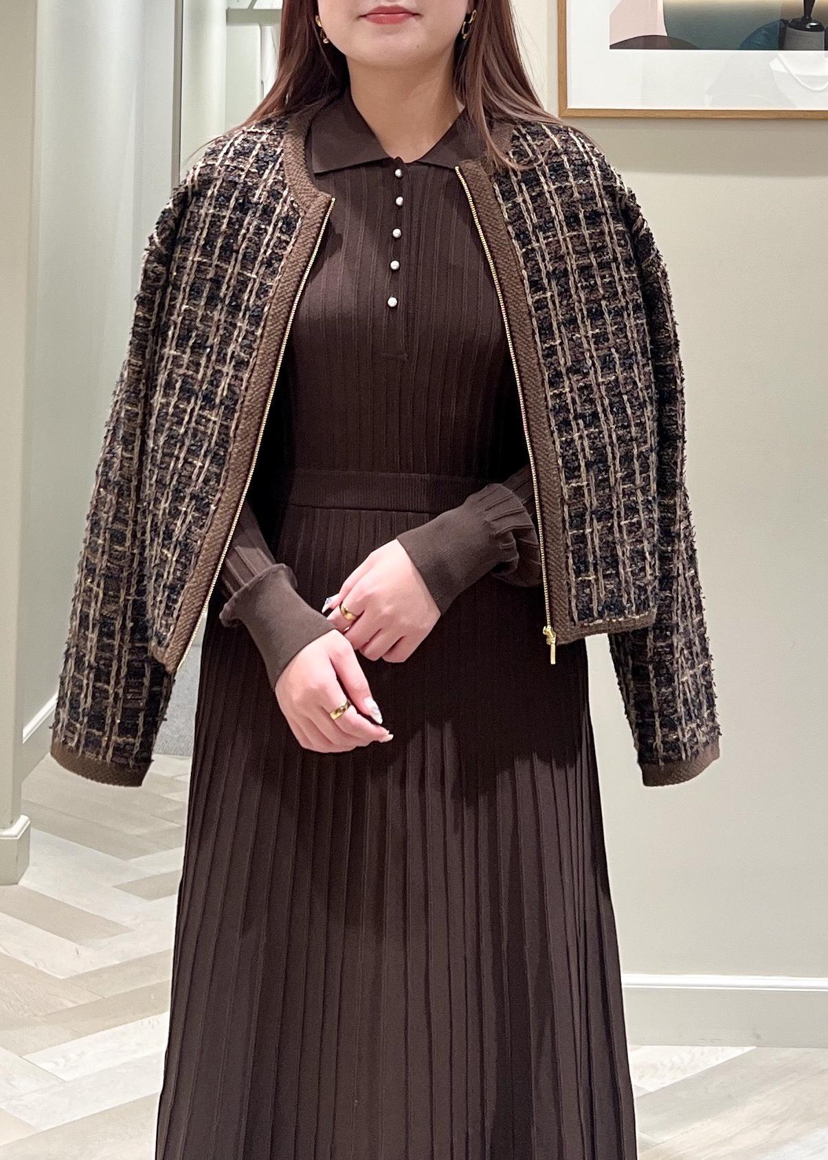 ROPÉツイードZIPノーカラーカーディガン/イージーケアブラウン / F¥25,300レビューフリーサイズ着用で比較的すっきりした