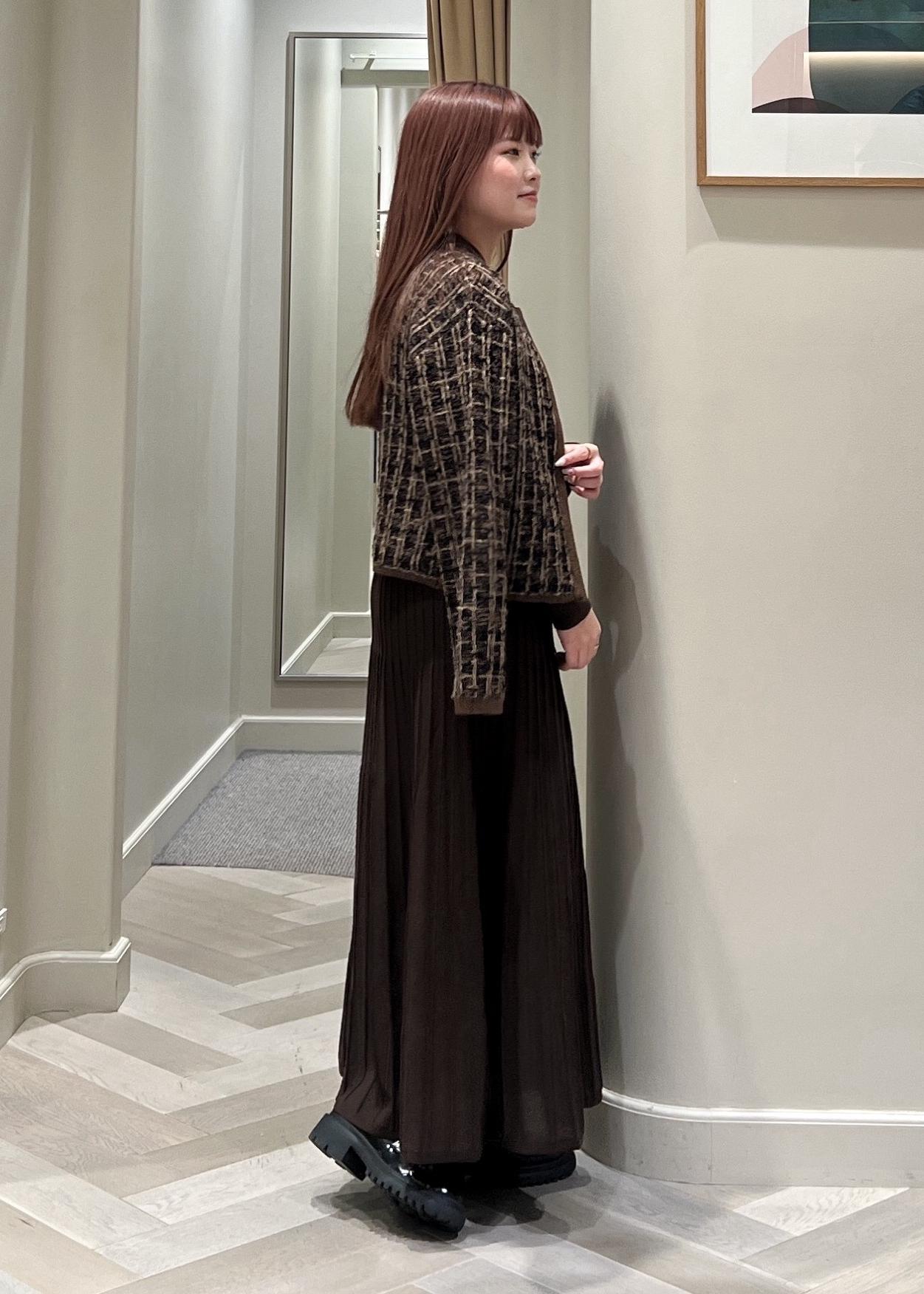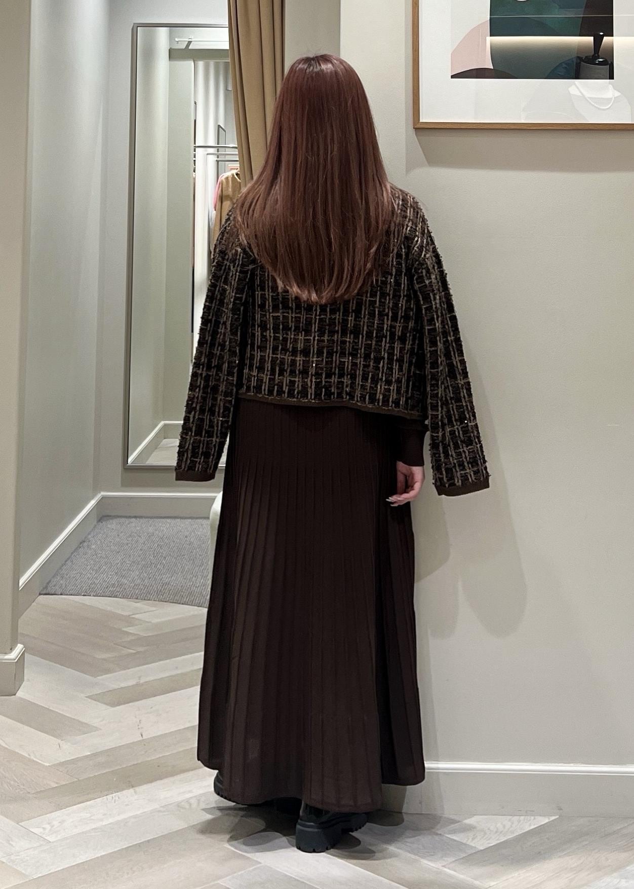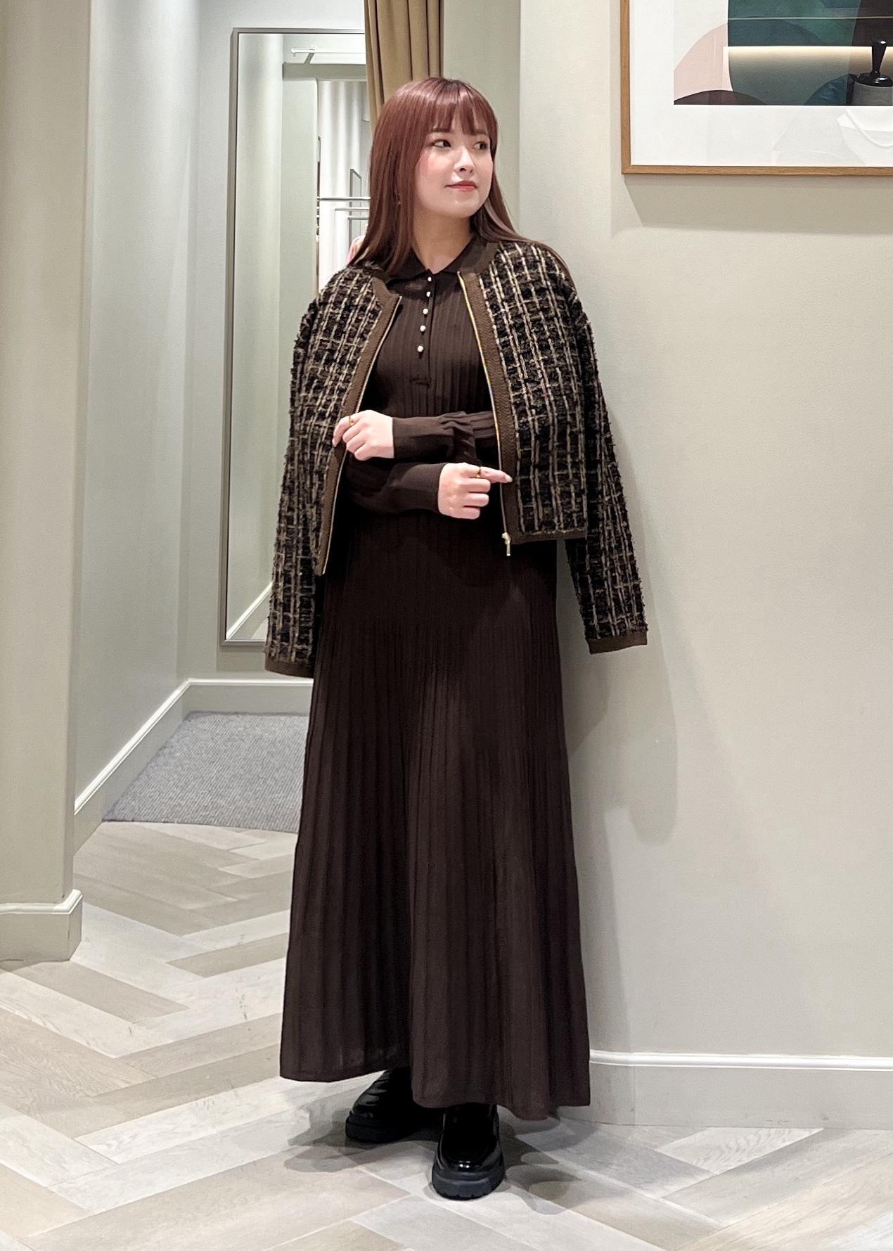 ROPÉツイードZIPノーカラーカーディガン/イージーケアブラウン / F¥25,300レビューフリーサイズ着用で比較的すっきりした