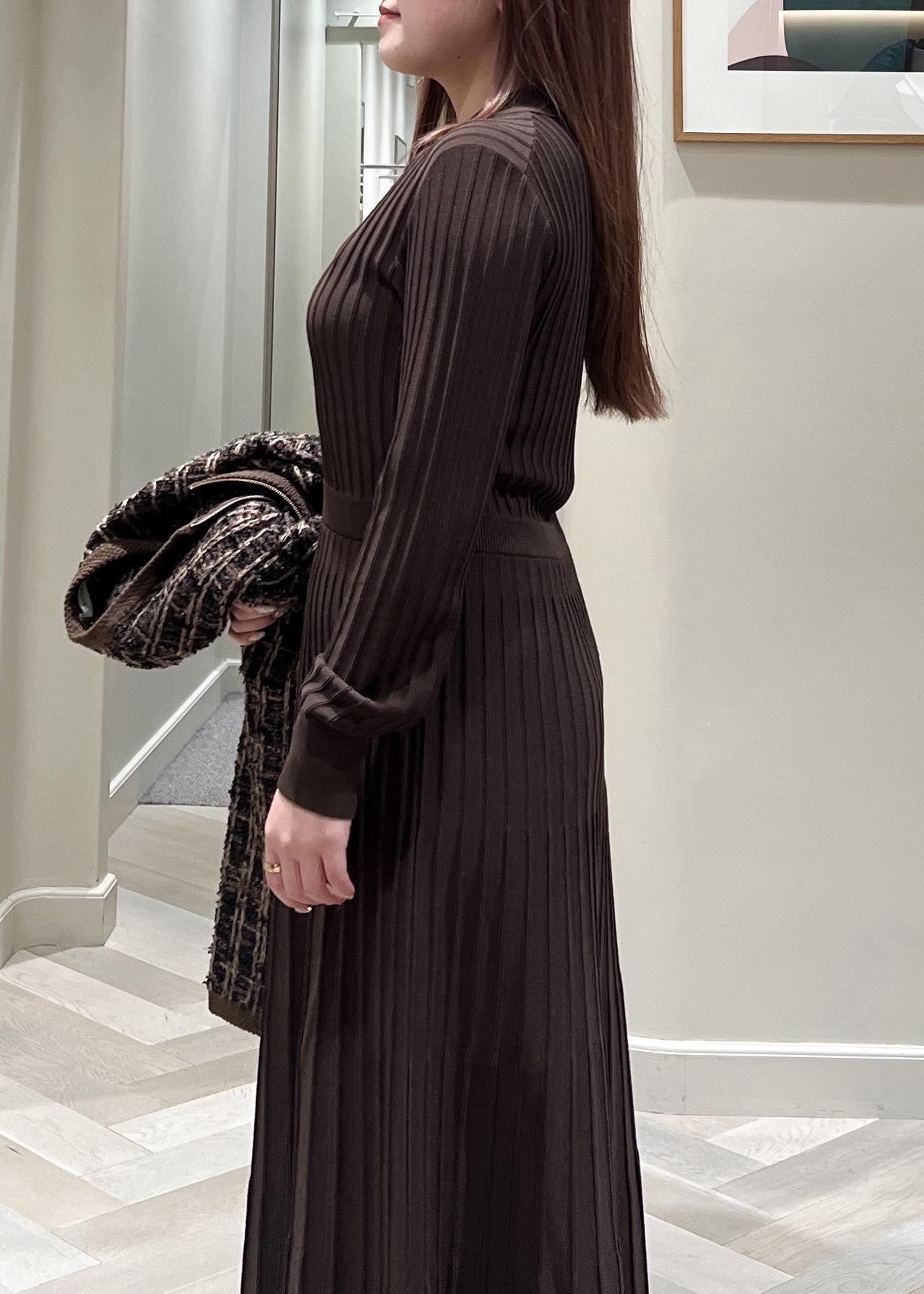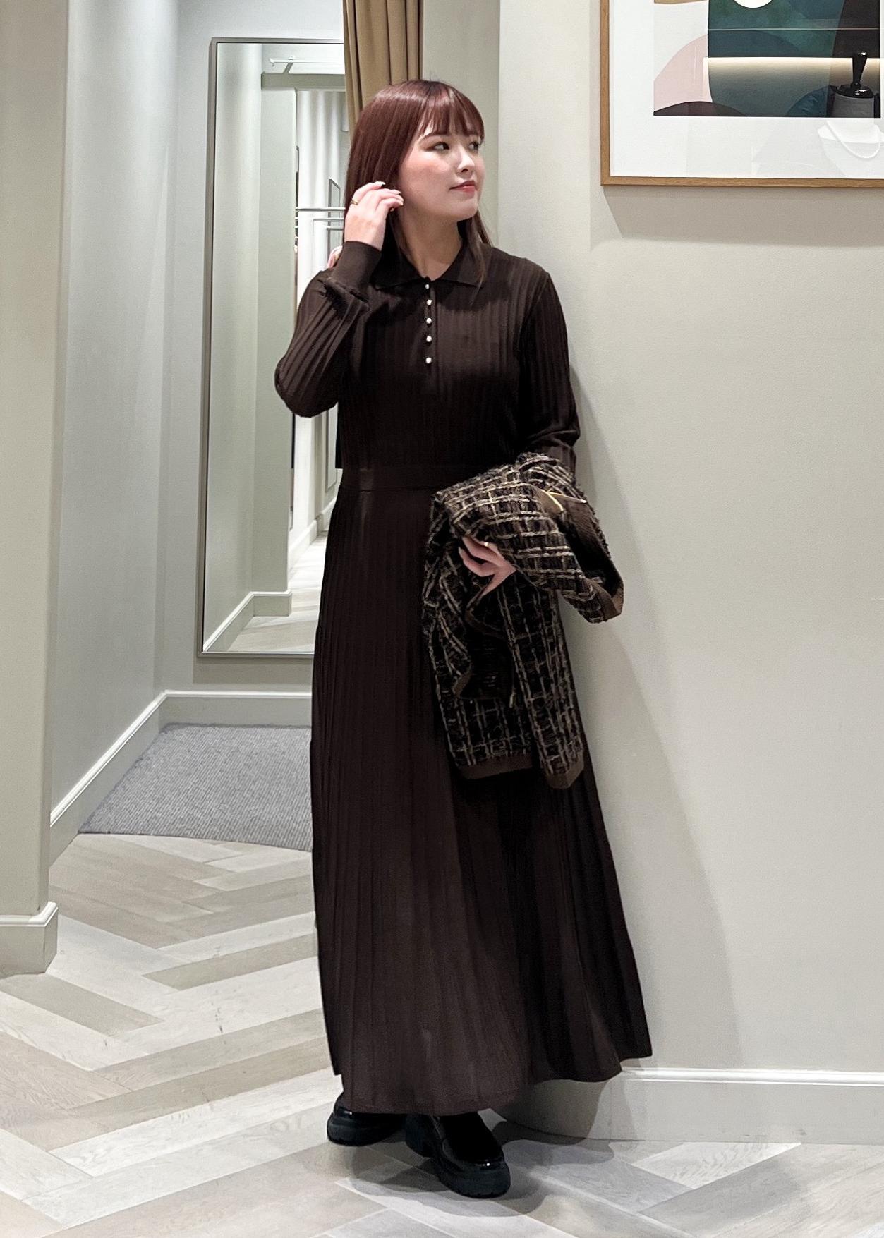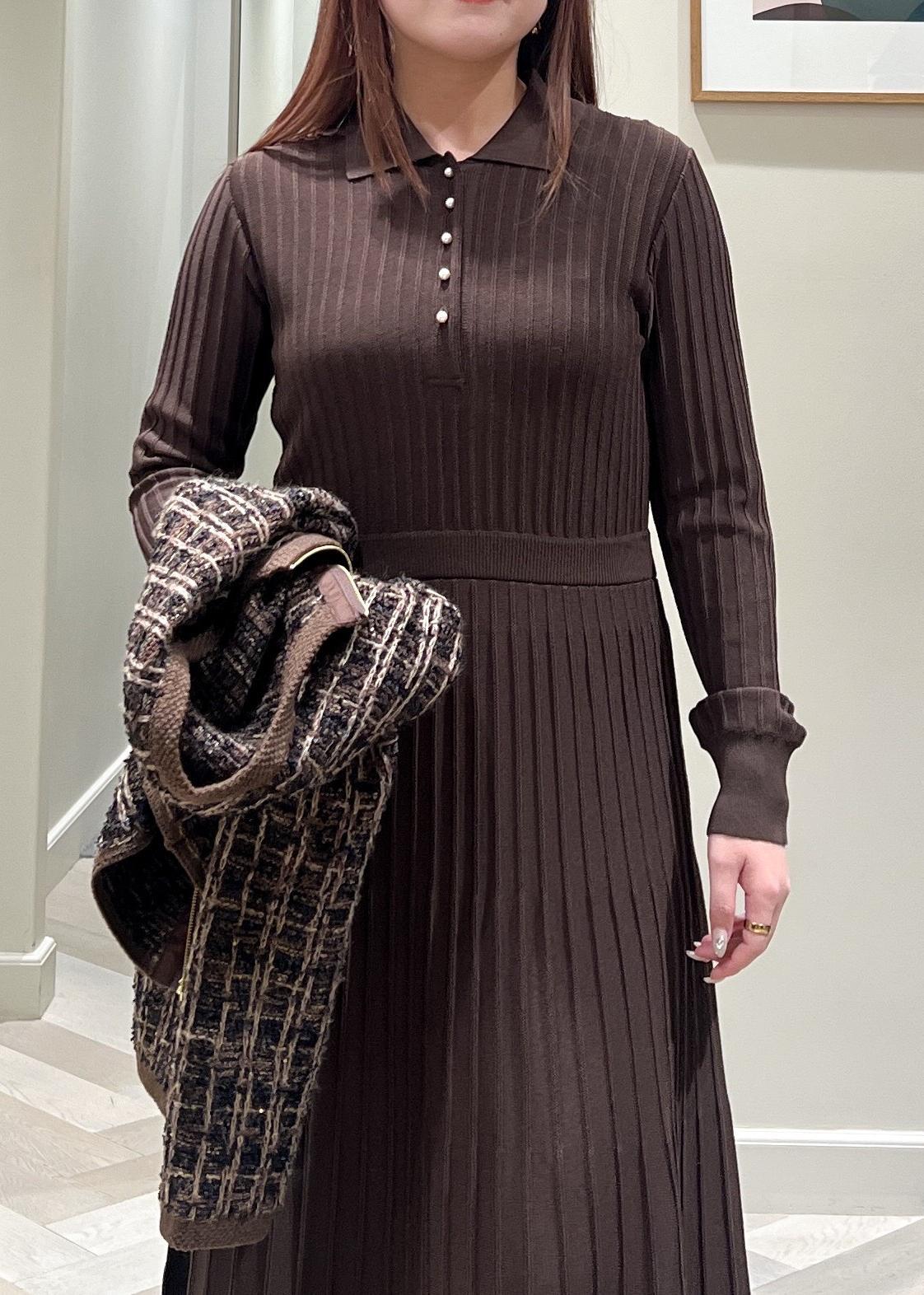 ROPÉパールボタンポロニットワンピース/イージーケアダークブラウン系 / F¥35,200レビュー伸縮性かありのびるので