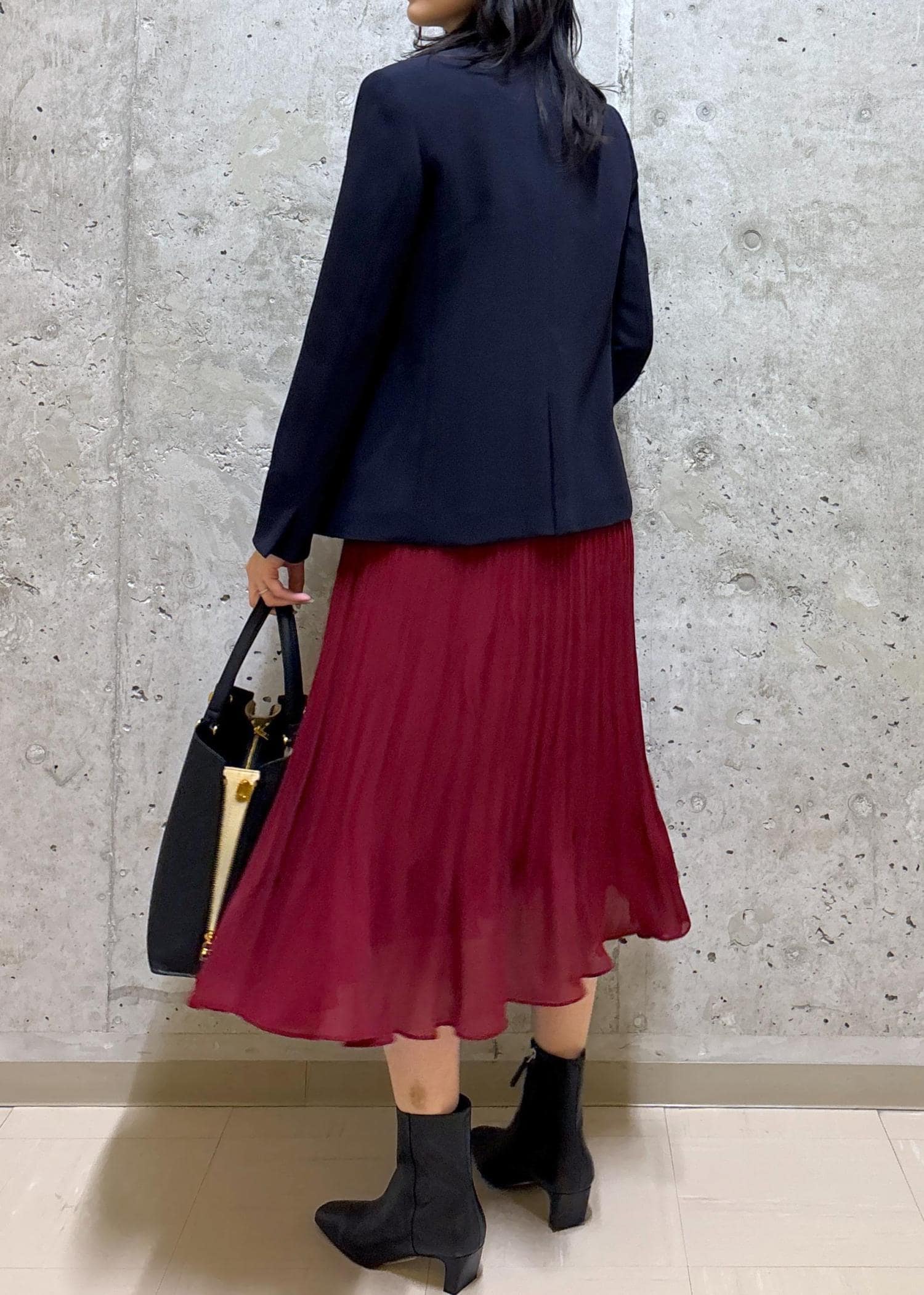 プリーツとシフォンの揺れ感で女性らしさ◎