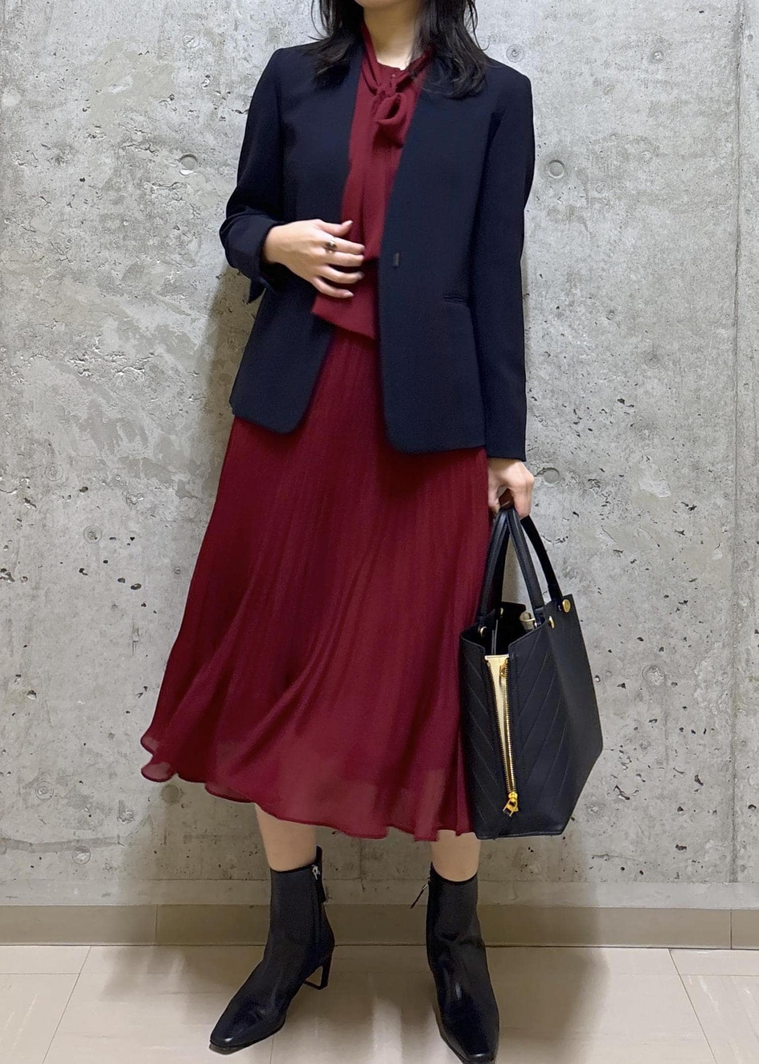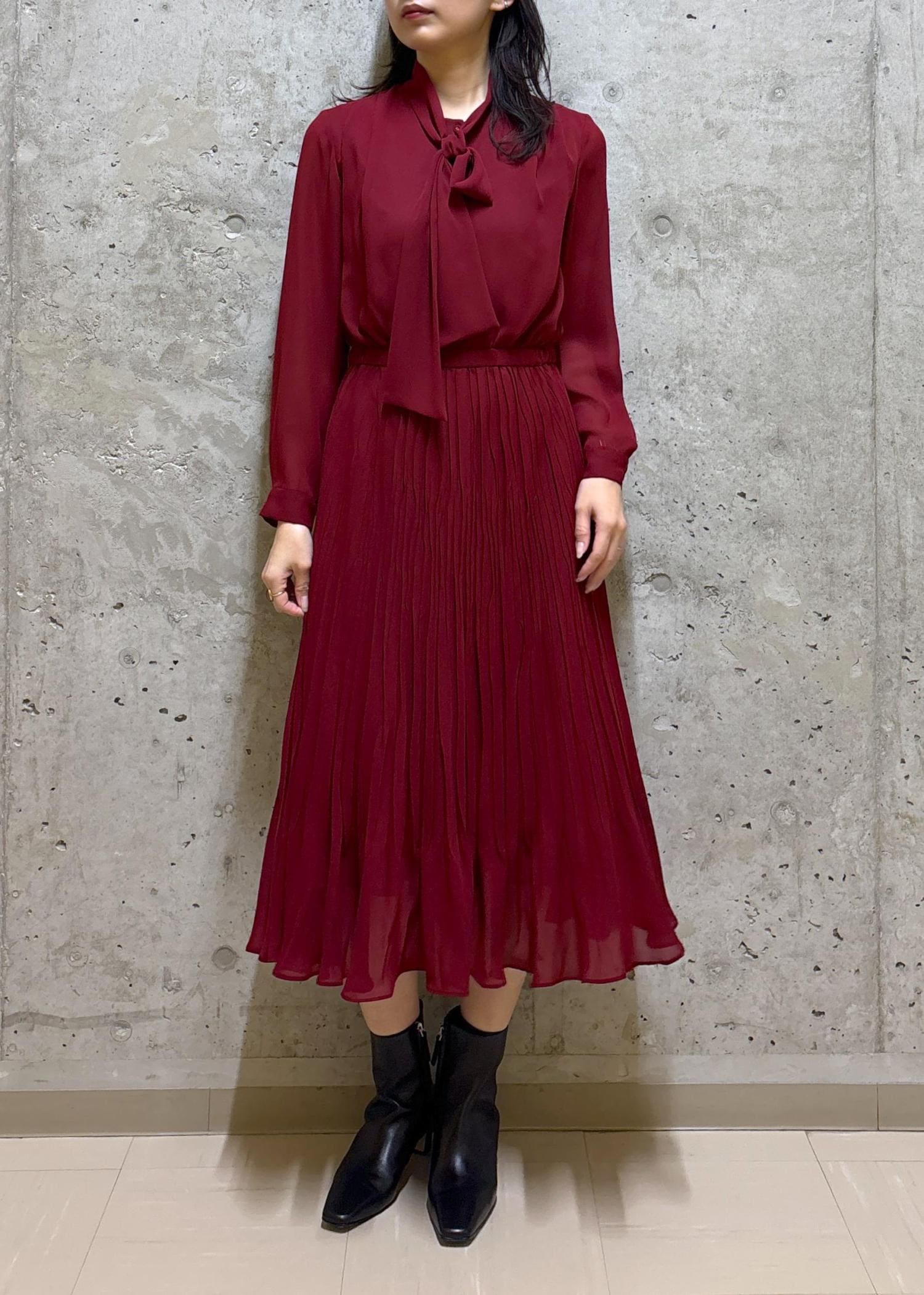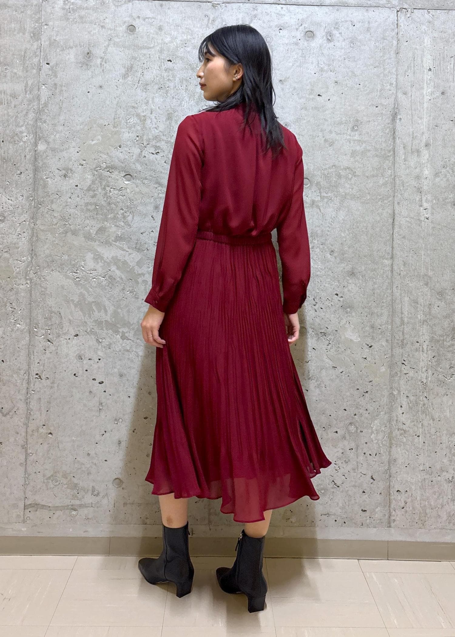 ROPÉジョーゼットシフォンプリーツワンピース/26SSワイン / 38¥49,500レビュー身長164㎝、普段38サイズを着用。