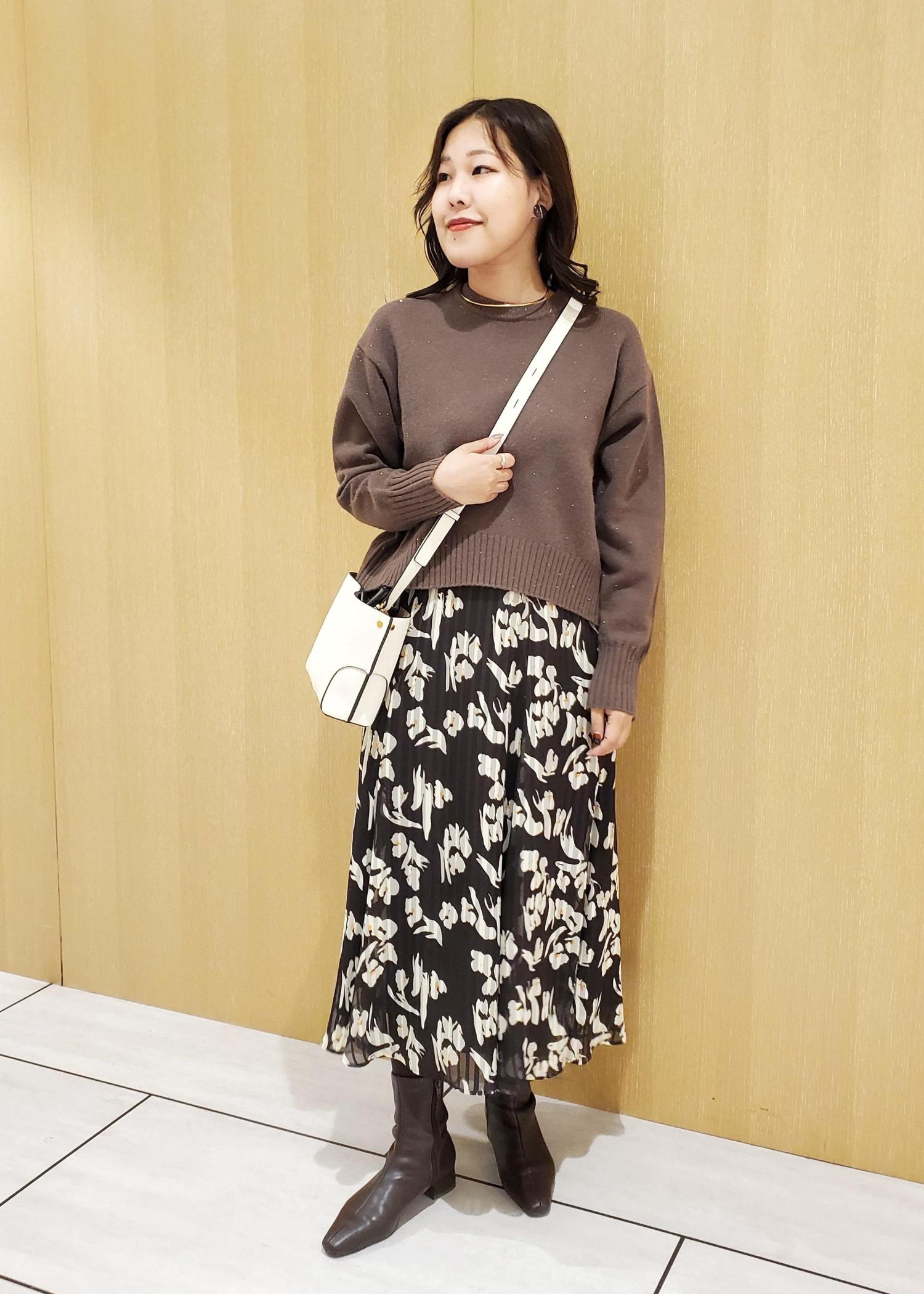 シックな配色なので、さり気なく華やかさを足してくれるスカートです。 -