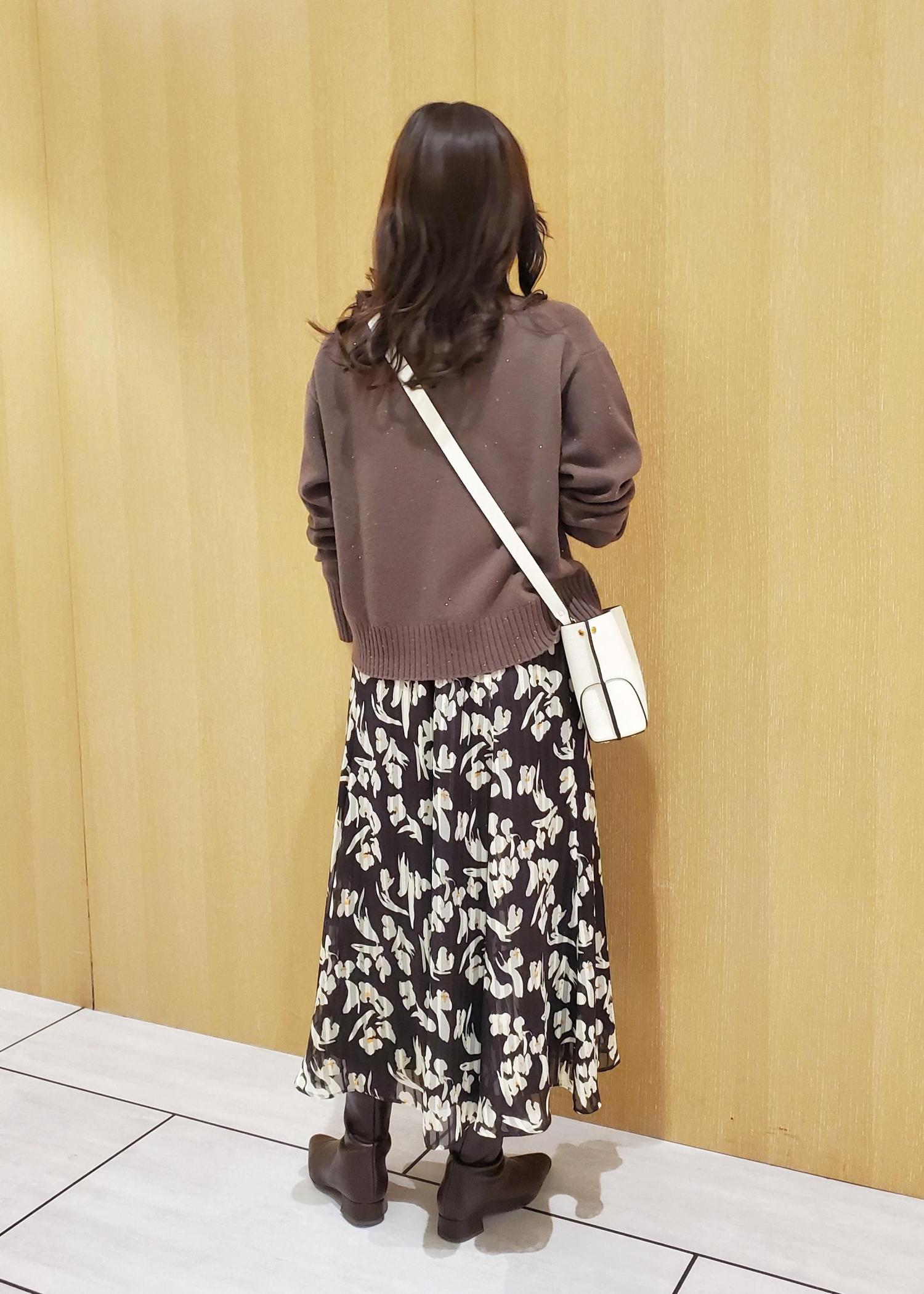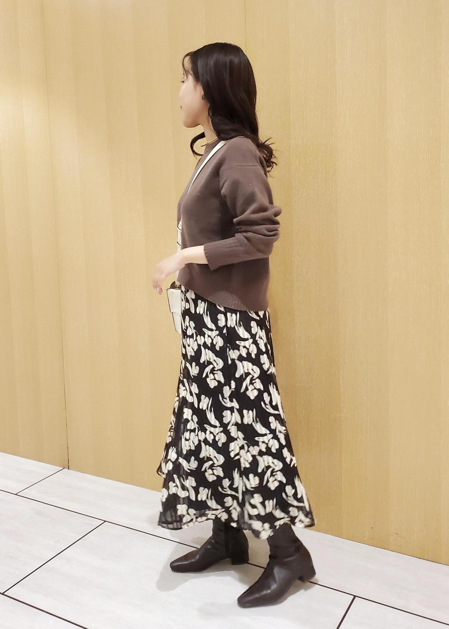 ROPÉフラワープリントマーメイドスカートダークブラウン系 / 36¥25,300レビューさり気ないフレアラインのスカートで、軽い履き心地で歩いたときの揺れ感がとても綺麗です。