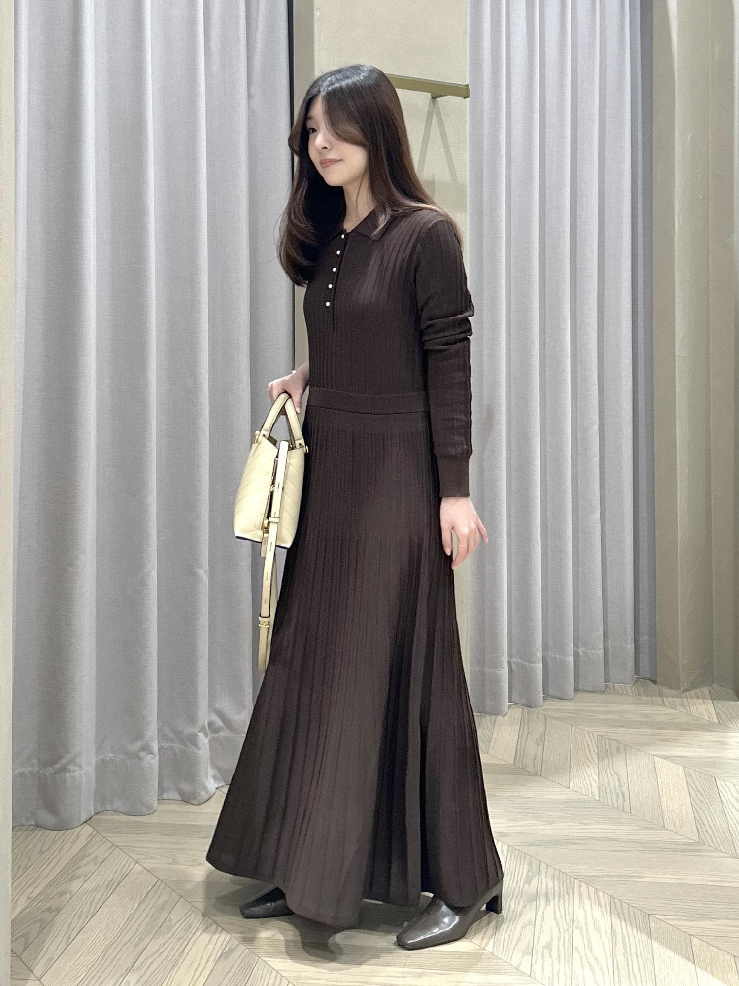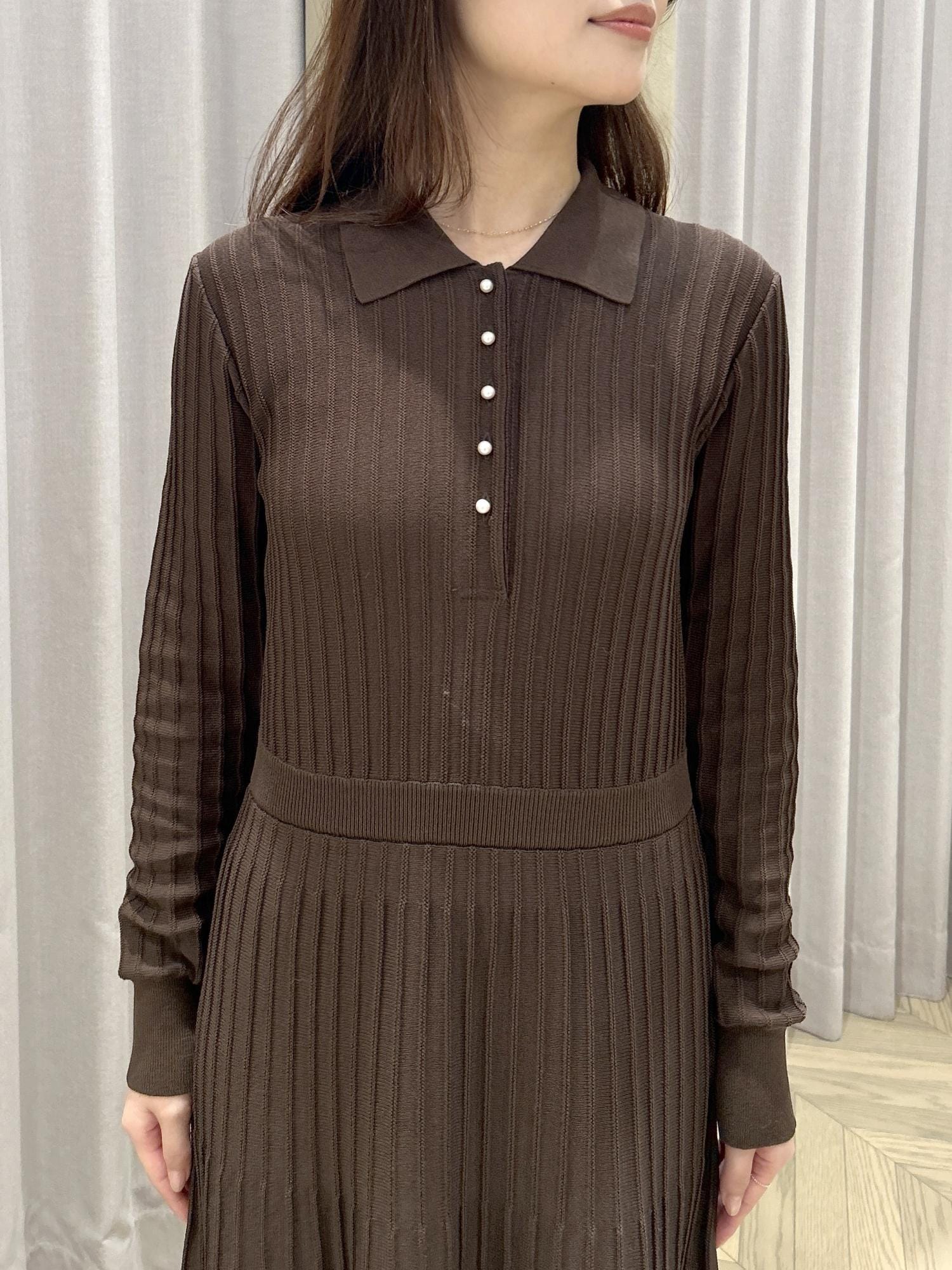 ROPÉパールボタンポロニットワンピース/イージーケアダークブラウン系 / F¥35,200レビュー身長151㎝の私が着用して