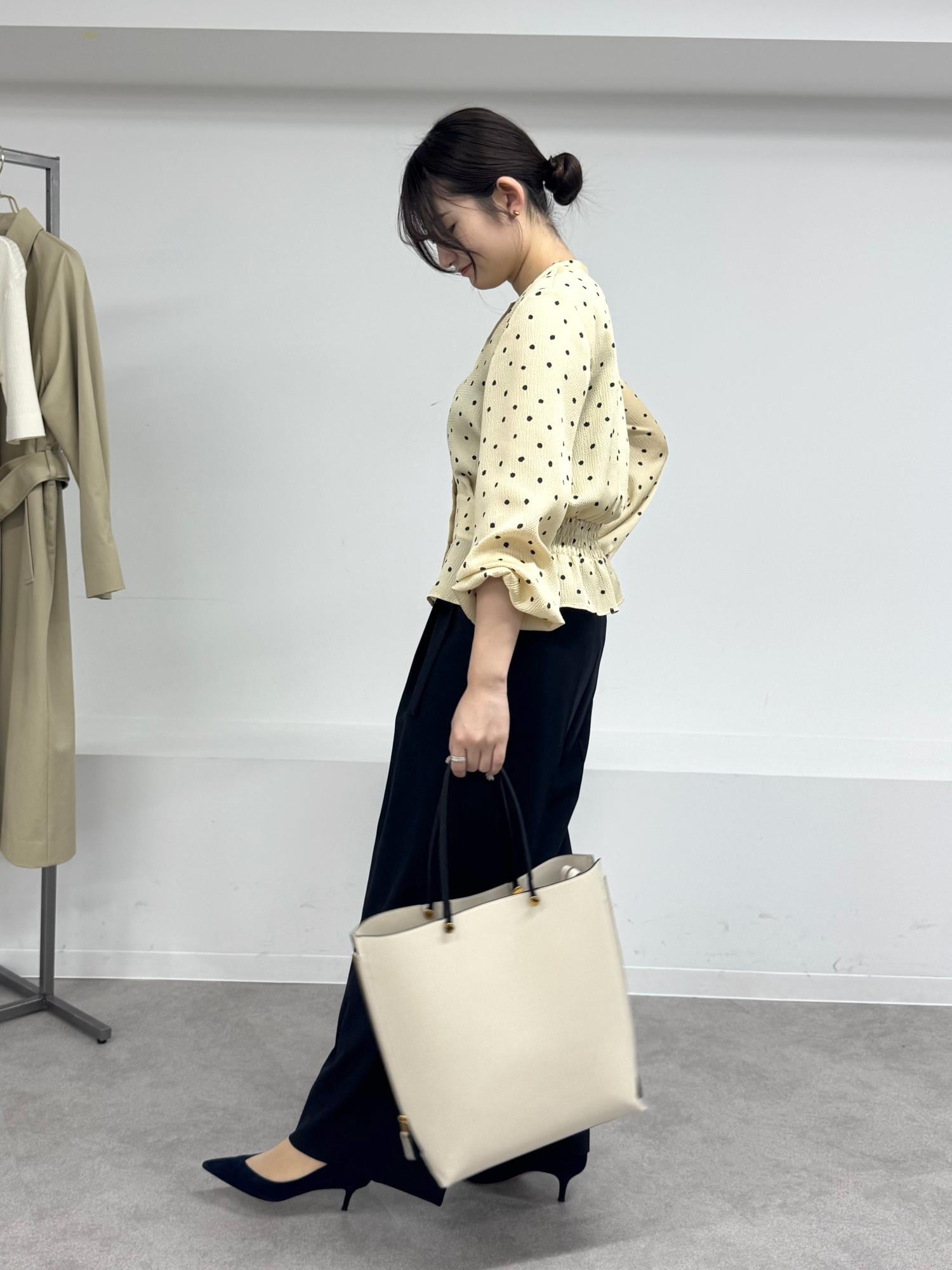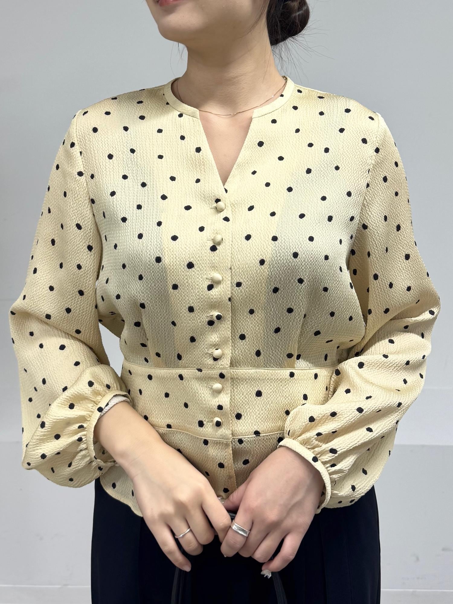 予約ROPÉドットプリントウエストタックペプラムブラウス/イージーケアベージュ / 38¥26,400レビュー凹凸のあるクレーターサテン素材。