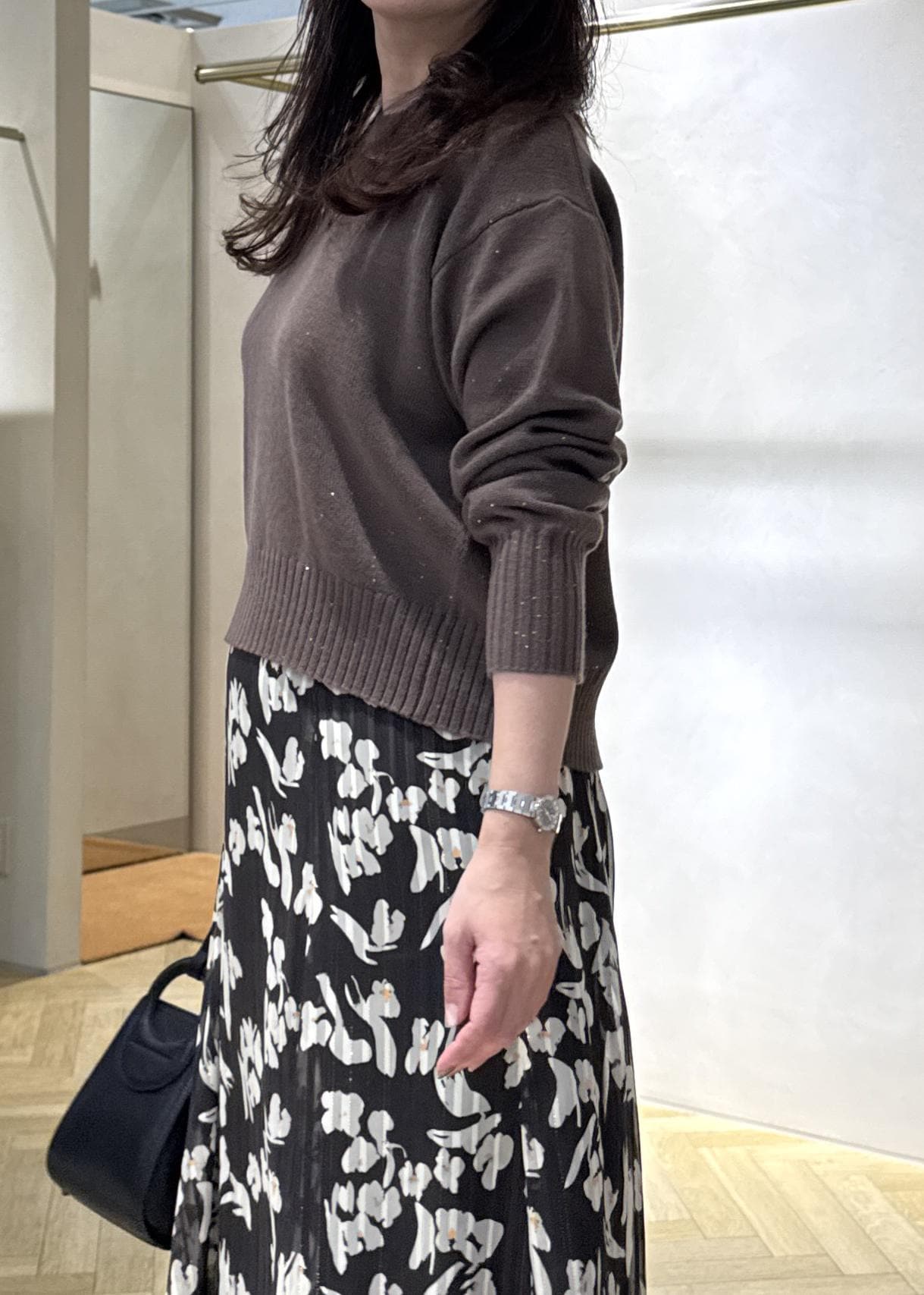 プリントもそうですが裾に動きが出るもの年末年始のお出掛けに華やかさをプラスできとてもオススメですよ♪ -