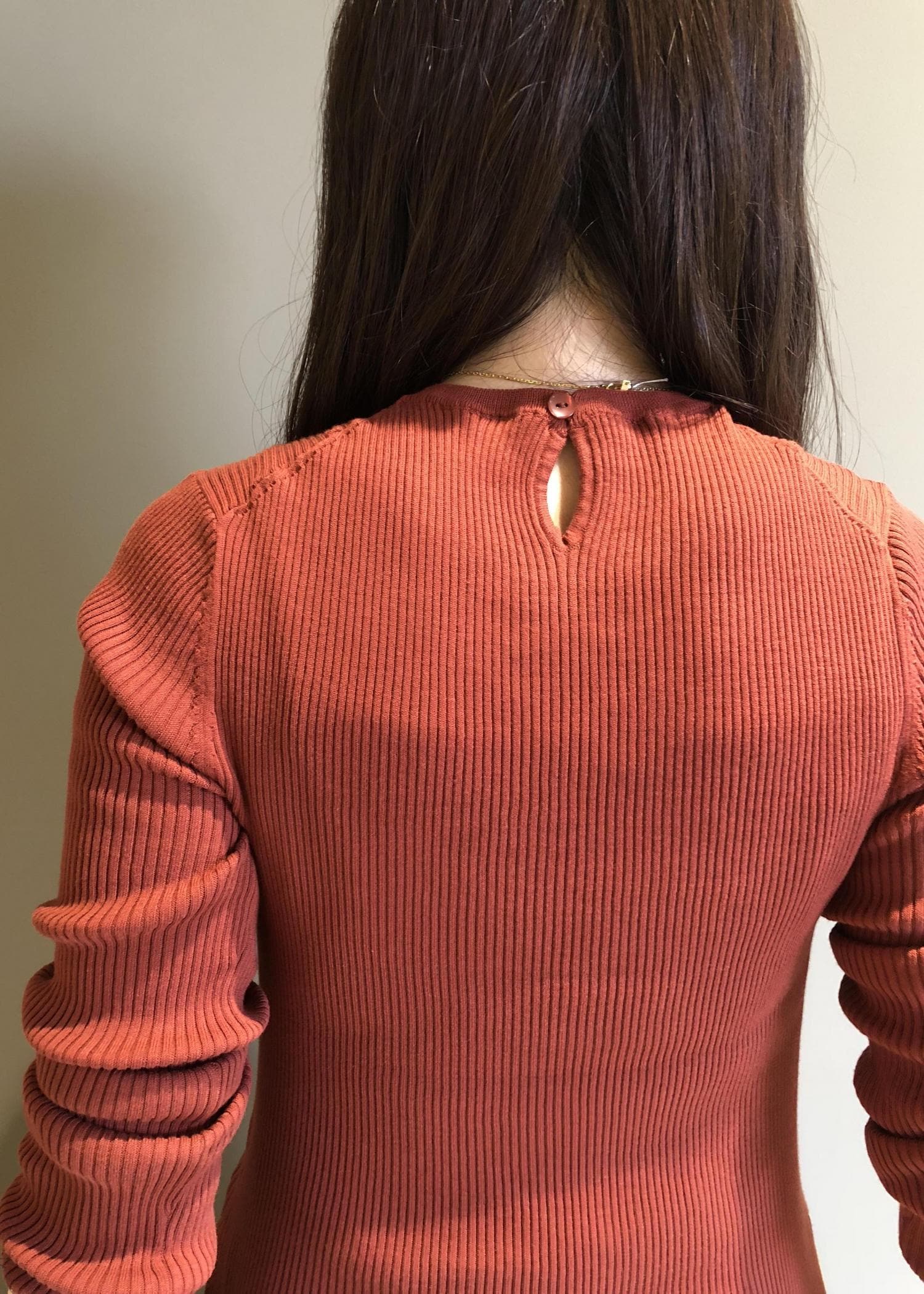 シンプルなリブニットはインナー使いにぴったりです。