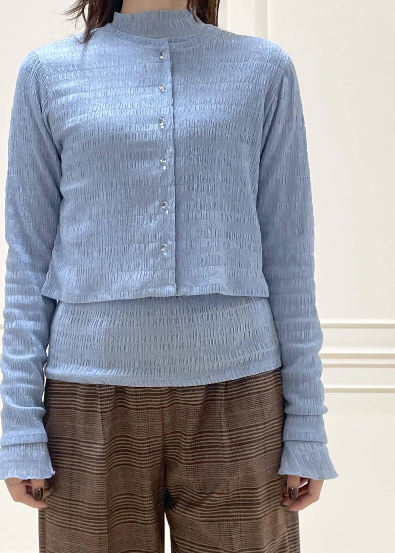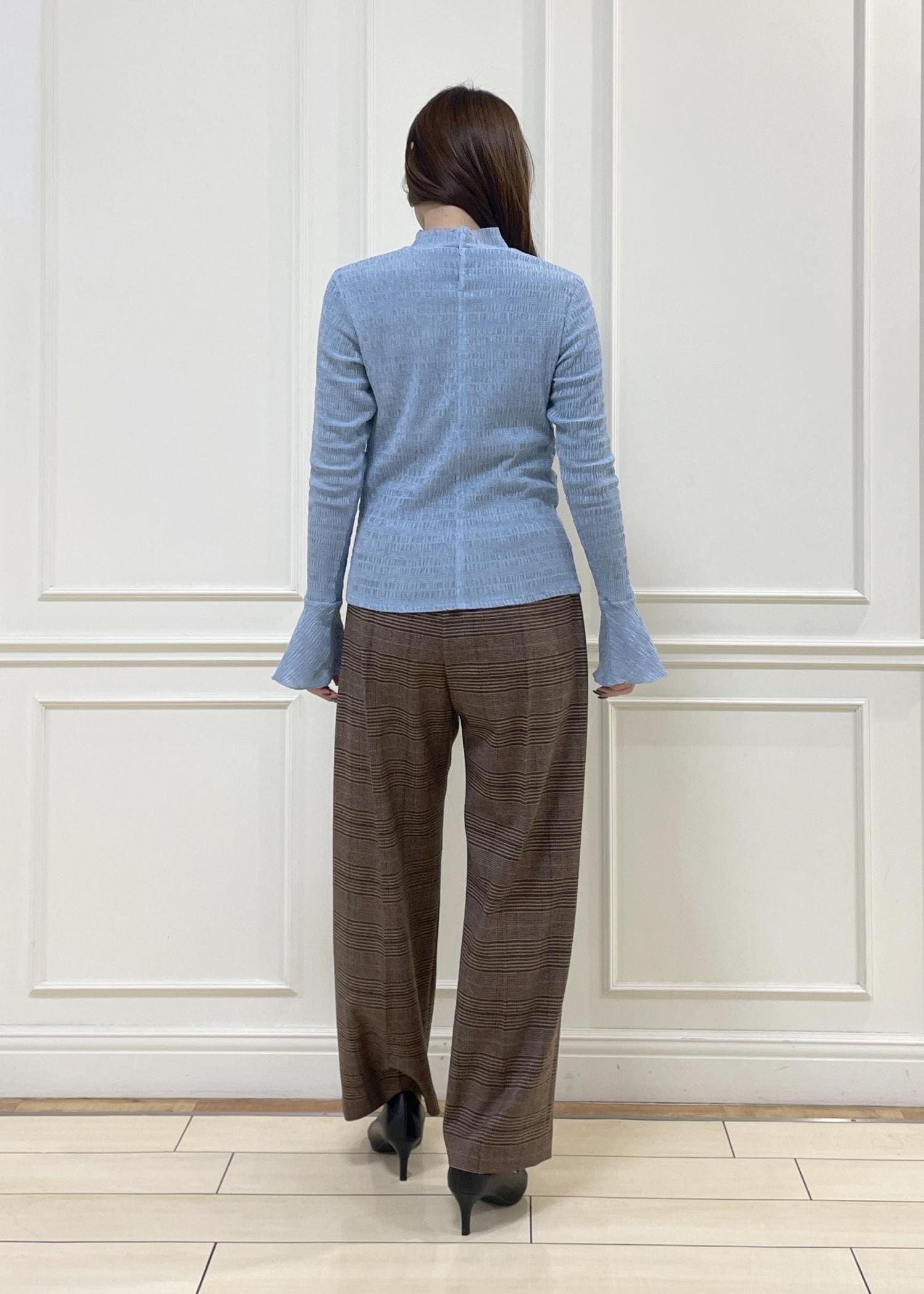 ROPÉボタニカルダイフレアスリーブハイネックカットソー/イージーケア・アンサンブル対応サックス / F¥15,400レビュー身長166cm