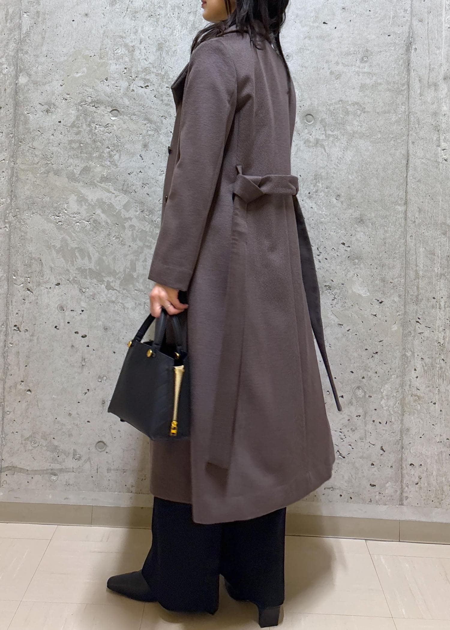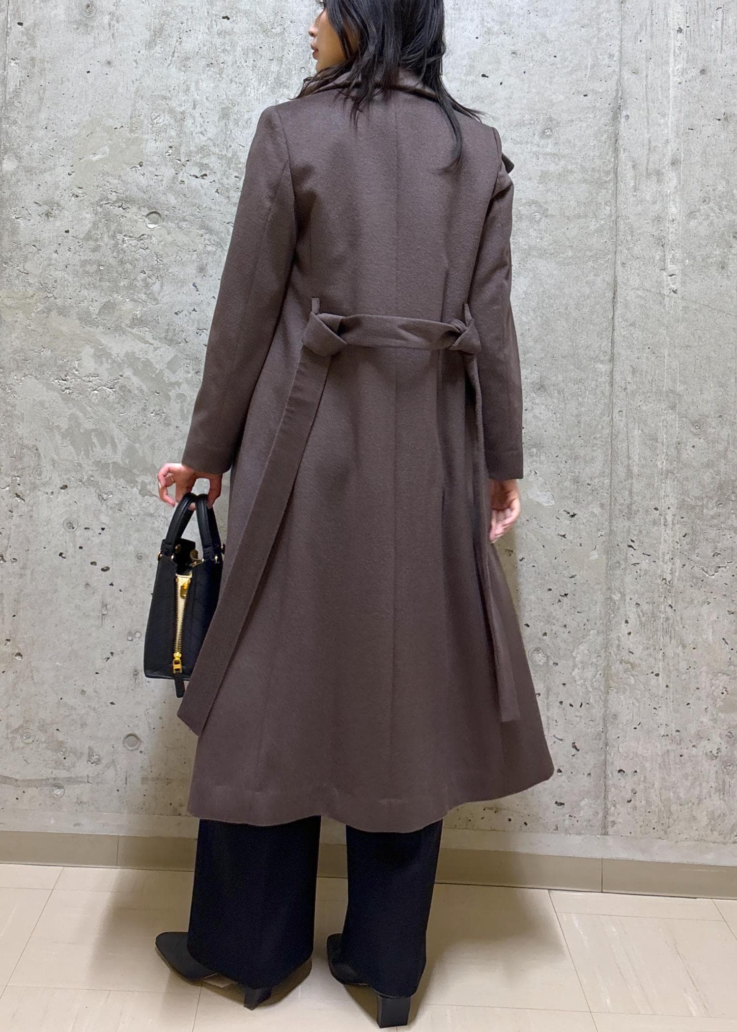 丈はヒールのブーツで床に付かないくらいのやや長め丈。