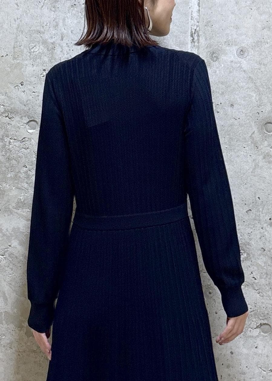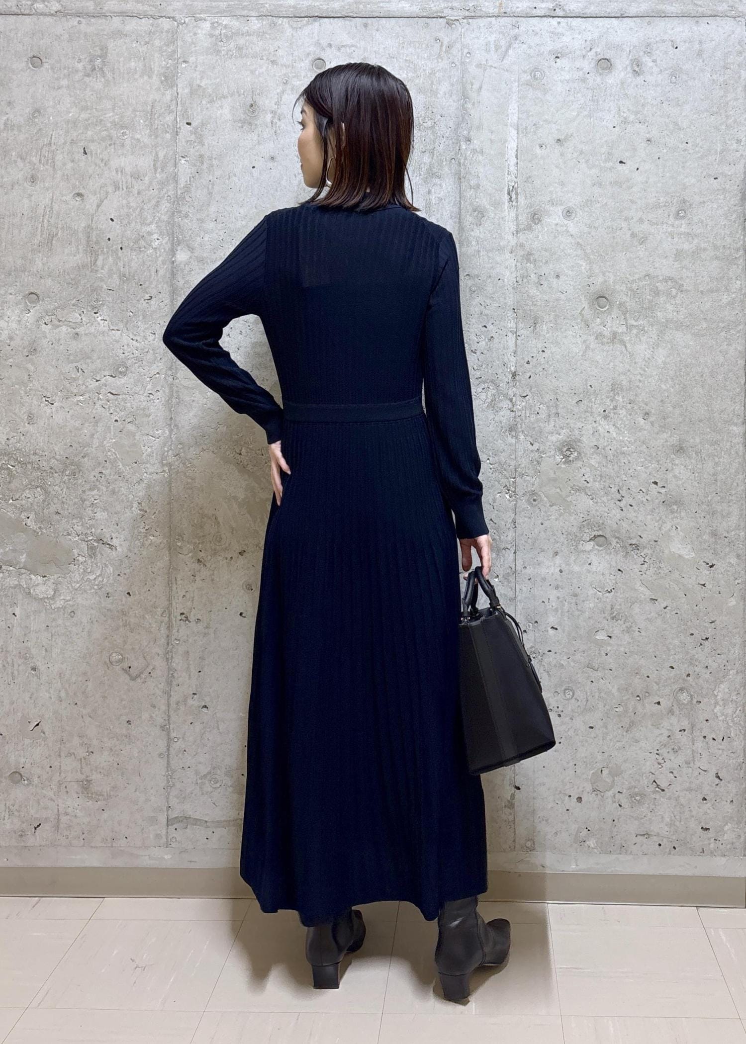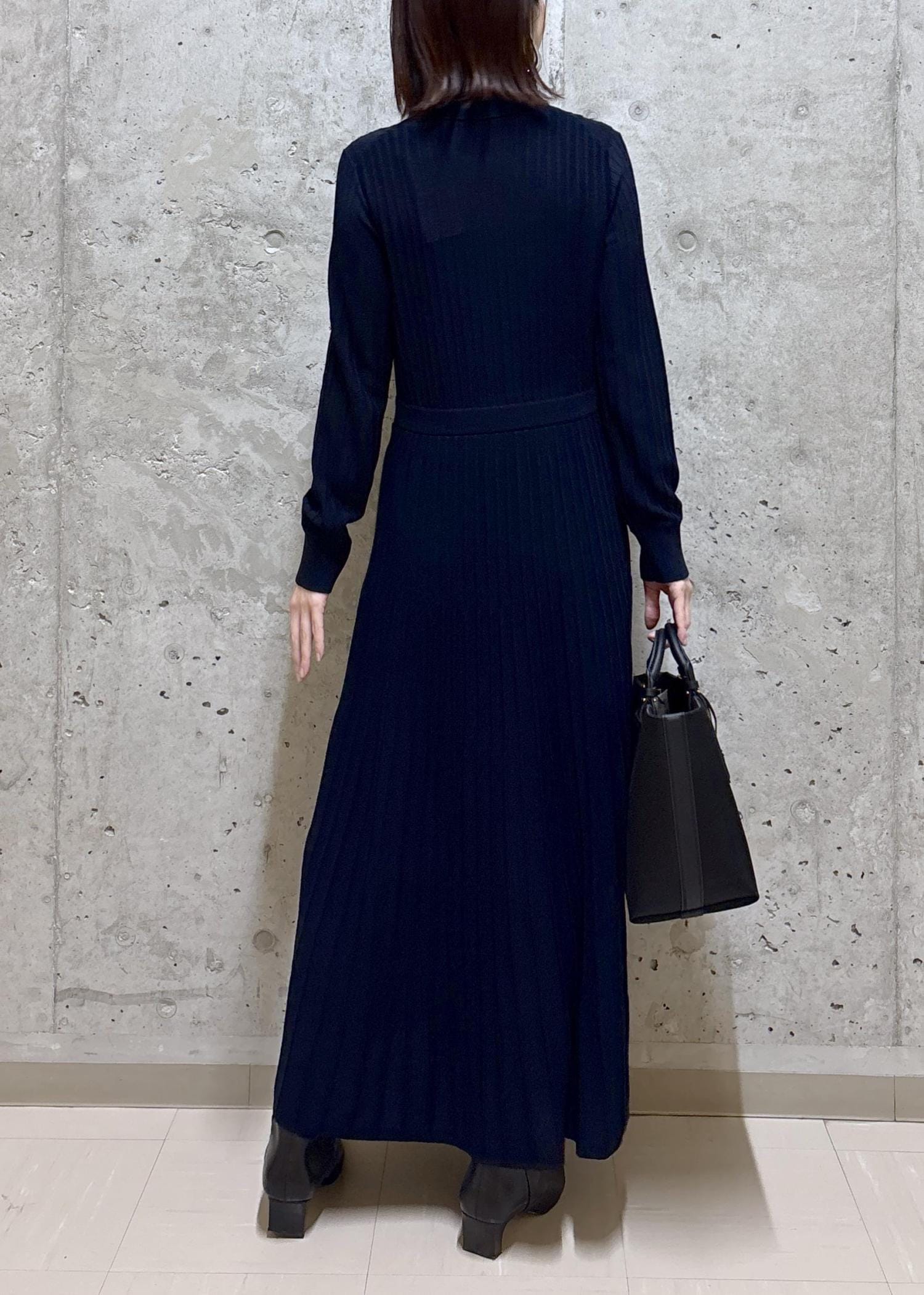 身幅はややゆとりがありますが、身体のラインに沿うシルエットでスッキリ見えるワンピースです。