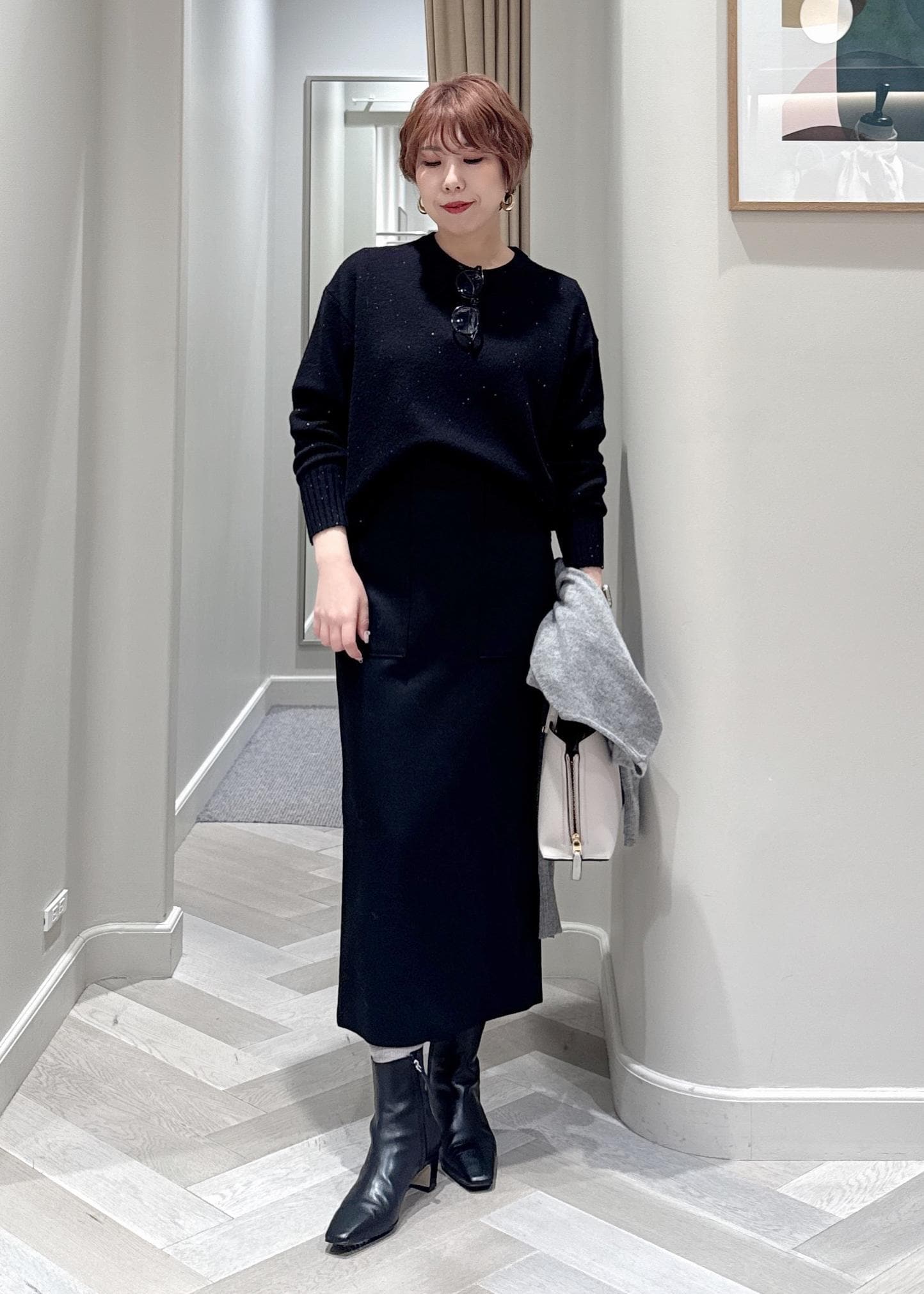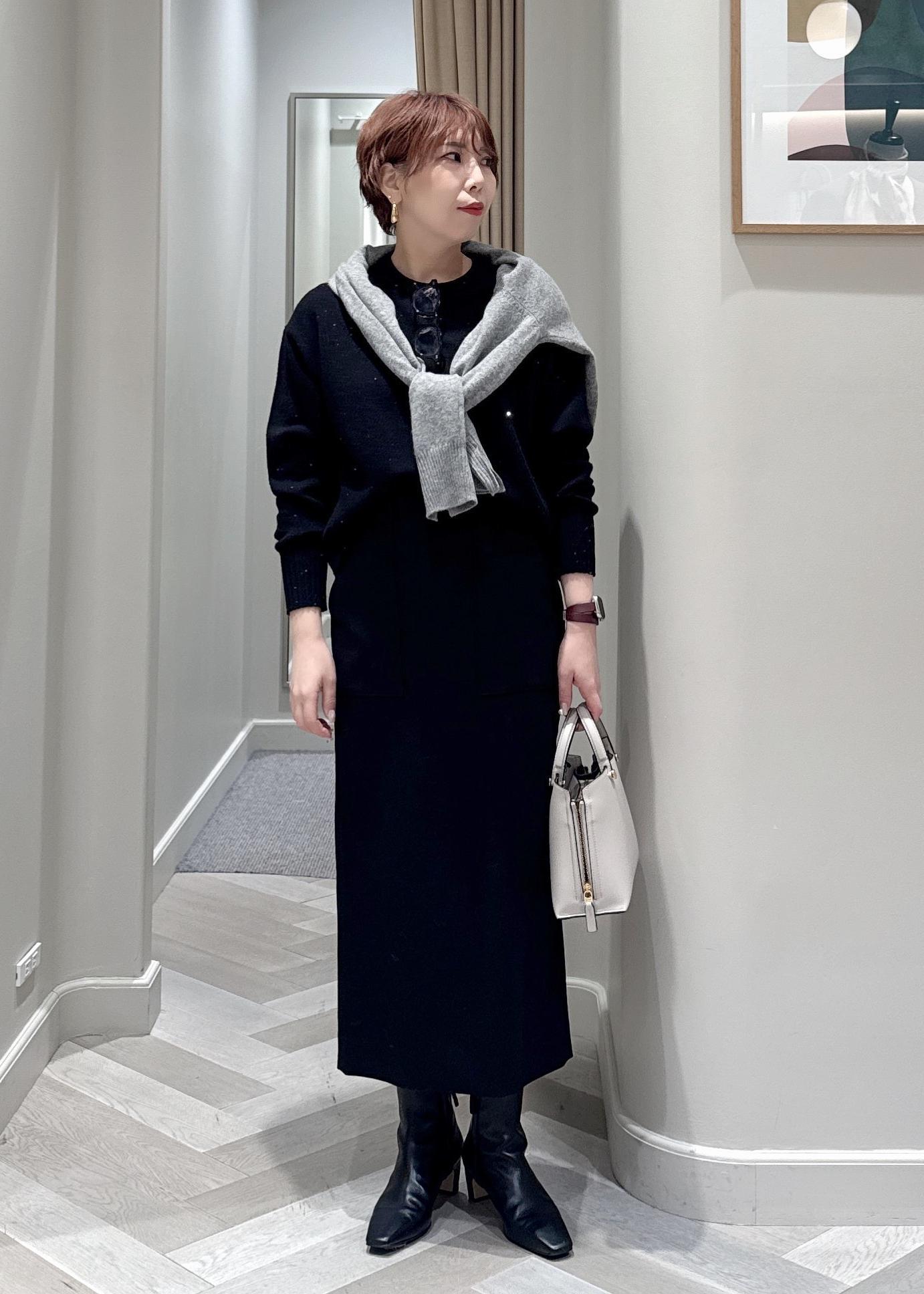 NEW!ROPÉスーパーファインメリノウールスパンコールニットブラック / F¥25,300レビュー控えめなスパンコールが可愛い1枚。