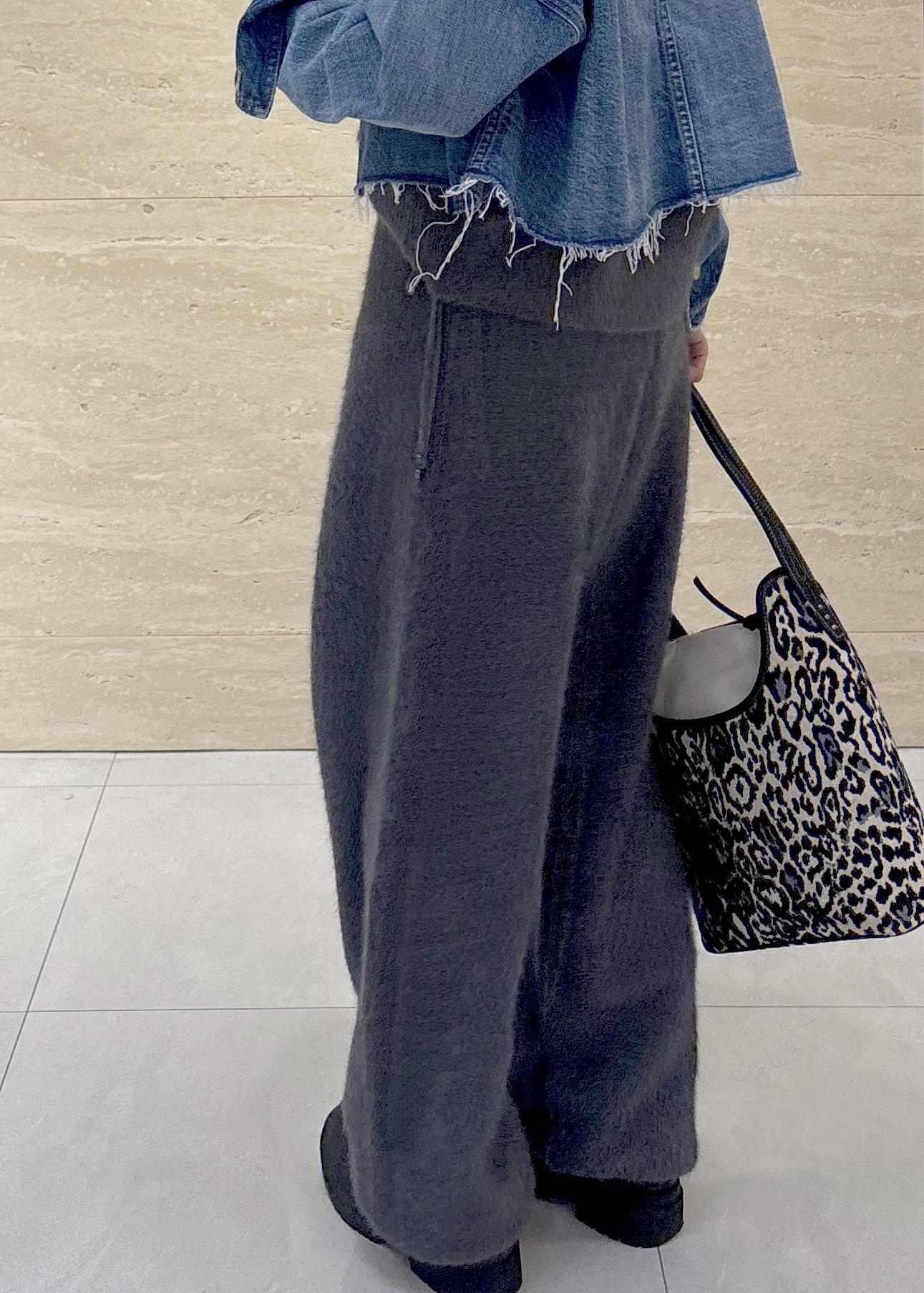 ウエストはゴムで全体的にゆったりめで、とても楽に履けます。ほどよく厚みのあるニットなので、インナーや身体のラインも出なかったです。
