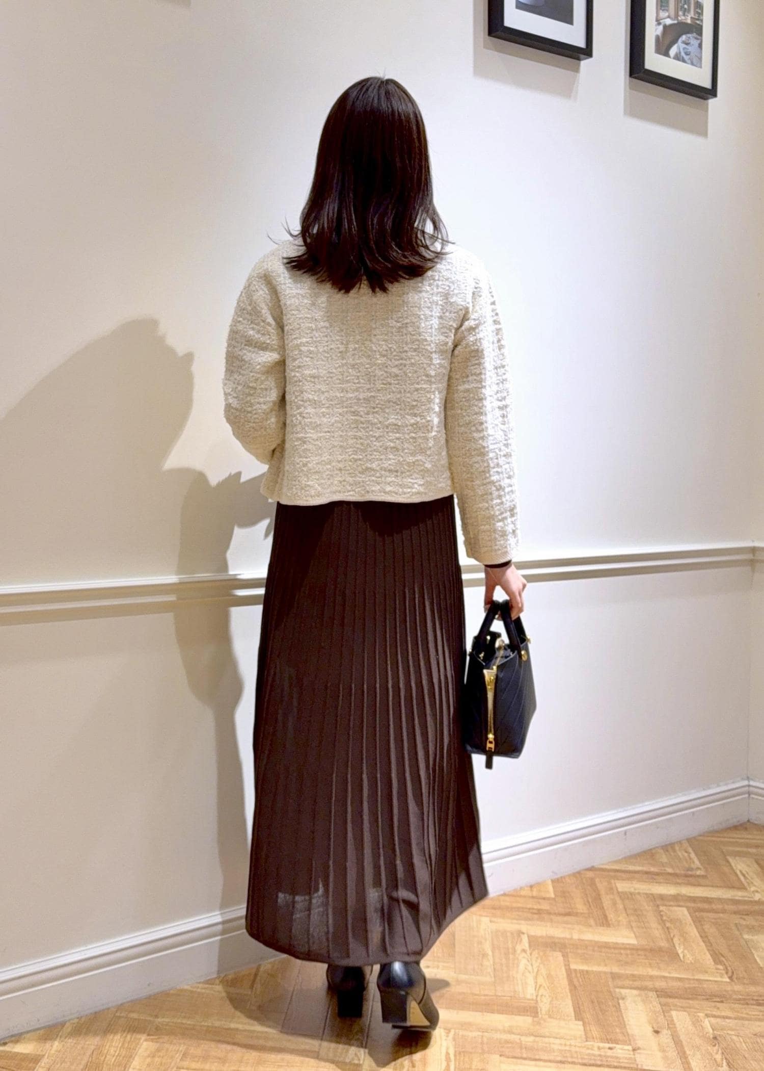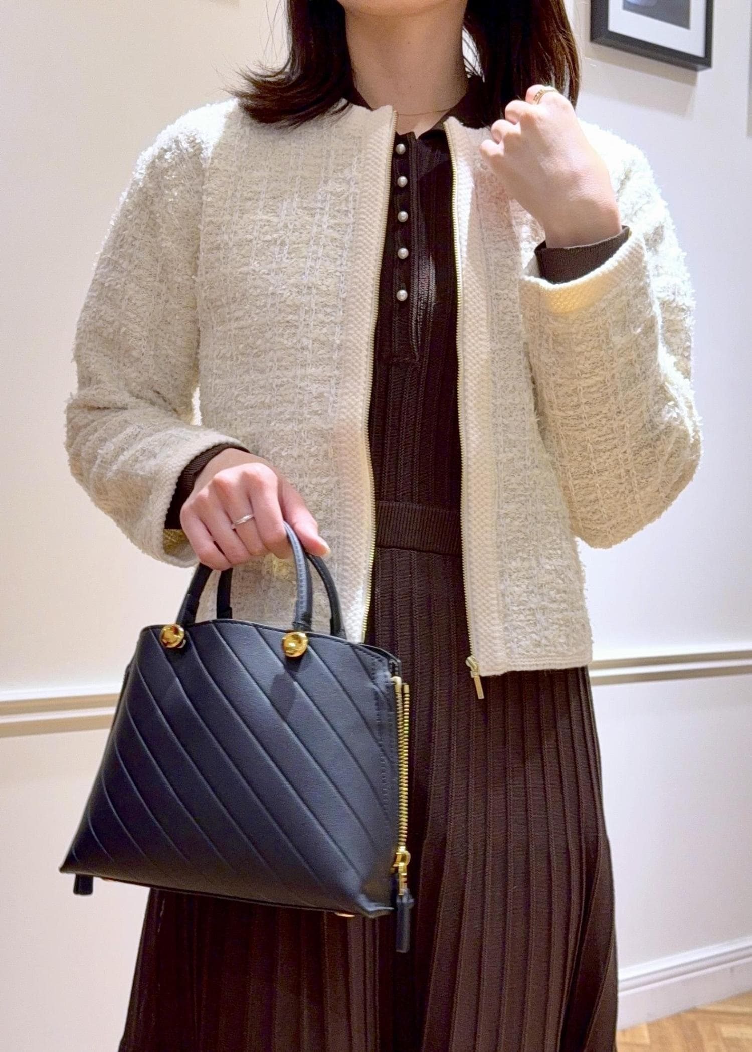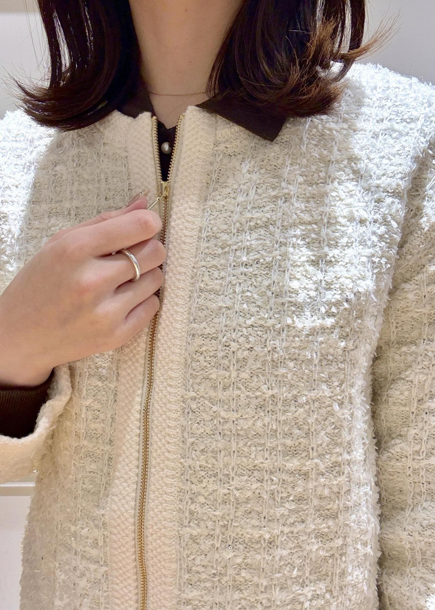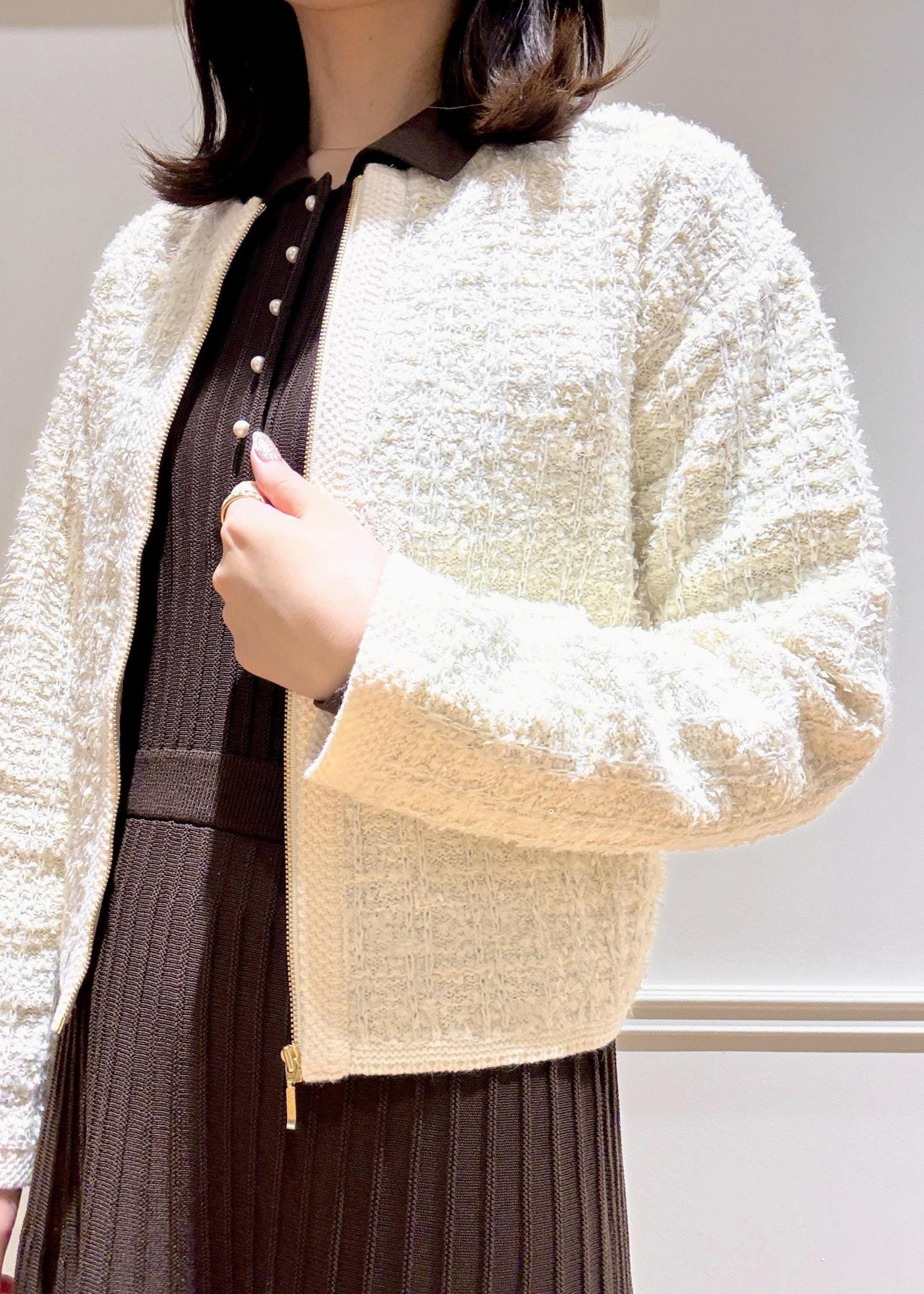 ROPÉツイードZIPノーカラーカーディガン/イージーケアキナリ / F¥25,300レビュー身長165cmでFサイズを着用しています。