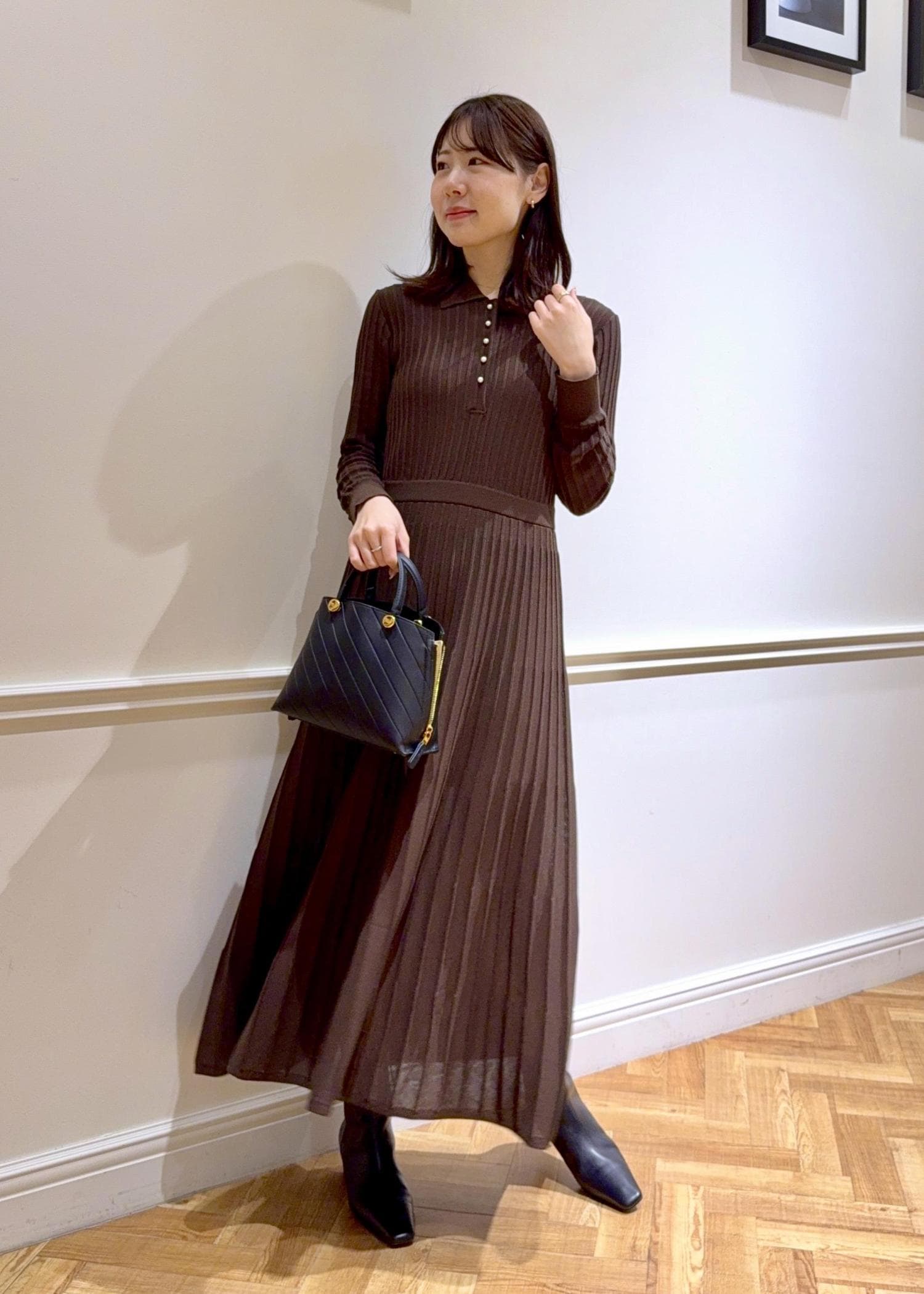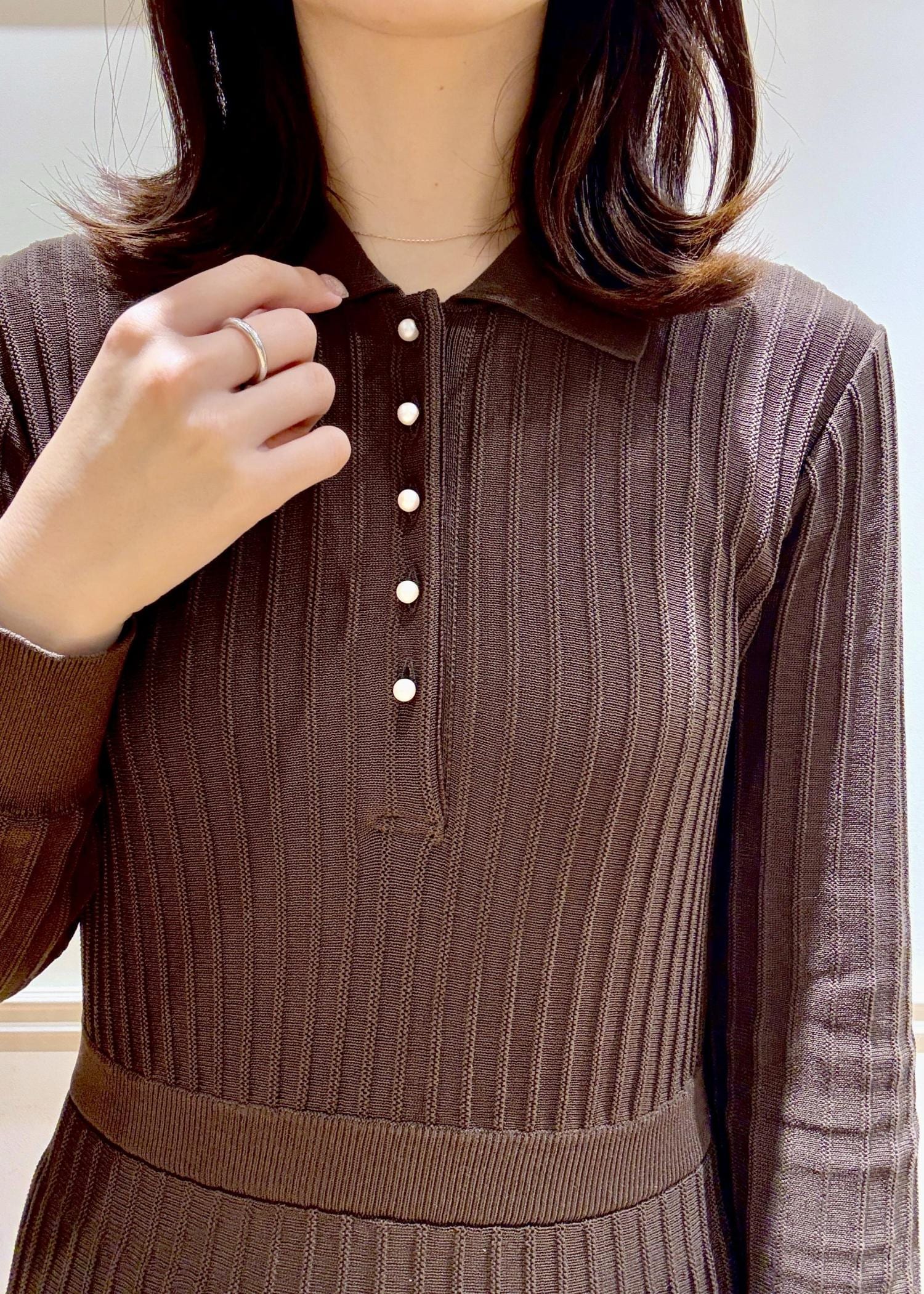 ROPÉパールボタンポロニットワンピース/イージーケアダークブラウン系 / F¥35,200レビュー身長165cmでFサイズを着用しています。