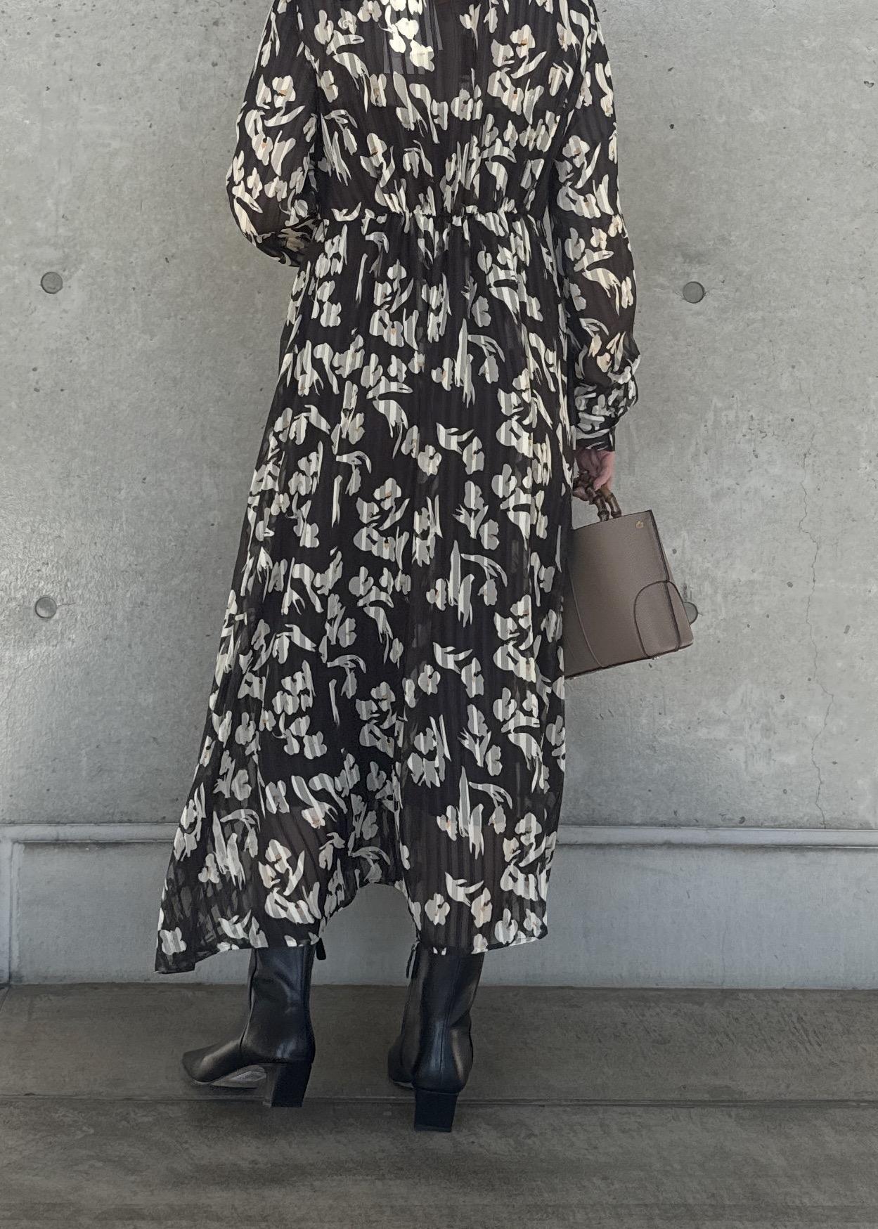 ROPÉフラワープリントタックワンピース/イージーケアダークブラウン系 / F¥47,300レビュー161センチ 通常38サイズ着用