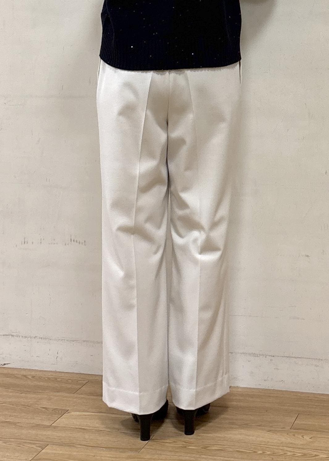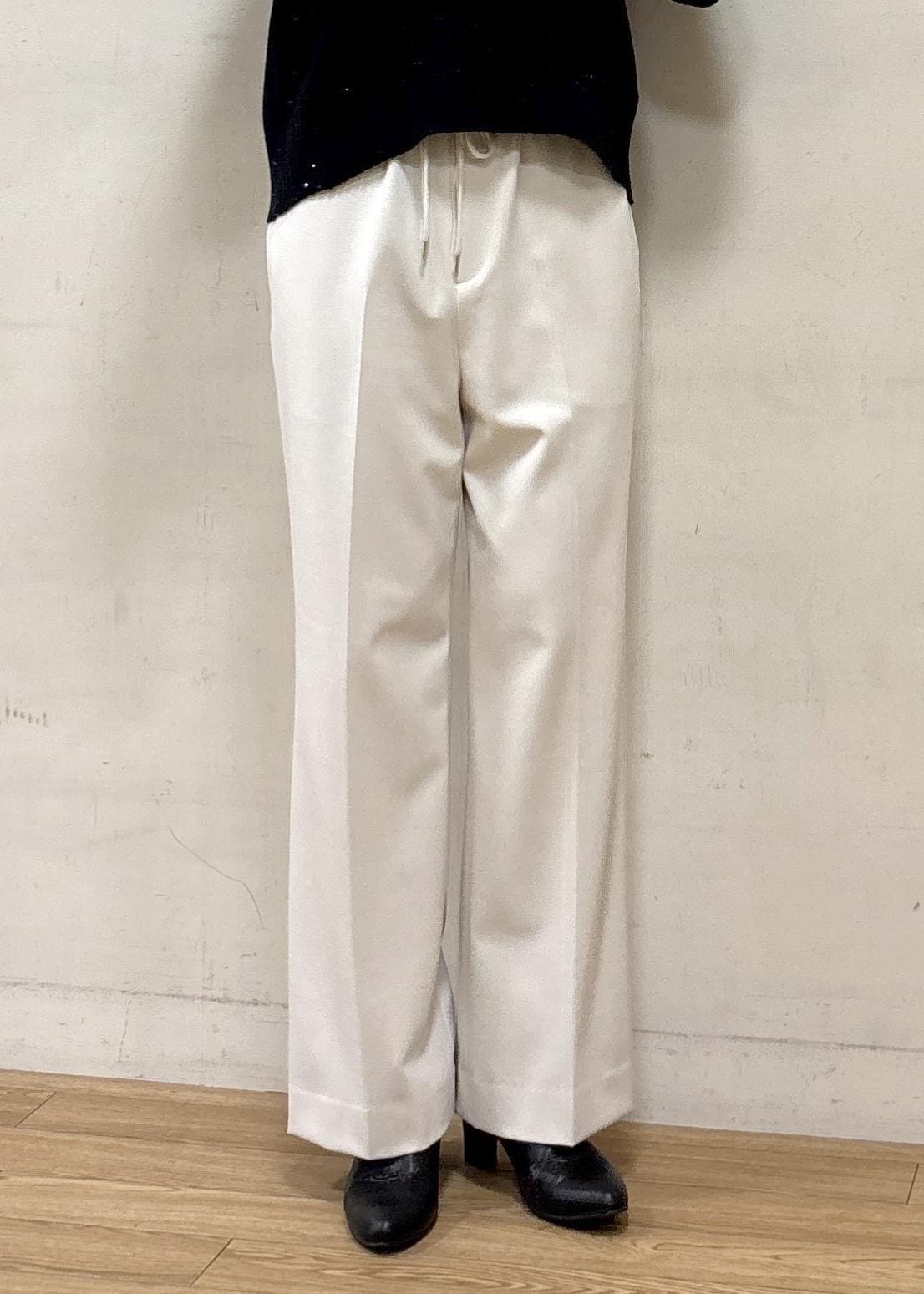 ジャージー素材のような柔らかさがあり裏起毛で、これからの季節、暖かくお召しいただけるきれいめパンツです。 -