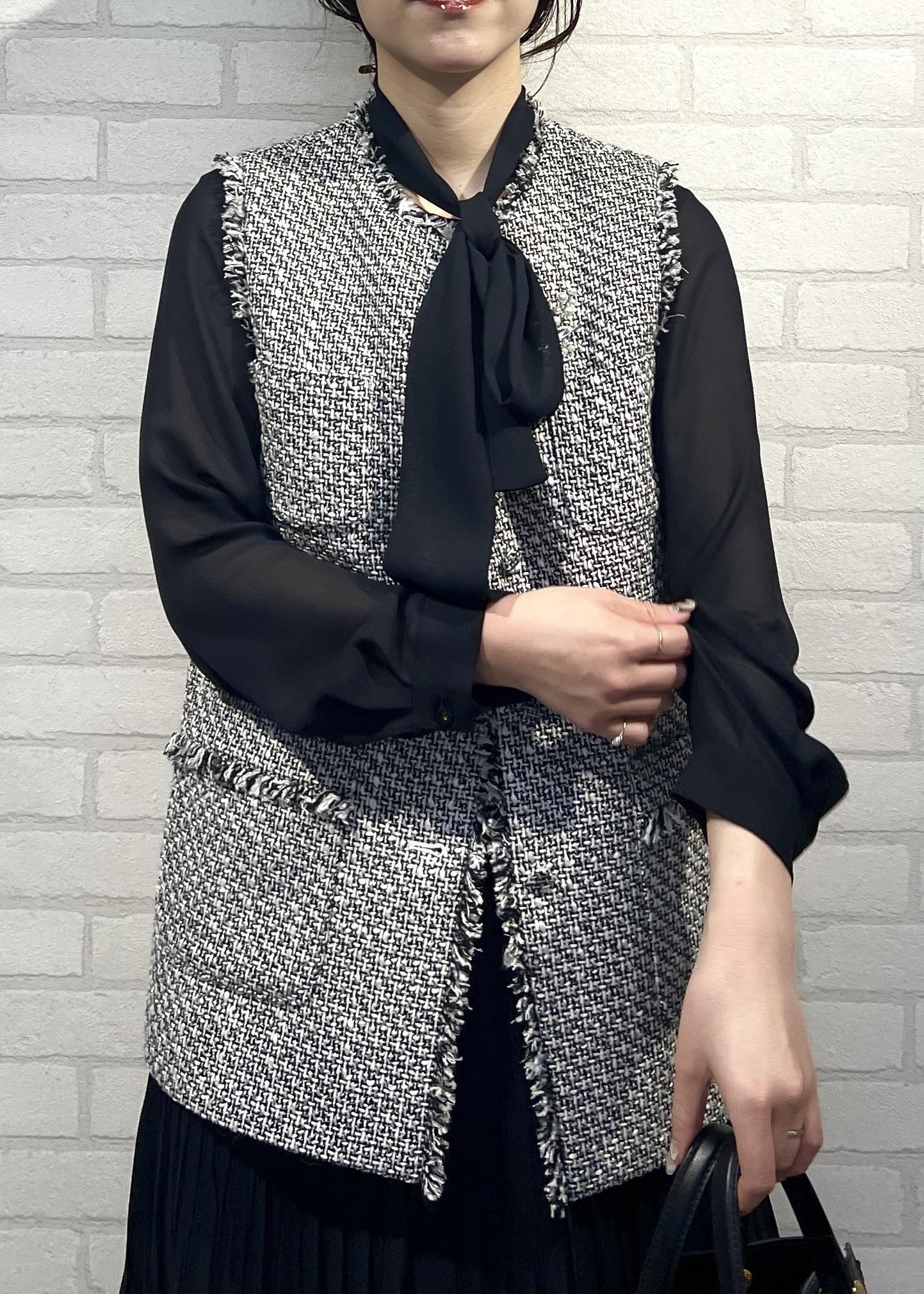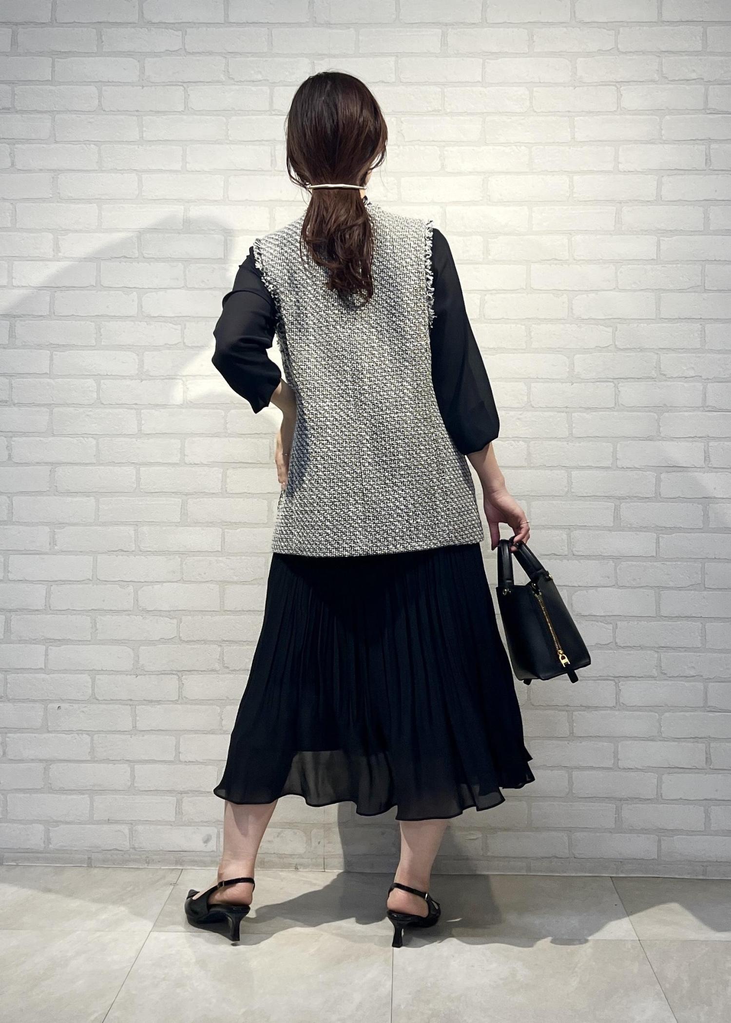 ROPÉミックスツイードジレベスト/26SSブラック系 / F¥39,600レビューお尻まですっぽり隠れる着丈のミックスツイードジレ。