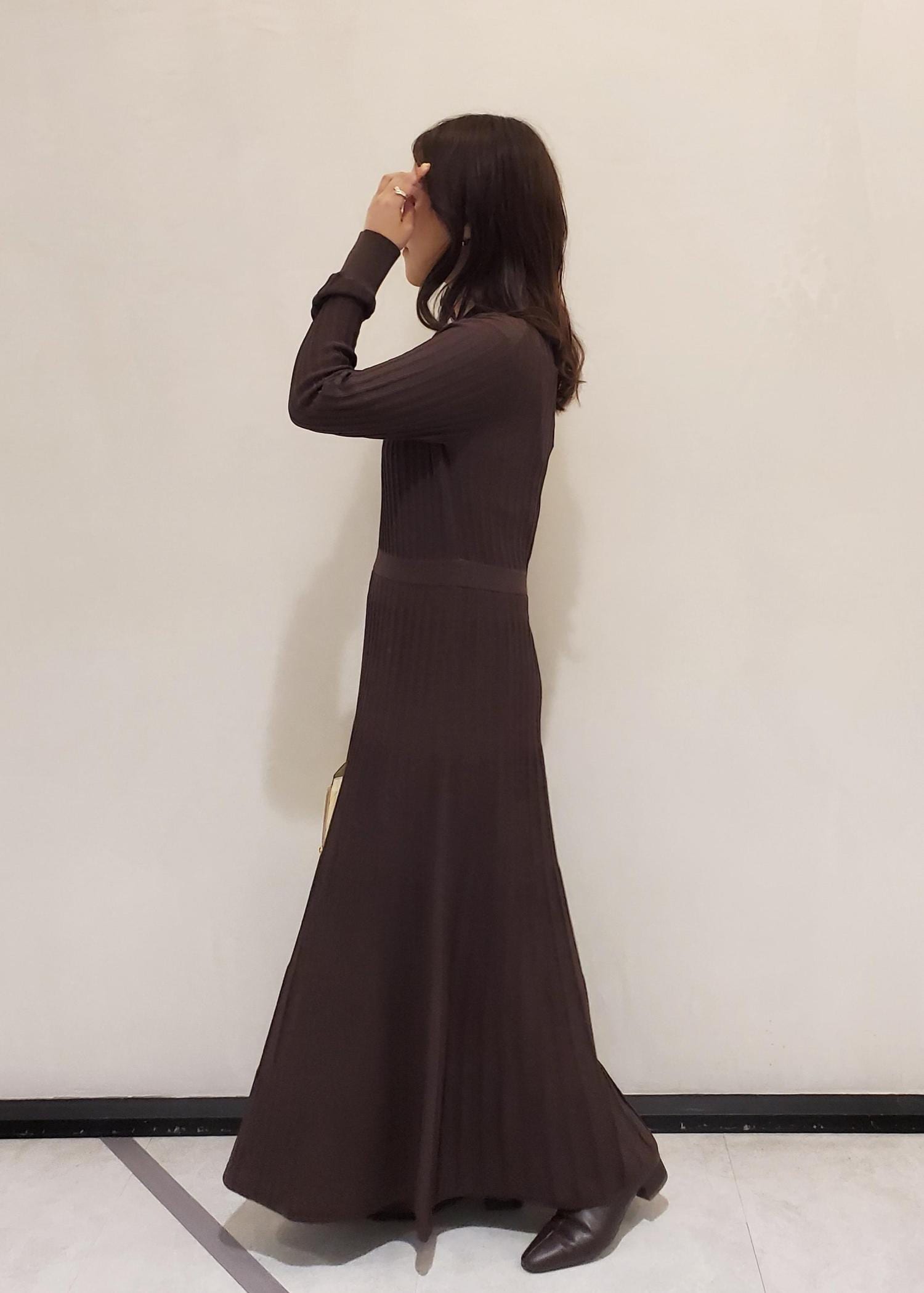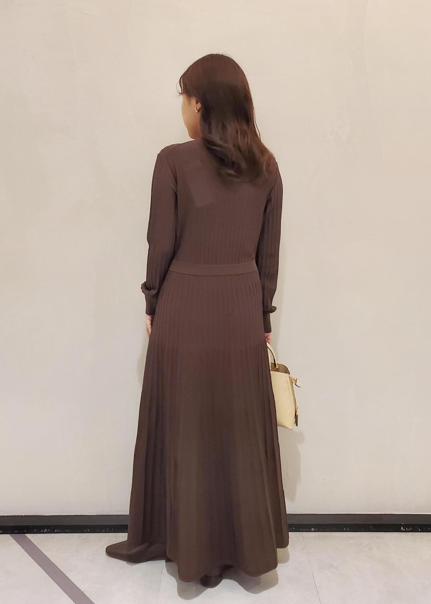 ROPÉパールボタンポロニットワンピース/イージーケアダークブラウン系 / F¥35,200レビューニット素材ながらもお尻や腰回りのラインを拾いにくく、綺麗なAラインシルエットを出してくれます♪