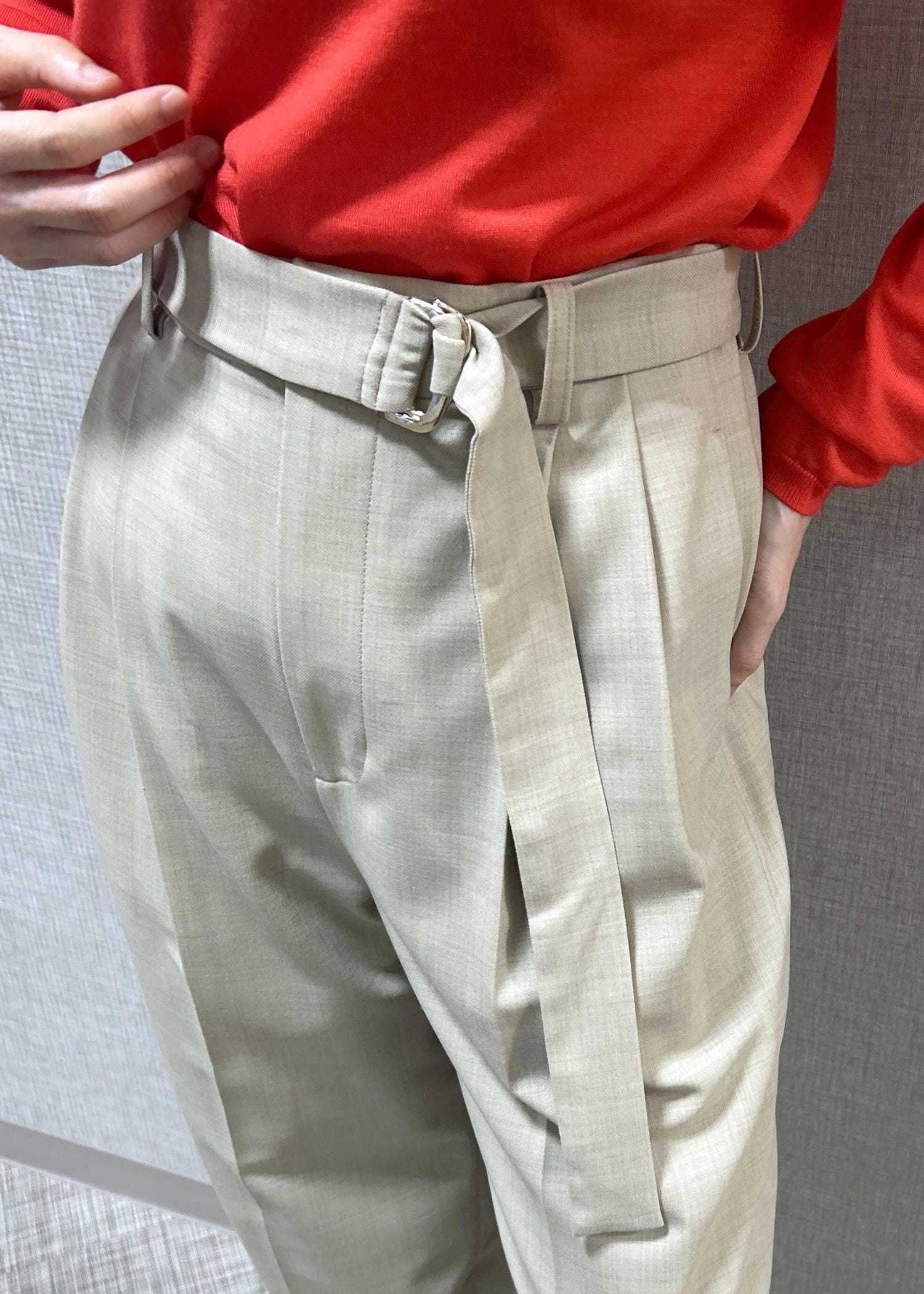 - ウール混ツイルベルト付きタックワイドパンツ