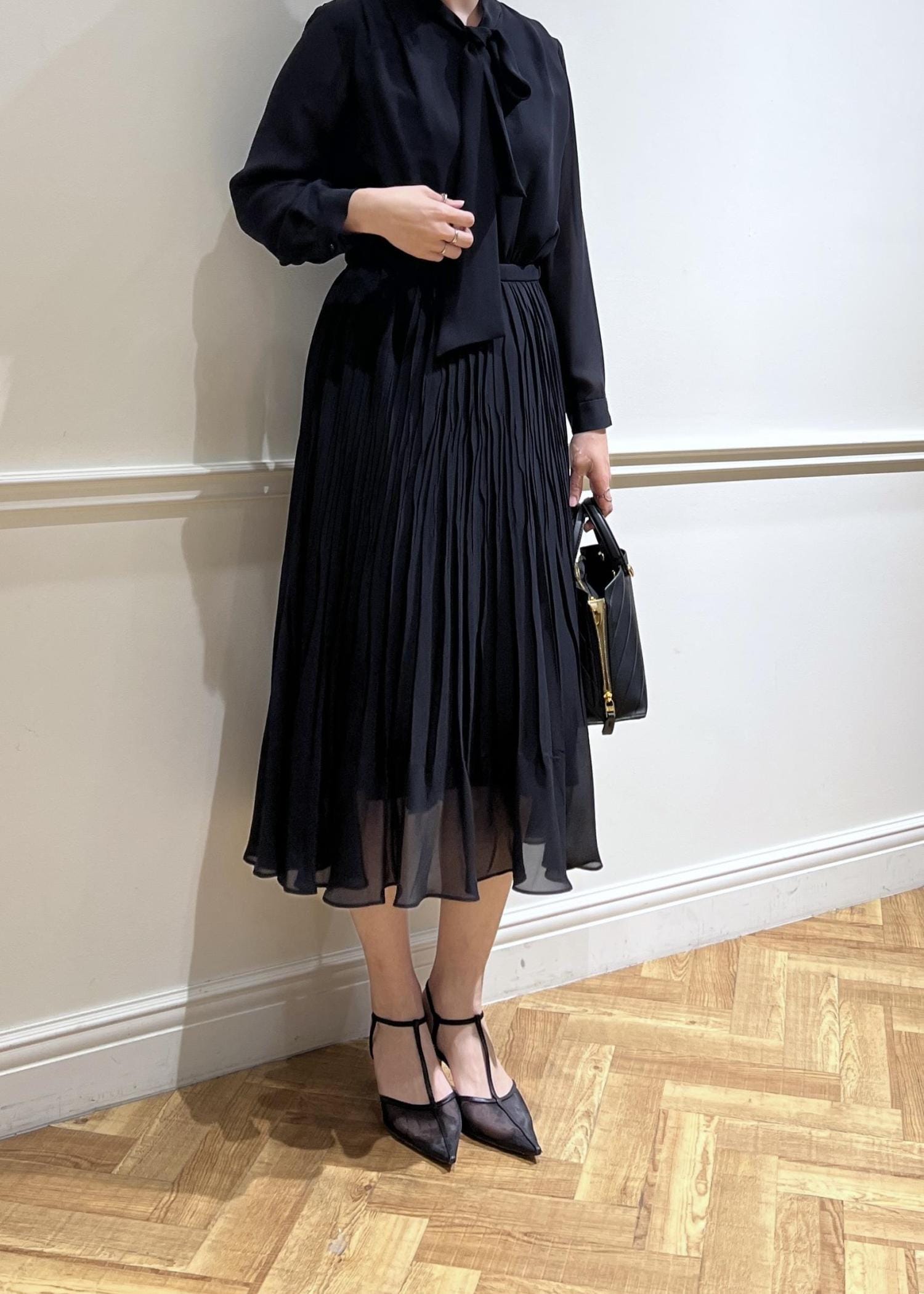 ROPÉジョーゼットシフォンプリーツワンピース/26SSネイビー / 38¥49,500レビュー165cm/38〜40サイズ