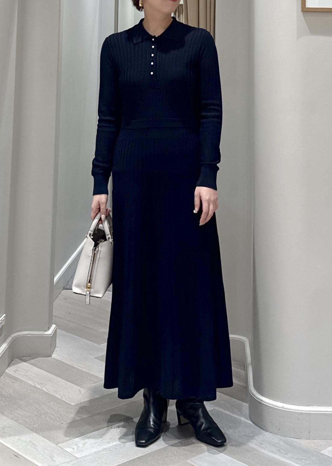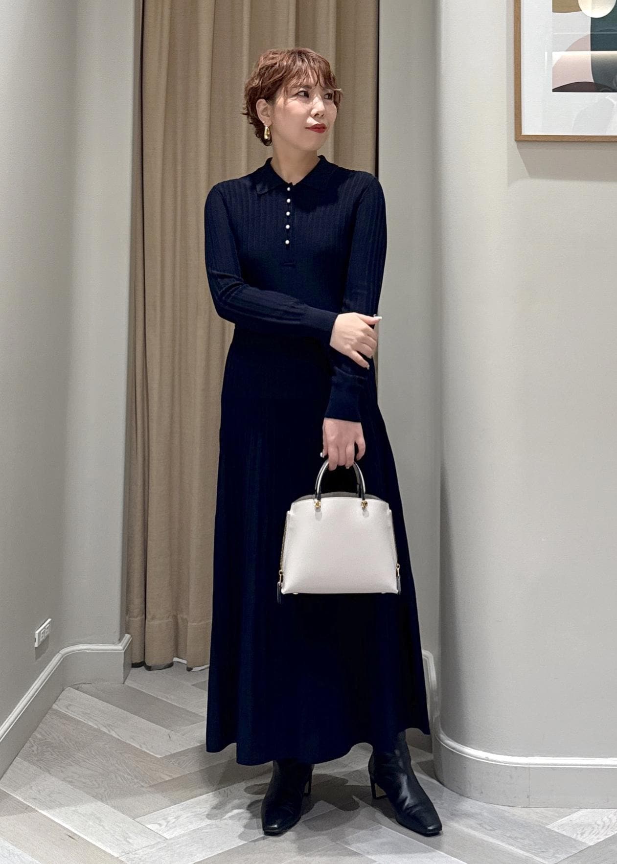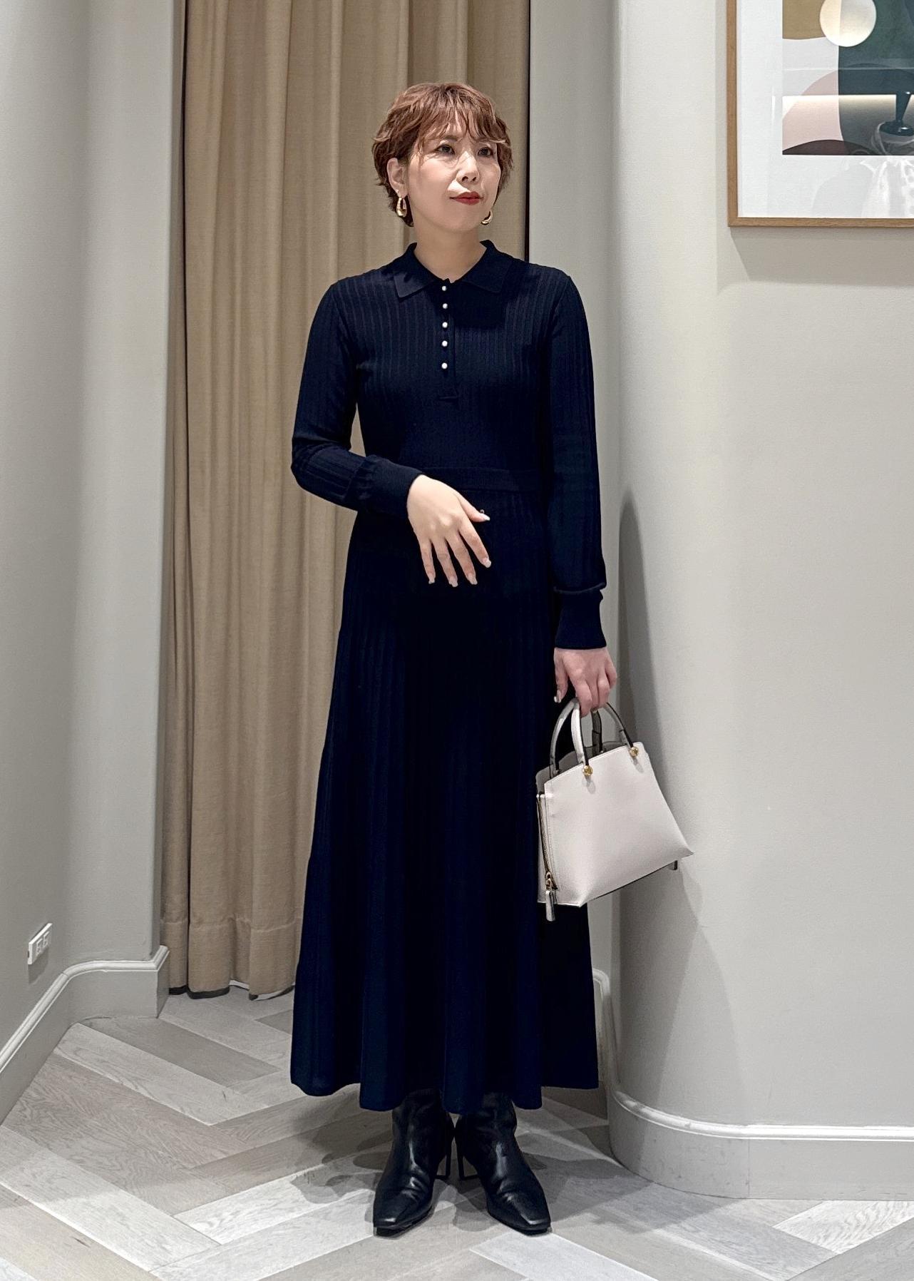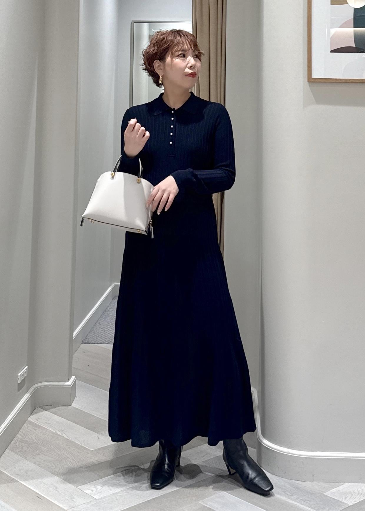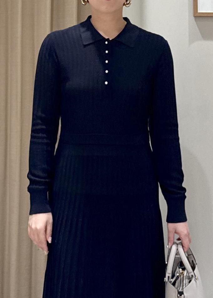パールボタンポロニットワンピース/イージーケア