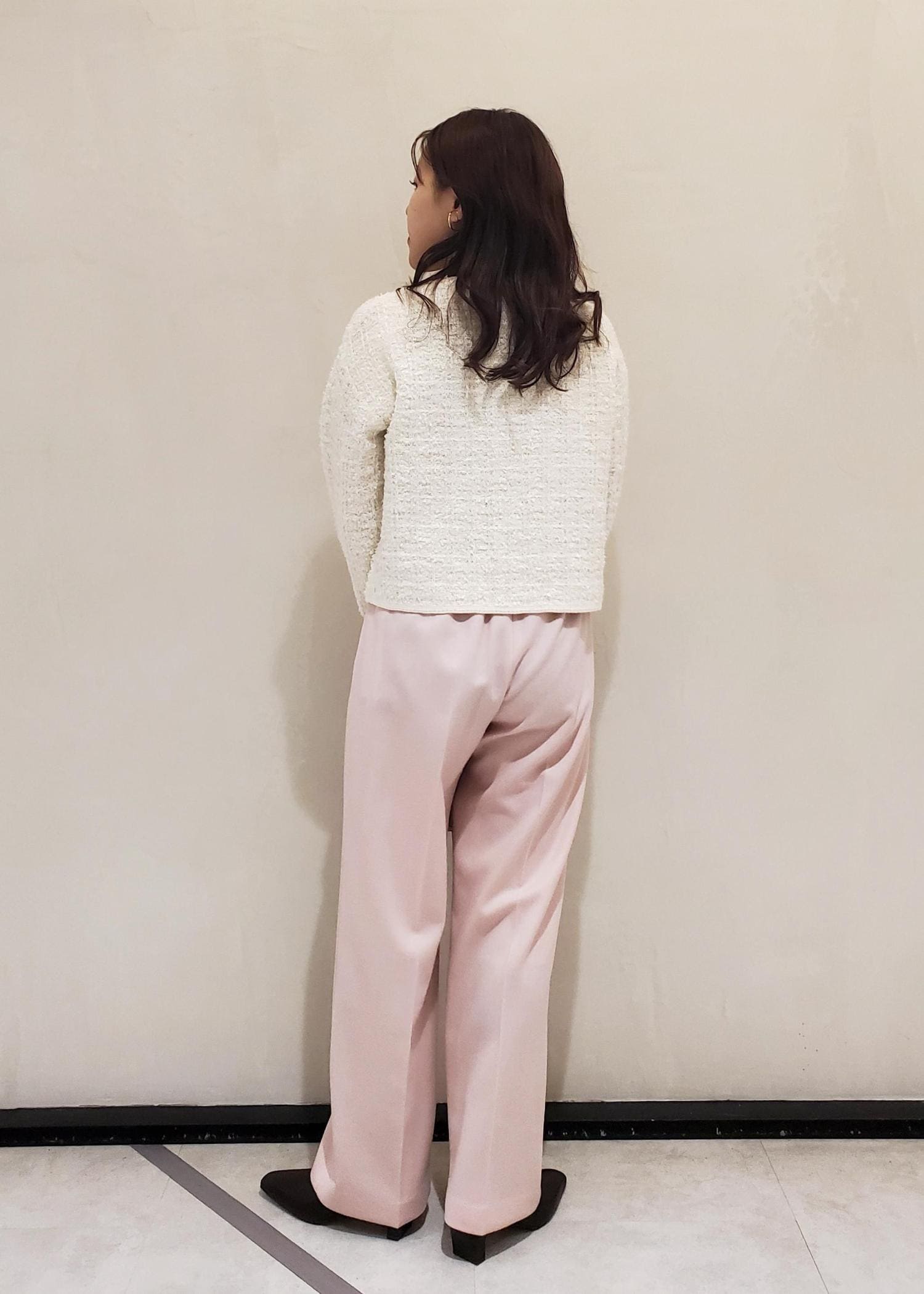 パンツは、ツイードブルゾンと
