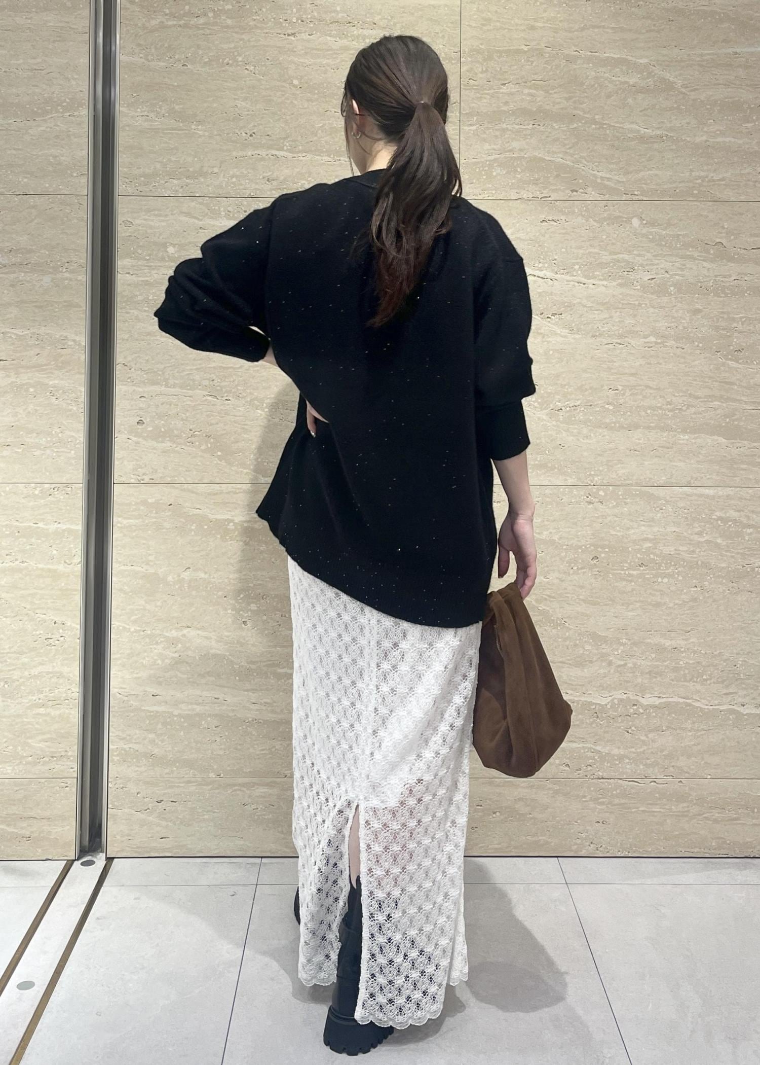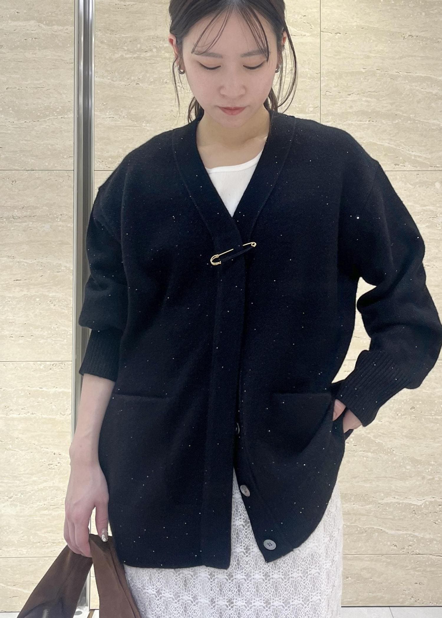 SALON adam et ropéStarry sky Knit スパンコールVネックカーディガンブラック / F¥23,100レビュー着丈はヒップが隠れるほどです。