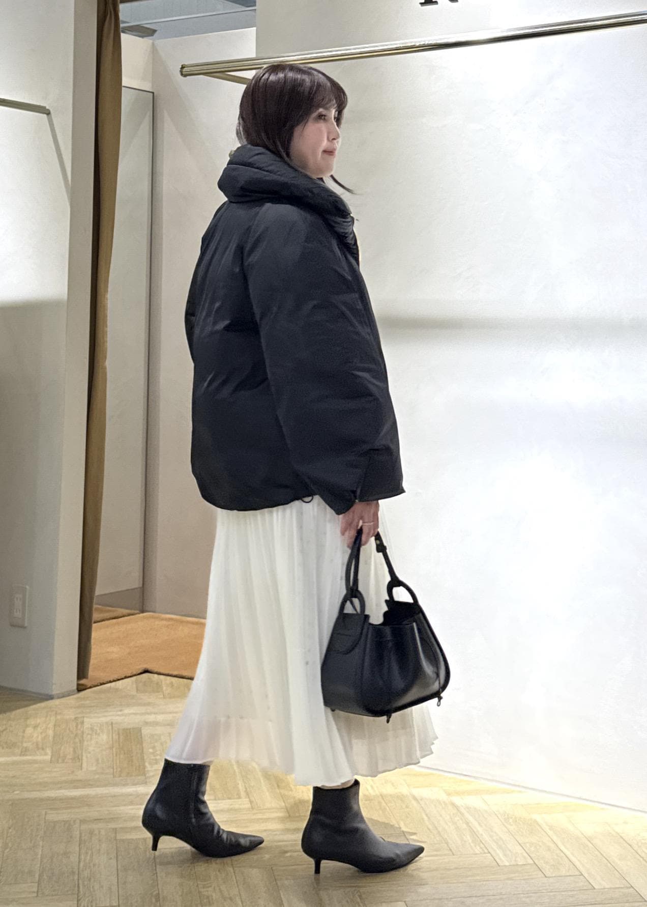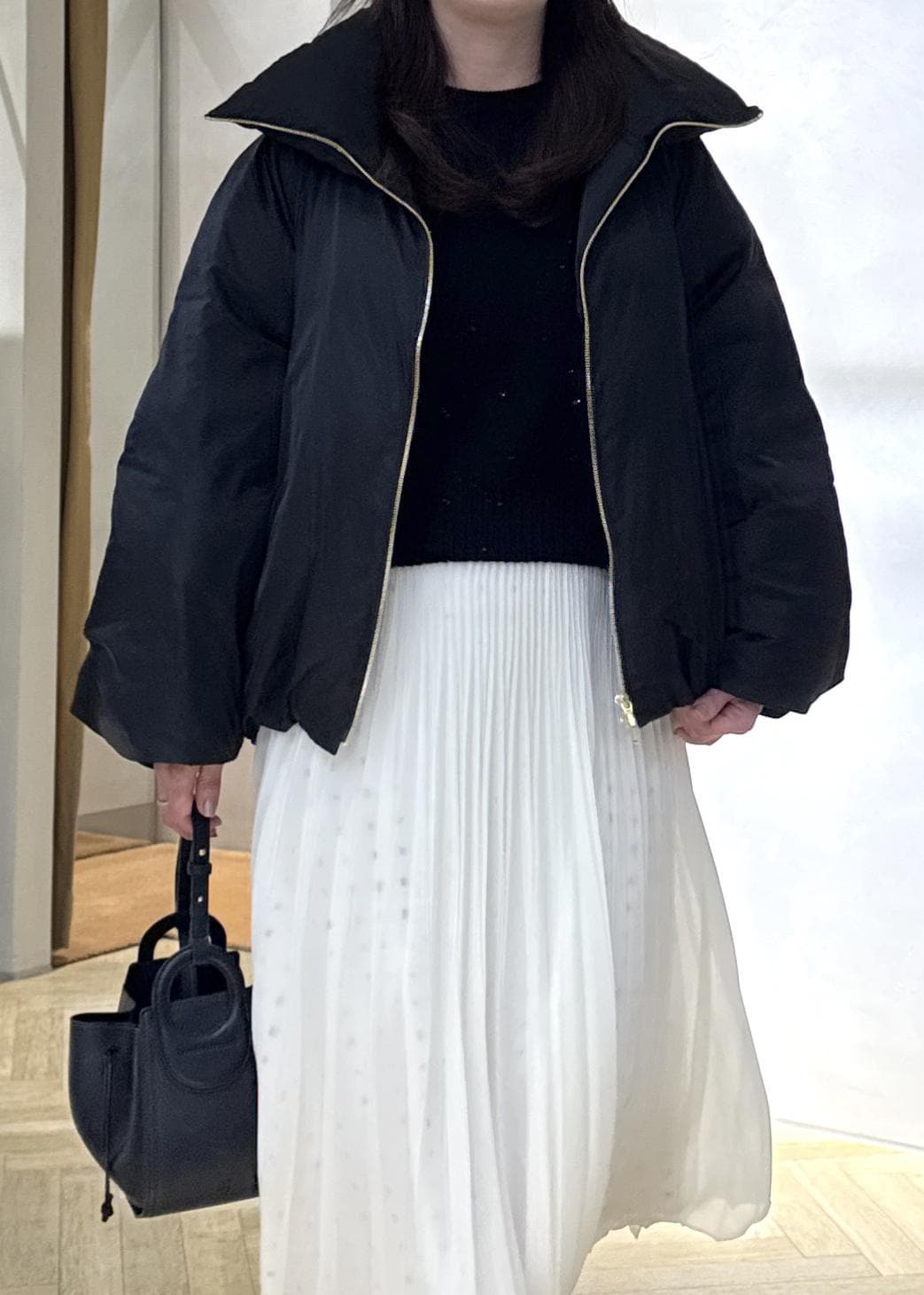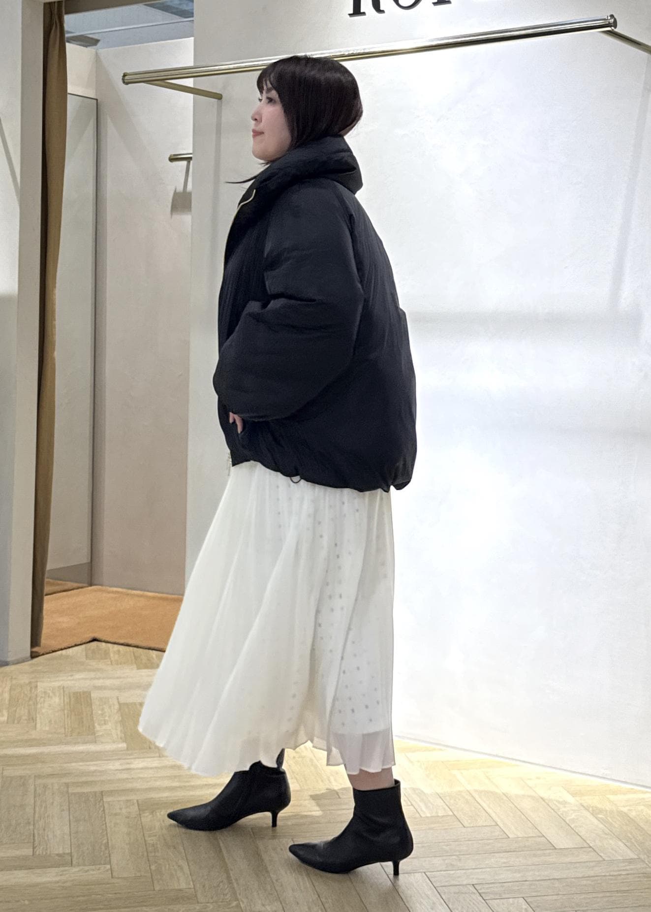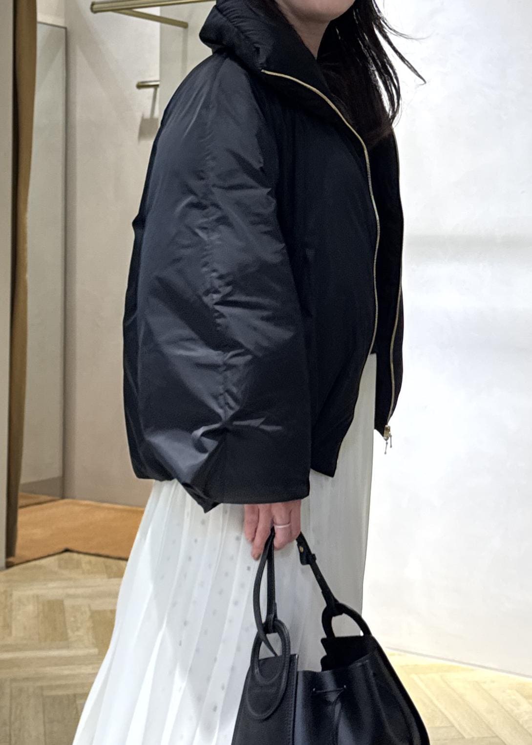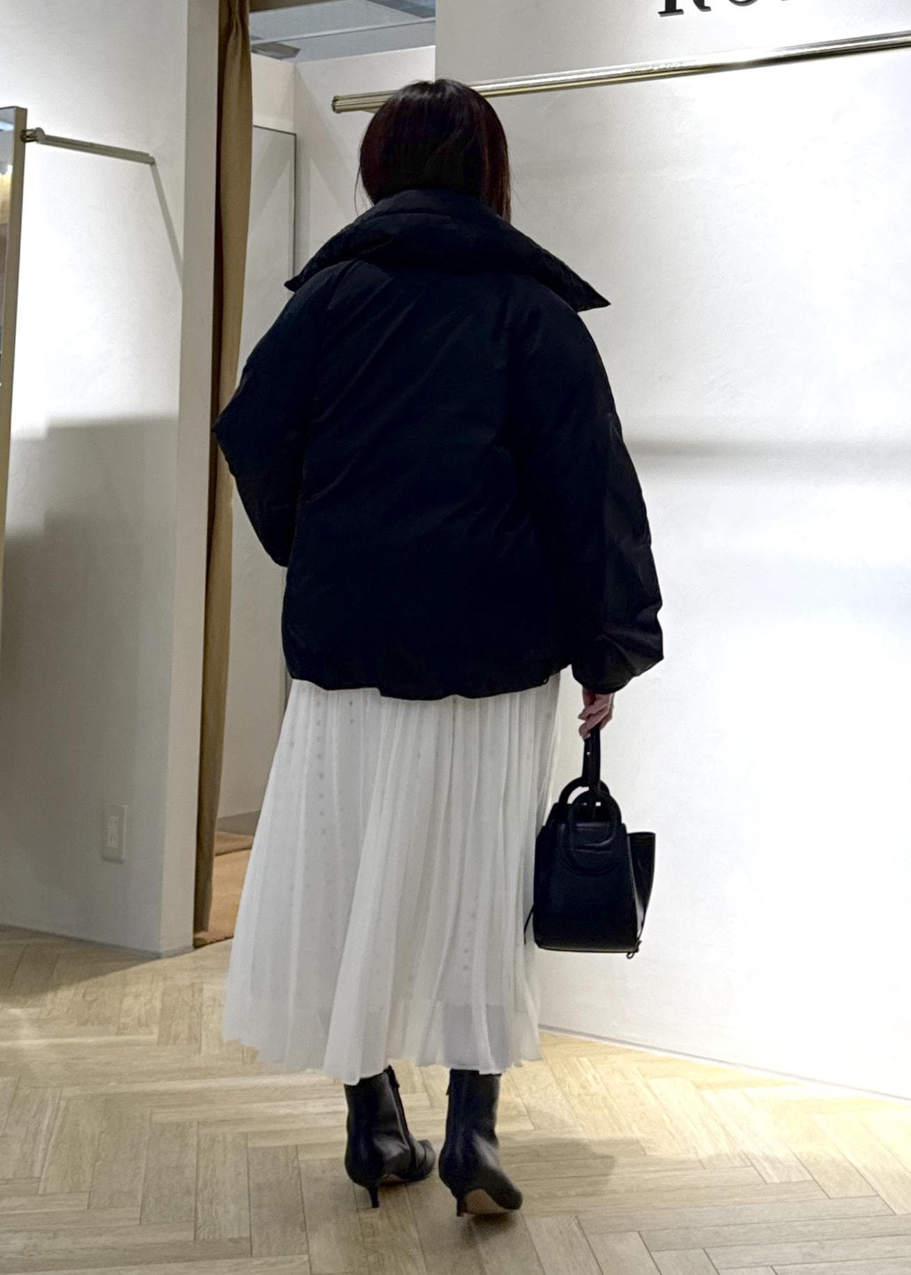 NEW!ROPÉハイネックジップショート丈ダウンコート/イージーケアブラック / F¥53,900レビュー羽織るまでは広がるかな?オーバーサイズかな?と思いましたが程よいゆとり感はありつつほんのり身頃はくびれのライン。また着丈に前後差があるのでスッキリ見えのダウンです。