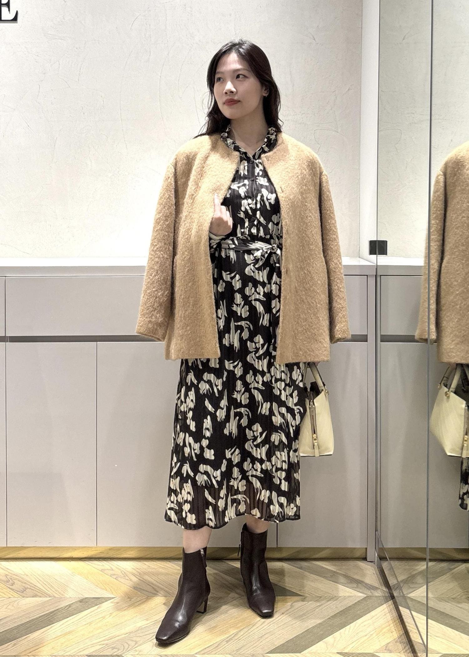 全体的に程よくゆとりのあるサイズ。ふっくら立体感がありつつ、着丈は腰にかかるぐらいの短めでコンパクトな印象です。