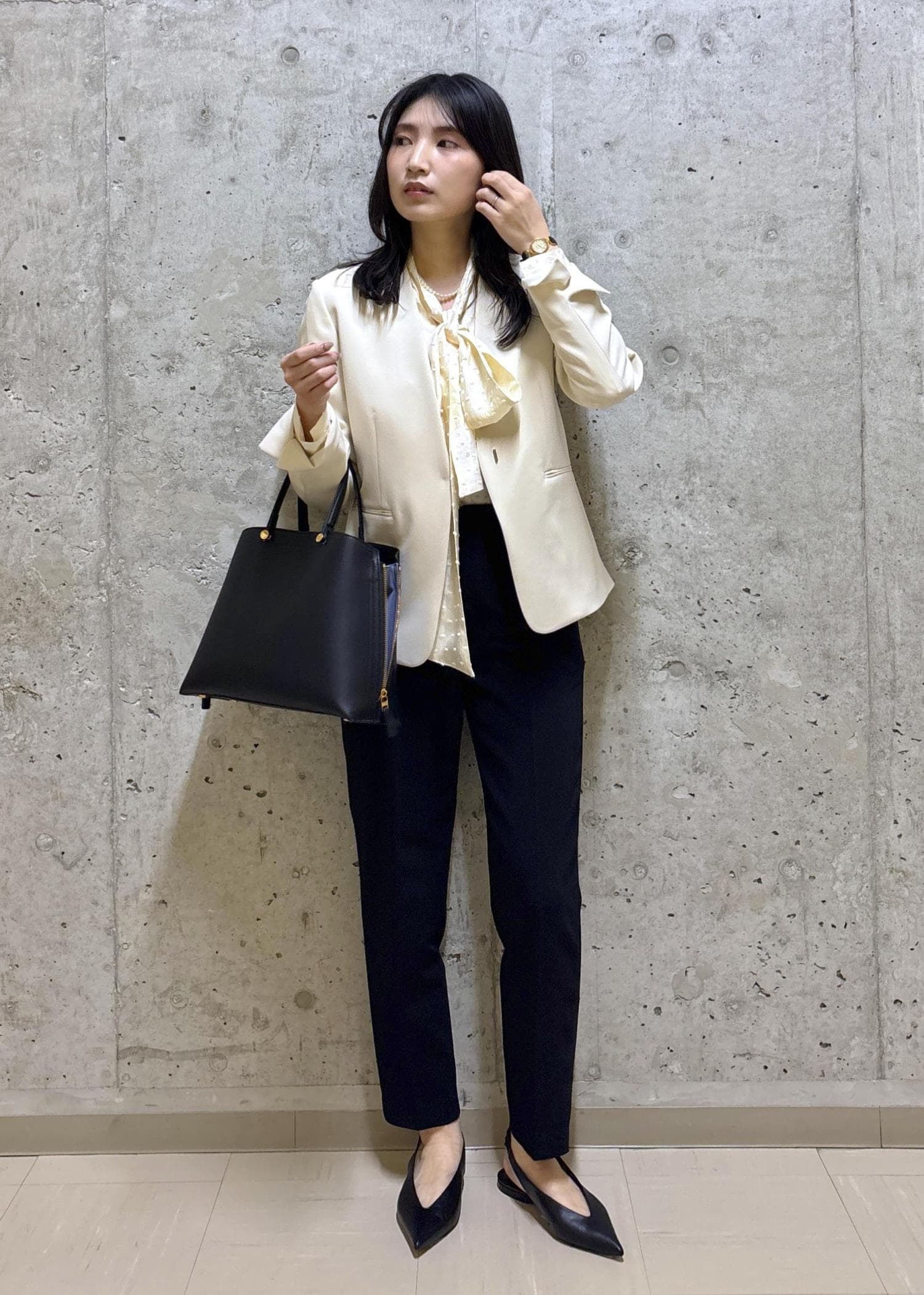 ブラウンジャケットで黒よりも柔らかく、きちんと感はそのまま。