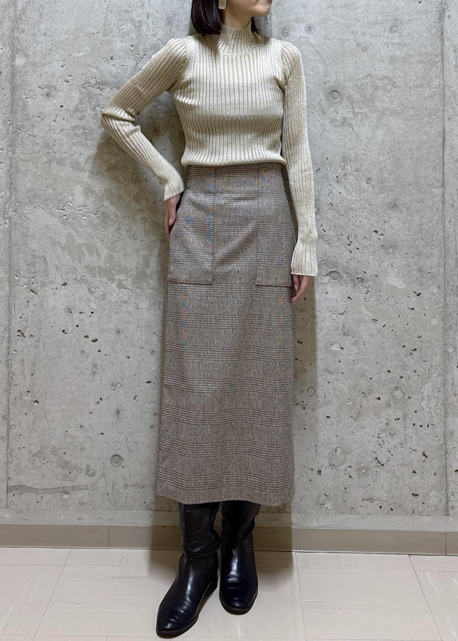 [美人スカート]ウールレーヨンポケット付きタイトスカート(ヘリンボーン/グレンチェック)/セットアップ対応