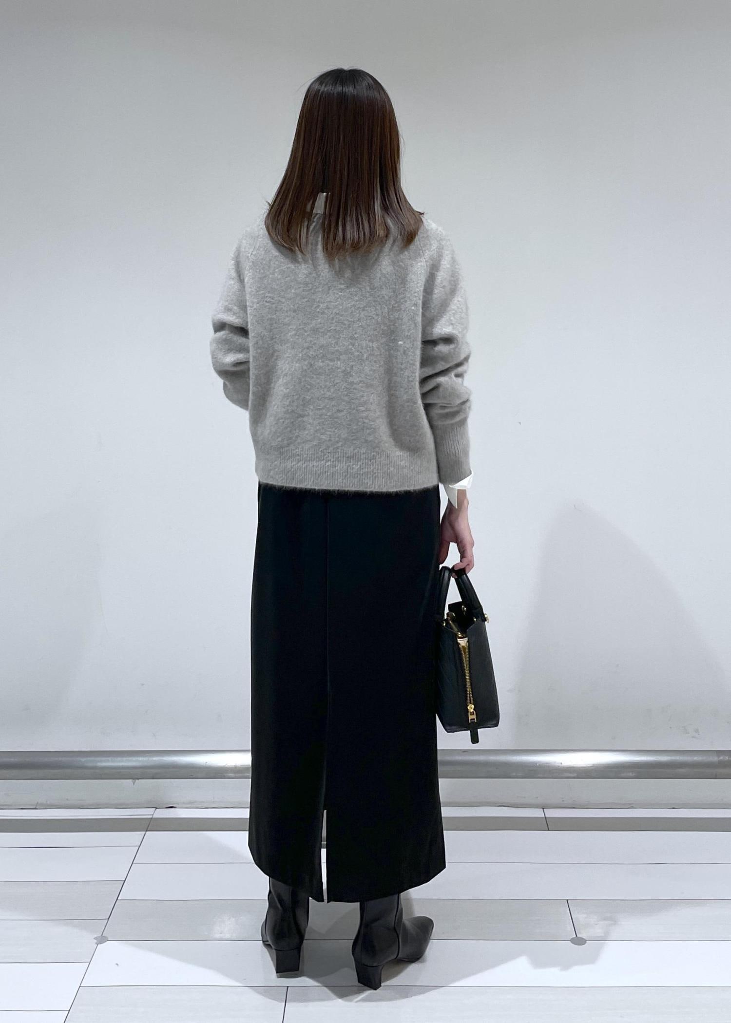 着丈はヒップにかかるくらいで、ボトムを選ばずワンピースにも合わせやすいです。