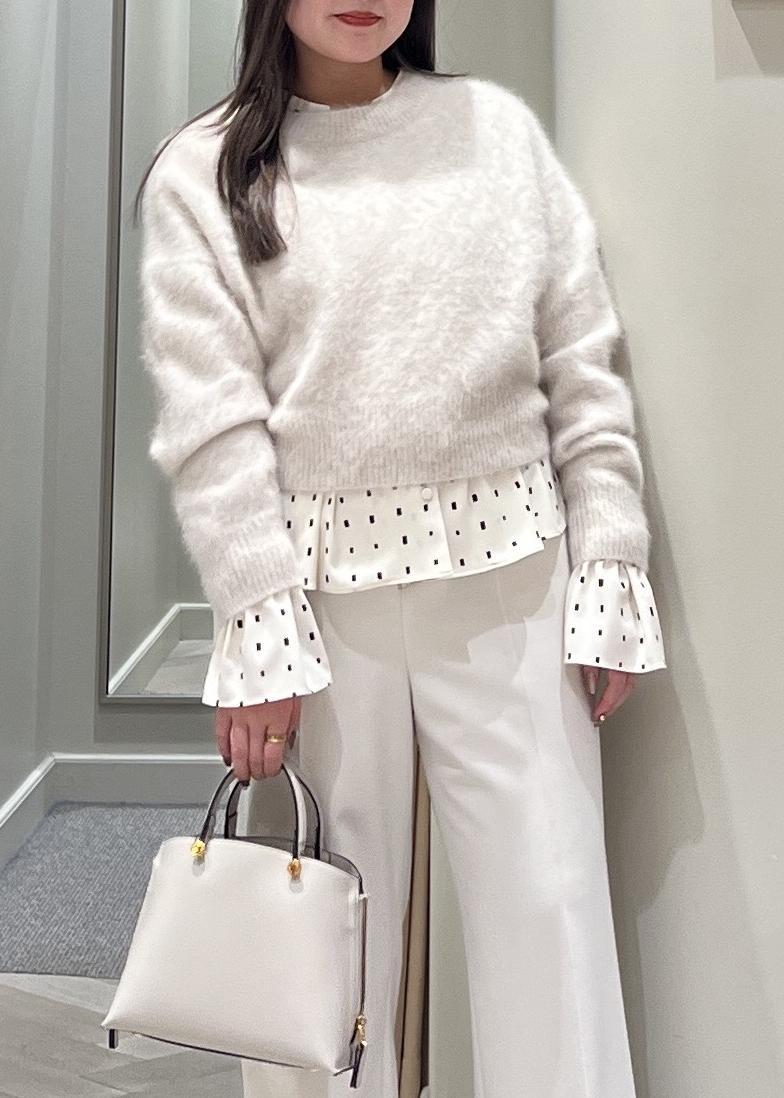 ROPÉフォックスカシミヤニットプルオーバー/イージーケア・アンサンブル対応ホワイト系 / F¥30,800レビュー着丈は短めでウエスト隠れる程度です。